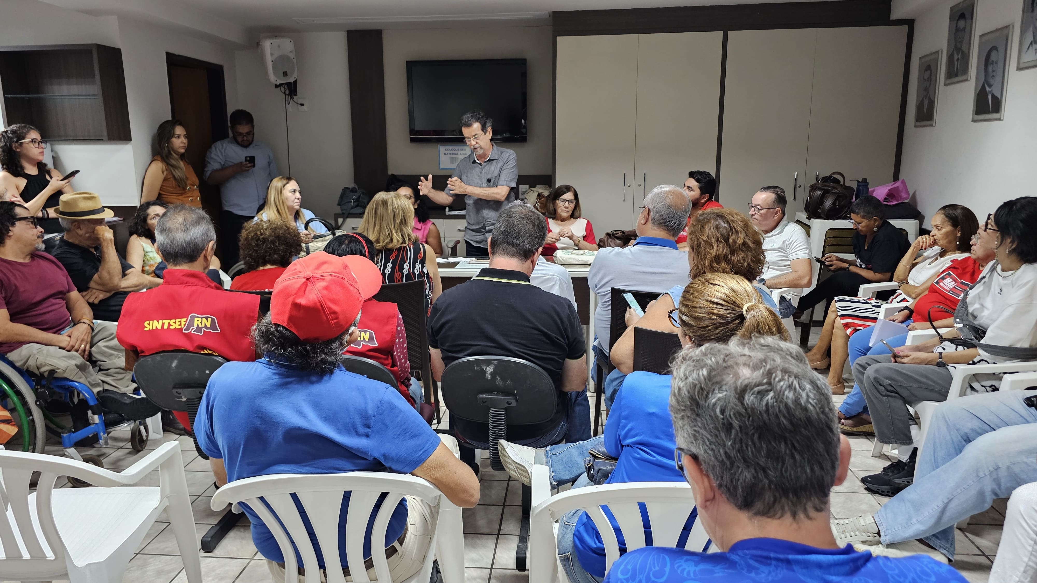 No final da tarde desta segunda-feira (6), o ADURN-Sindicato, representado pelo diretor Dárlio Inácio e pela diretora Ruthineia Diógenes, se somou a centrais sindicais, sindicatos e associações de servidores públicos na sede do Sindicato dos Trabalhadores em Educação Pública do Rio Grande do Norte (SINTE-RN) para discutir estratégias de mobilização contra a Reforma Administrativa. A reunião foi convocada pelo deputado federal Fernando Mineiro e pela deputada estadual Divaneide Basílio, ambos do PT/RN.