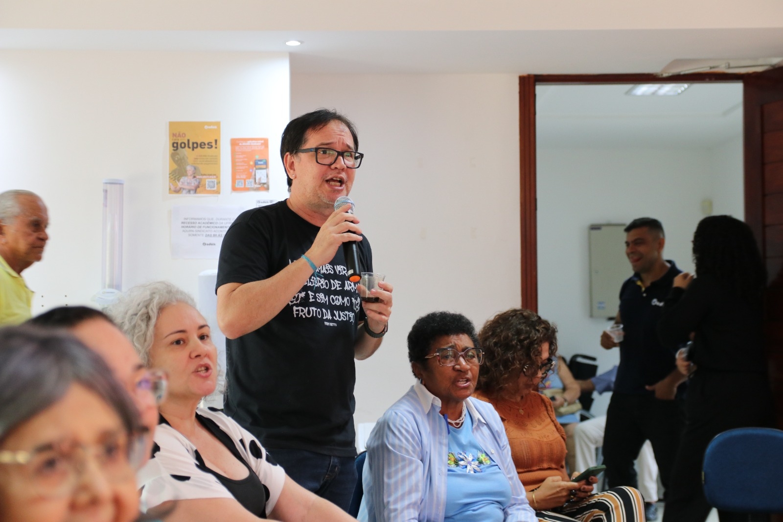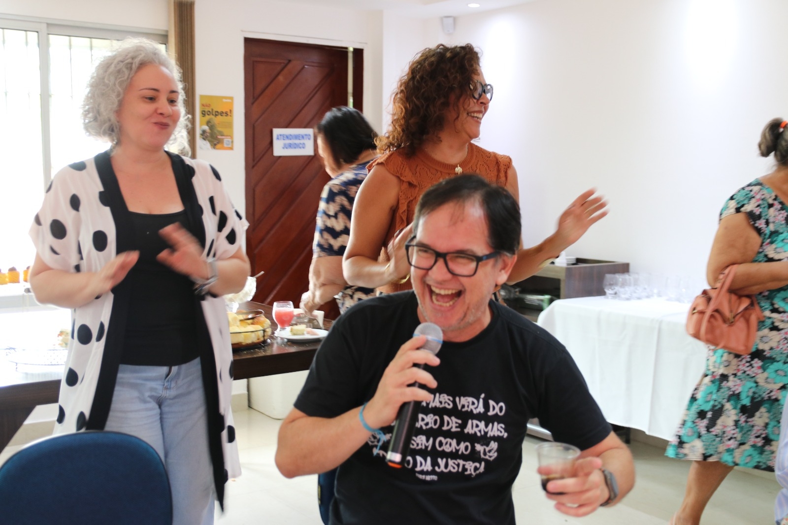 Na manhã desta quarta-feira, 28 de janeiro, o ADURN-Sindicato proporcionou aos docentes aposentados um café da manhã em alusão ao Dia do Aposentado e da Aposentada. A atividade celebrativa aconteceu na sede da entidade e contou com um buffet especial, recital de poesias e momento de karaokê entre os presentes. A celebração ocorreu com o intuito de fortalecer a participação dos professores aposentados no sindicato e, sobretudo, a valorização dessa categoria no espeço de movimento sindical.