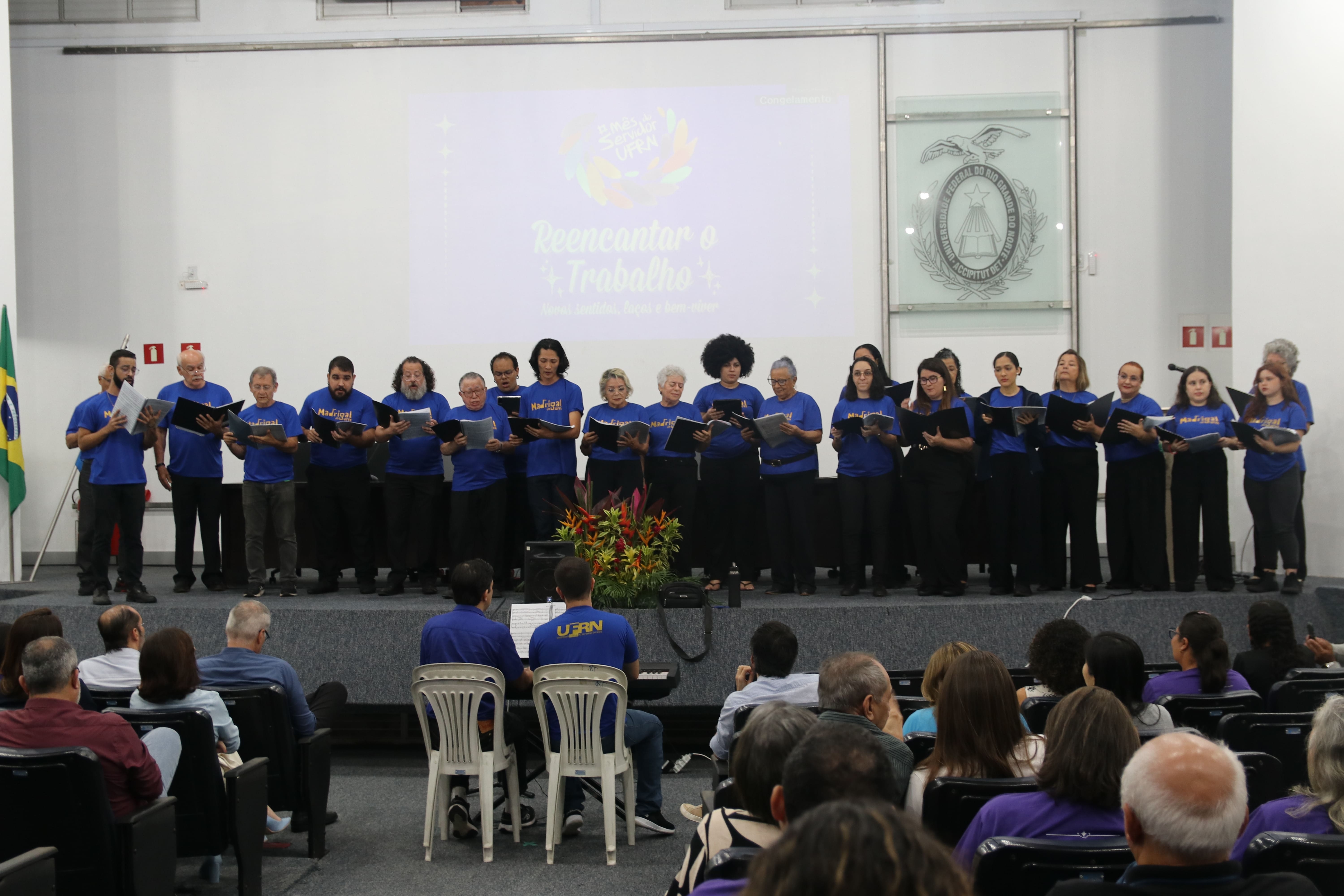 Na manhã desta quarta-feira, 1º de outubro, a Universidade Federal do Rio Grande do Norte (UFRN) deu início às atividades do Mês do Servidor 2025, no auditório Otto de Brito Guerra, na Reitoria. Com o tema “Reencantar o trabalho: novos sentidos, laços e bem-viver”, a programação reuniu apresentações culturais, palestra e momentos de integração voltados à valorização da comunidade universitária.