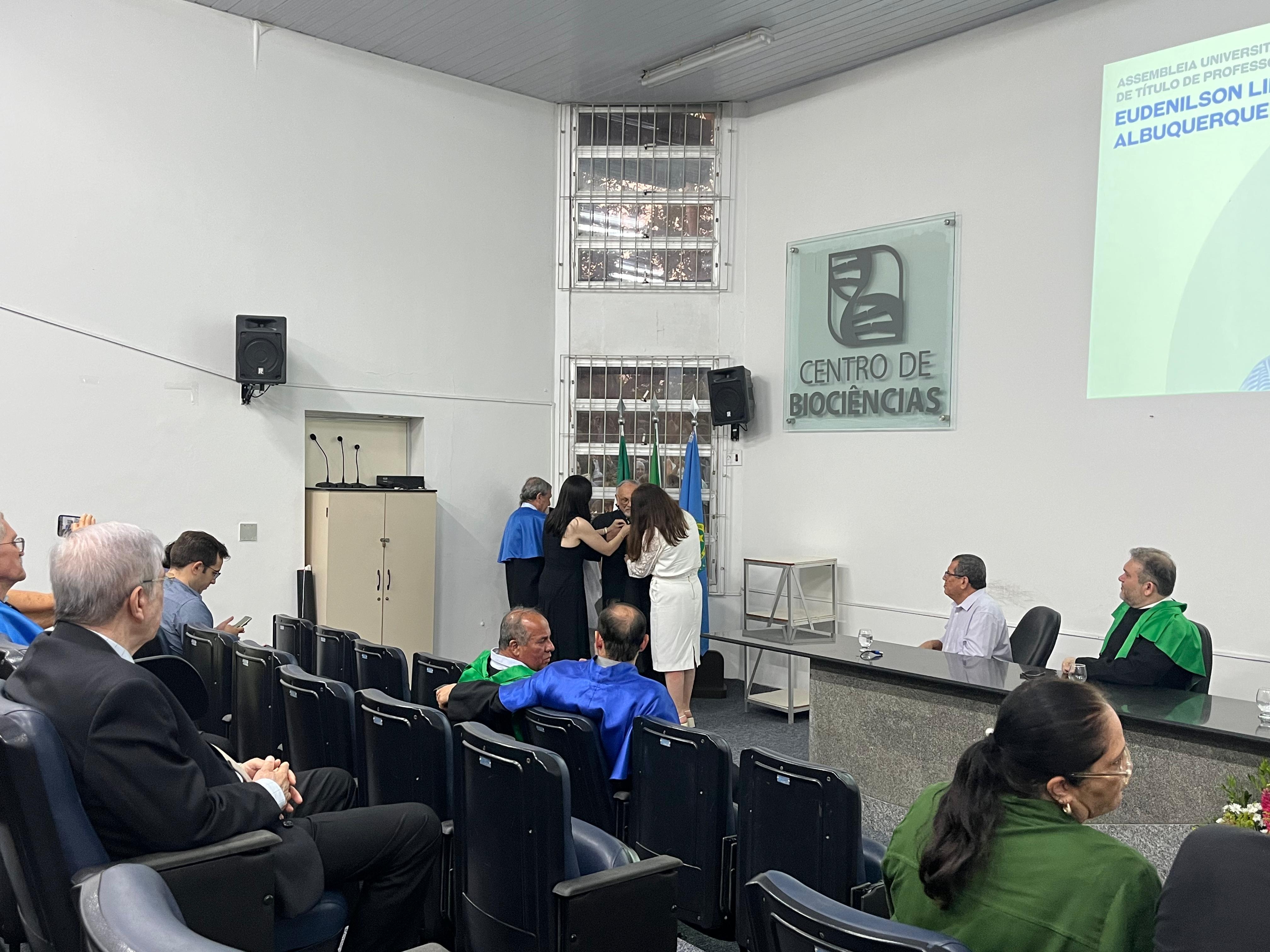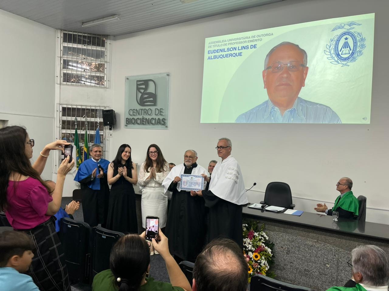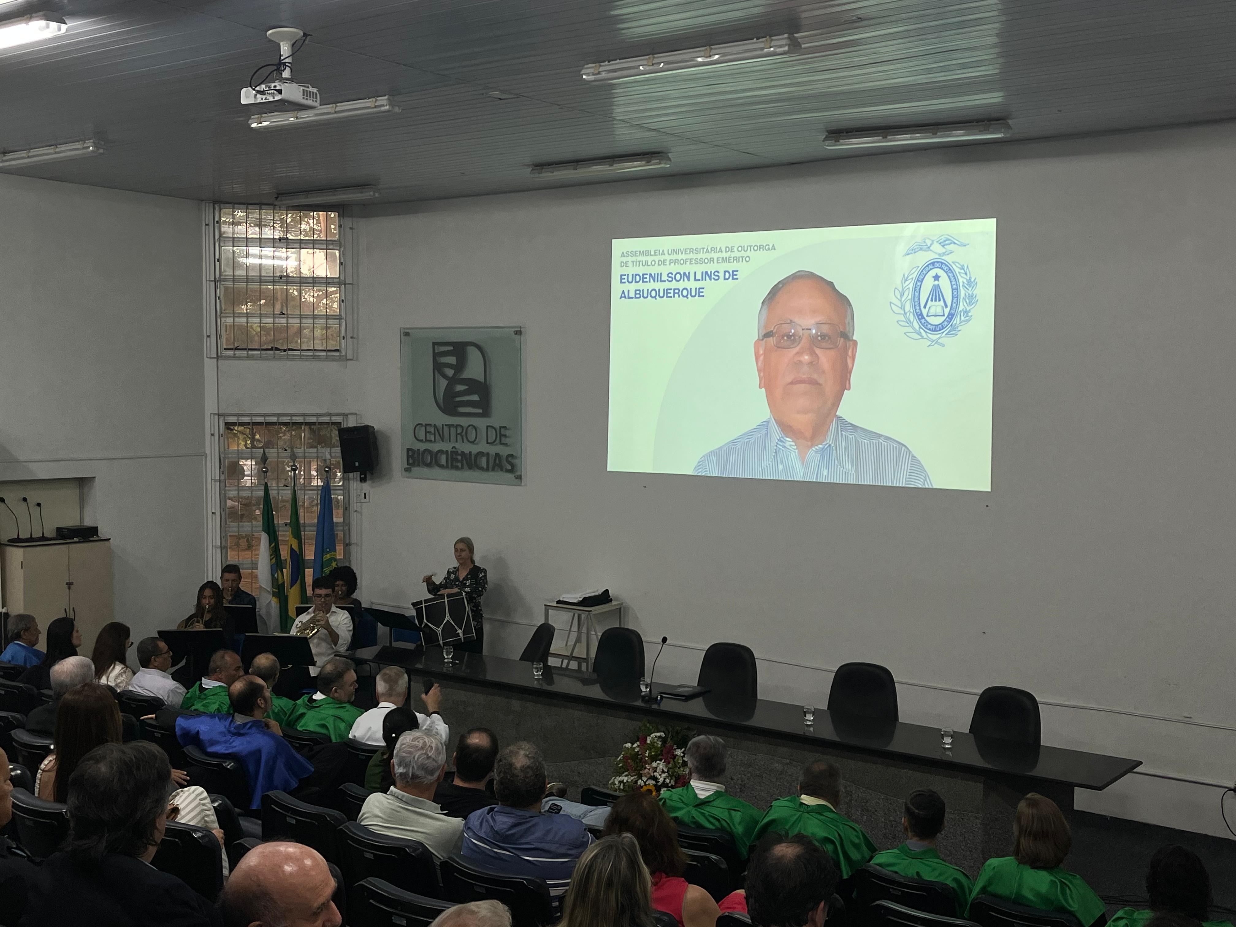 Na tarde desta quinta-feira (2), o ADURN-Sindicato, representado pelo diretor Dimitri Taurino, esteve presente na cerimônia de entrega de Outorga de Título de Professor Emérito ao docente Eudenilson Lins de Albuquerque. A solenidade aconteceu no Anfiteatro das Aves, Centro de Biociências da Universidade Federal do Rio Grande do Norte (UFRN). A ocasião foi realizada em homenagem aos trabalhos que o professor Eudenilson prestou à instituição enquanto lecionava, bem como à sociedade potiguar.