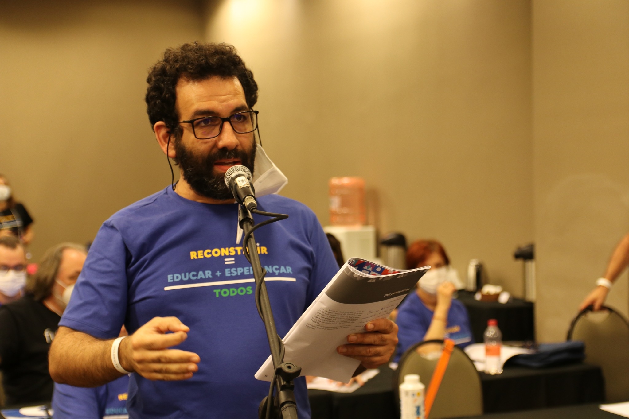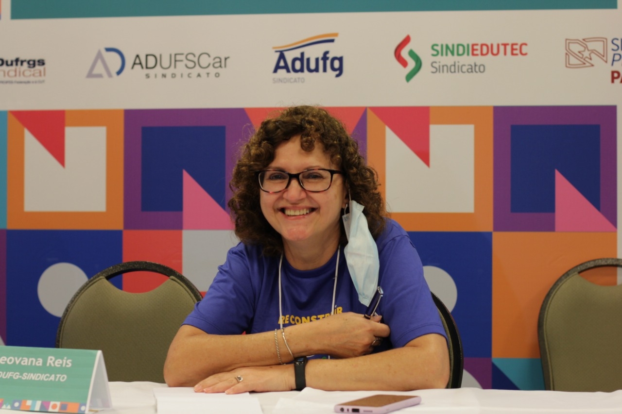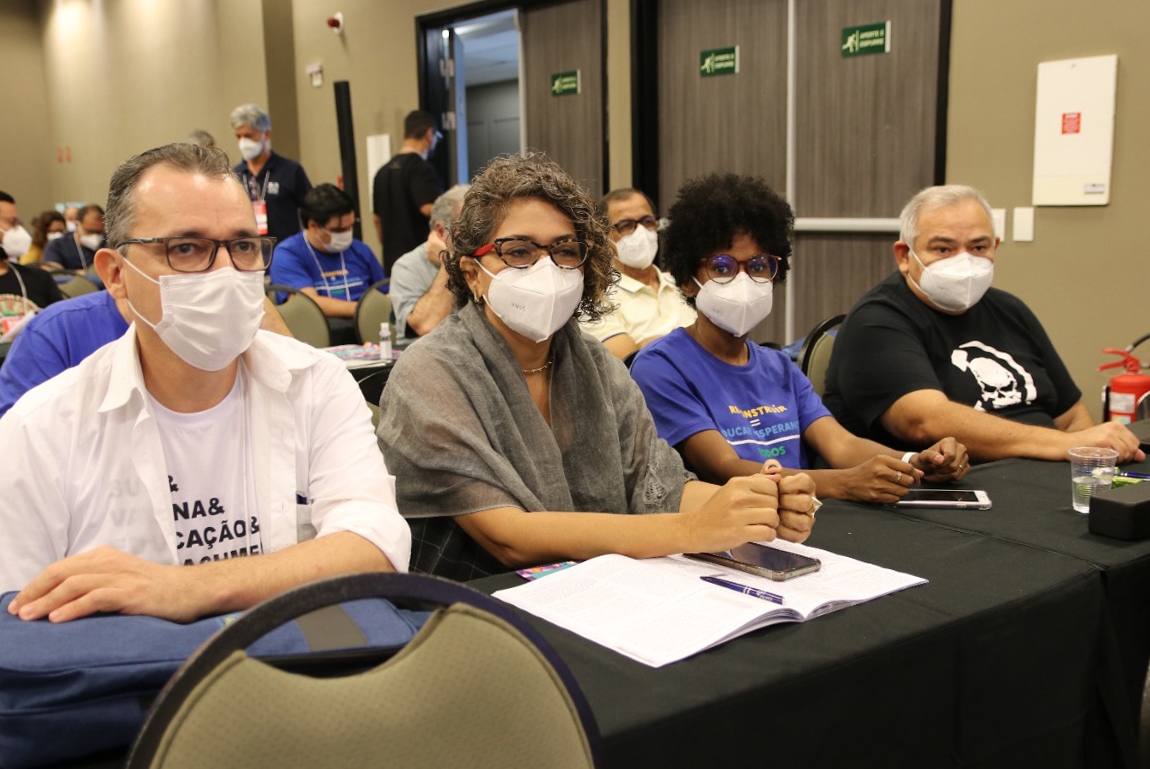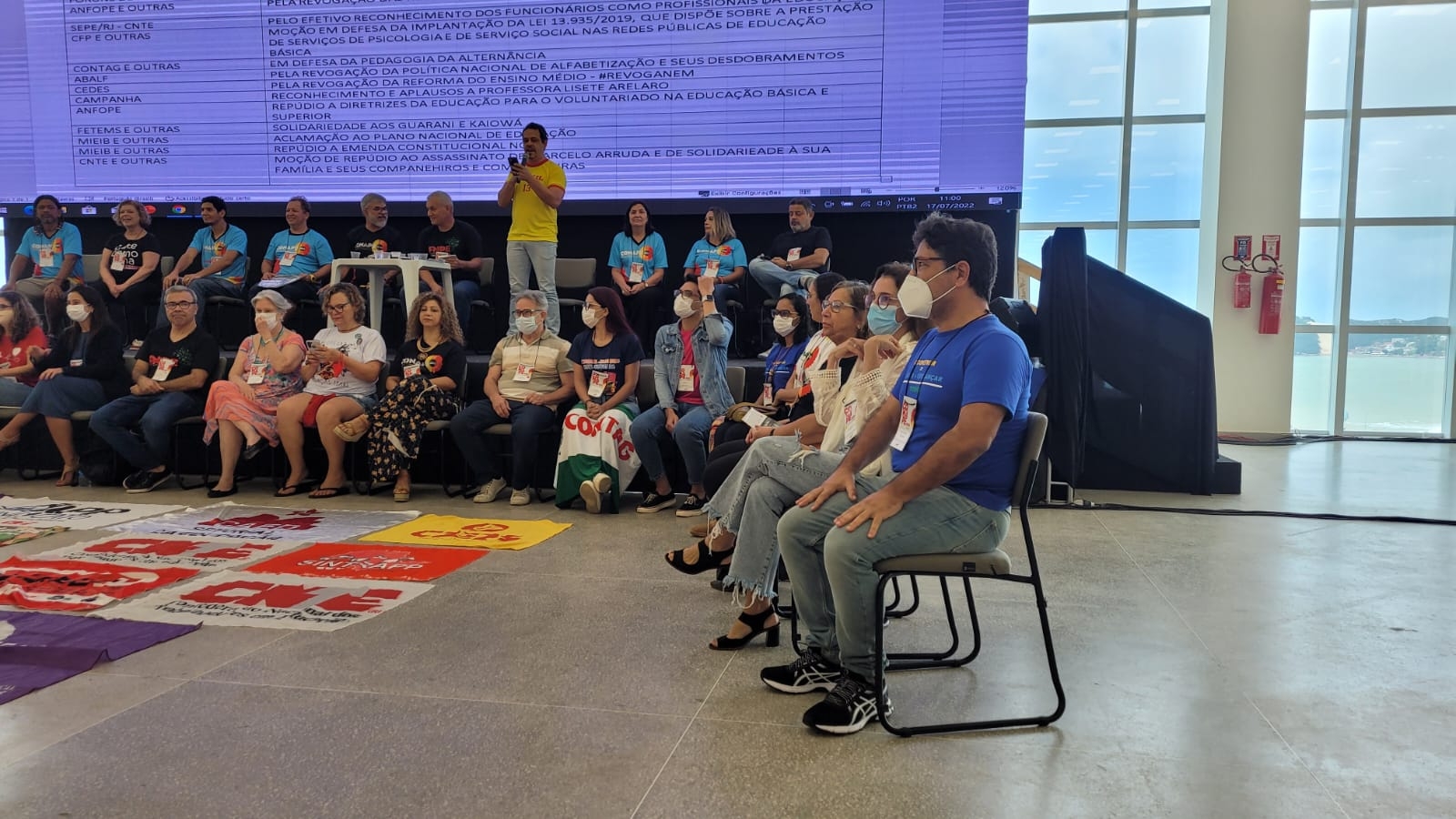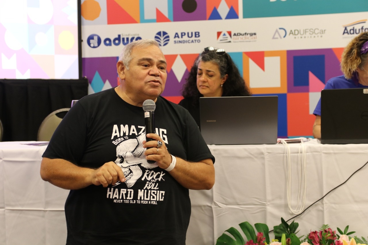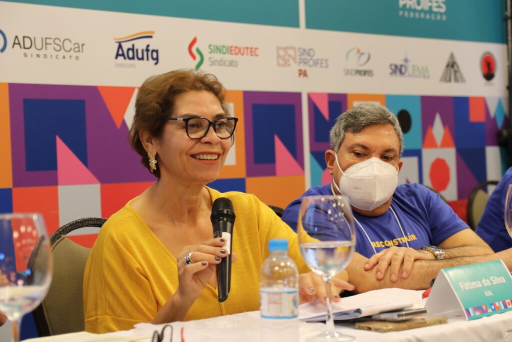 Após a mesa de discussões que abriu os trabalhos do dia reunindo especialistas em educação para traçar um panorama do ensino na América Latina, os professores participaram do Eixo I de debates intitulado “A crise na sociedade brasileira, seu aprofundamento em 2022 e os reflexos das IFES”.