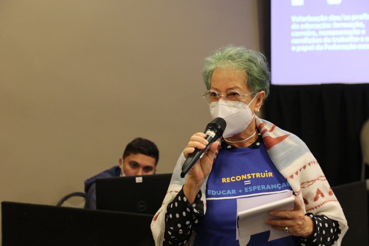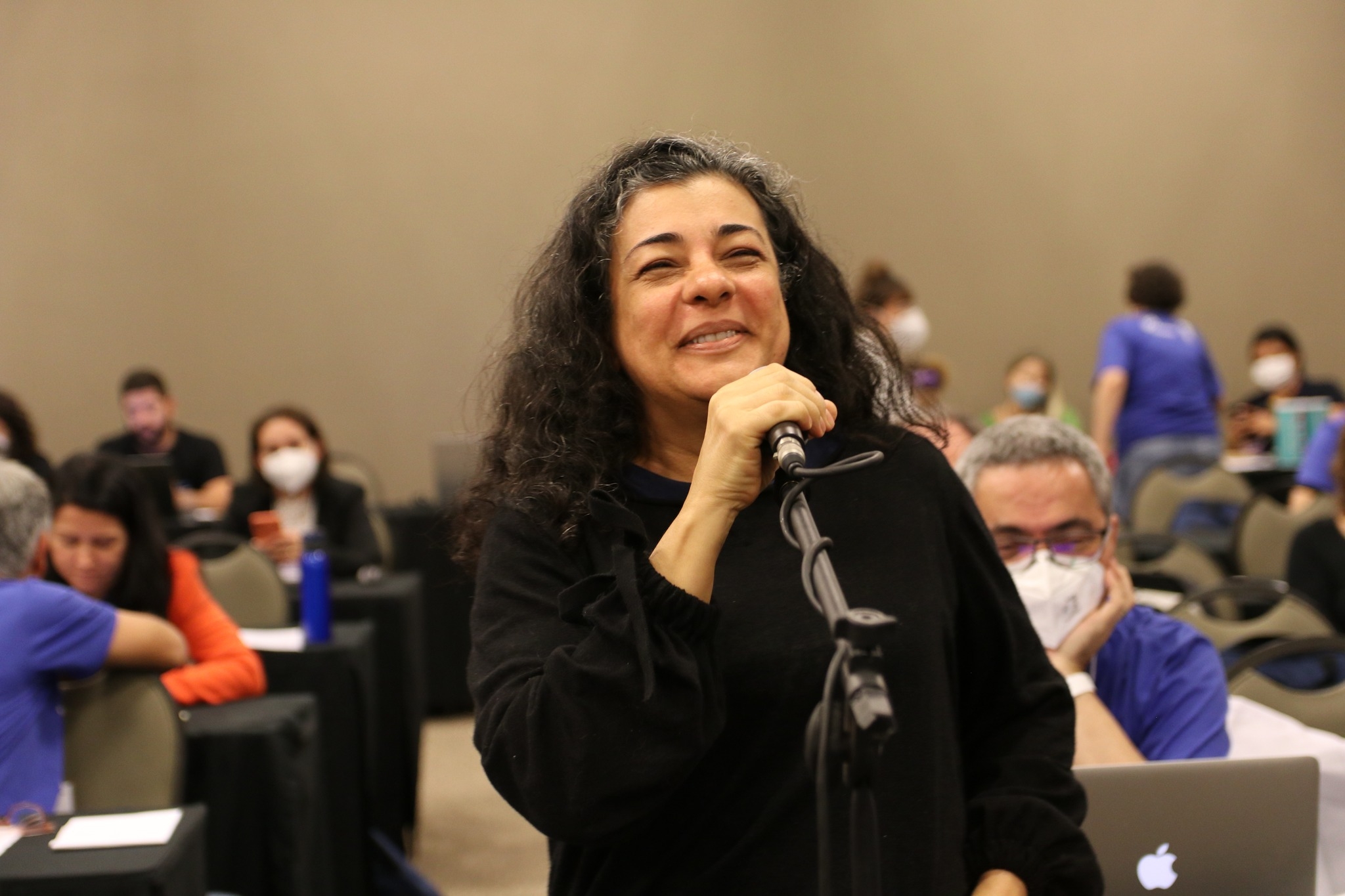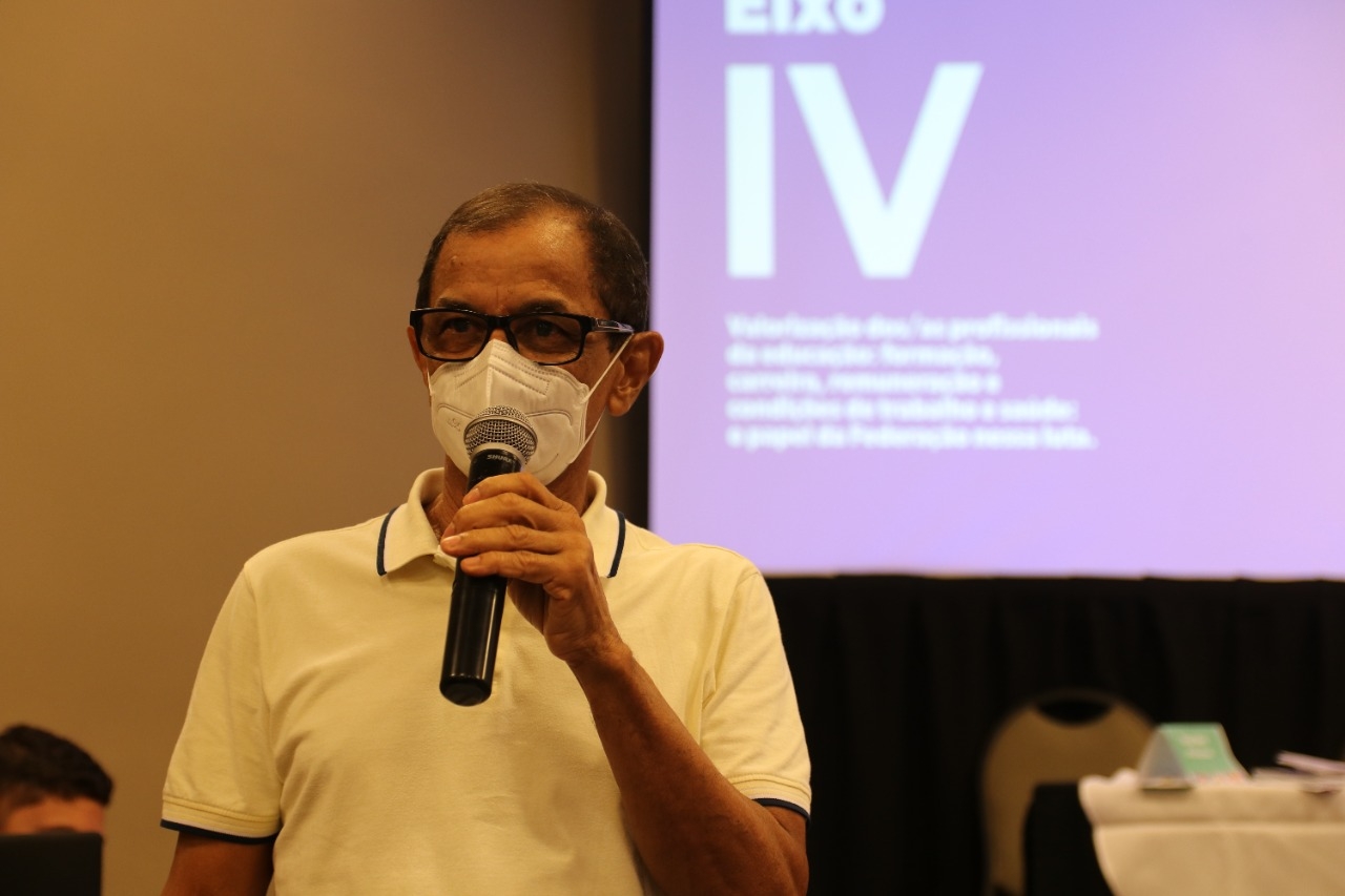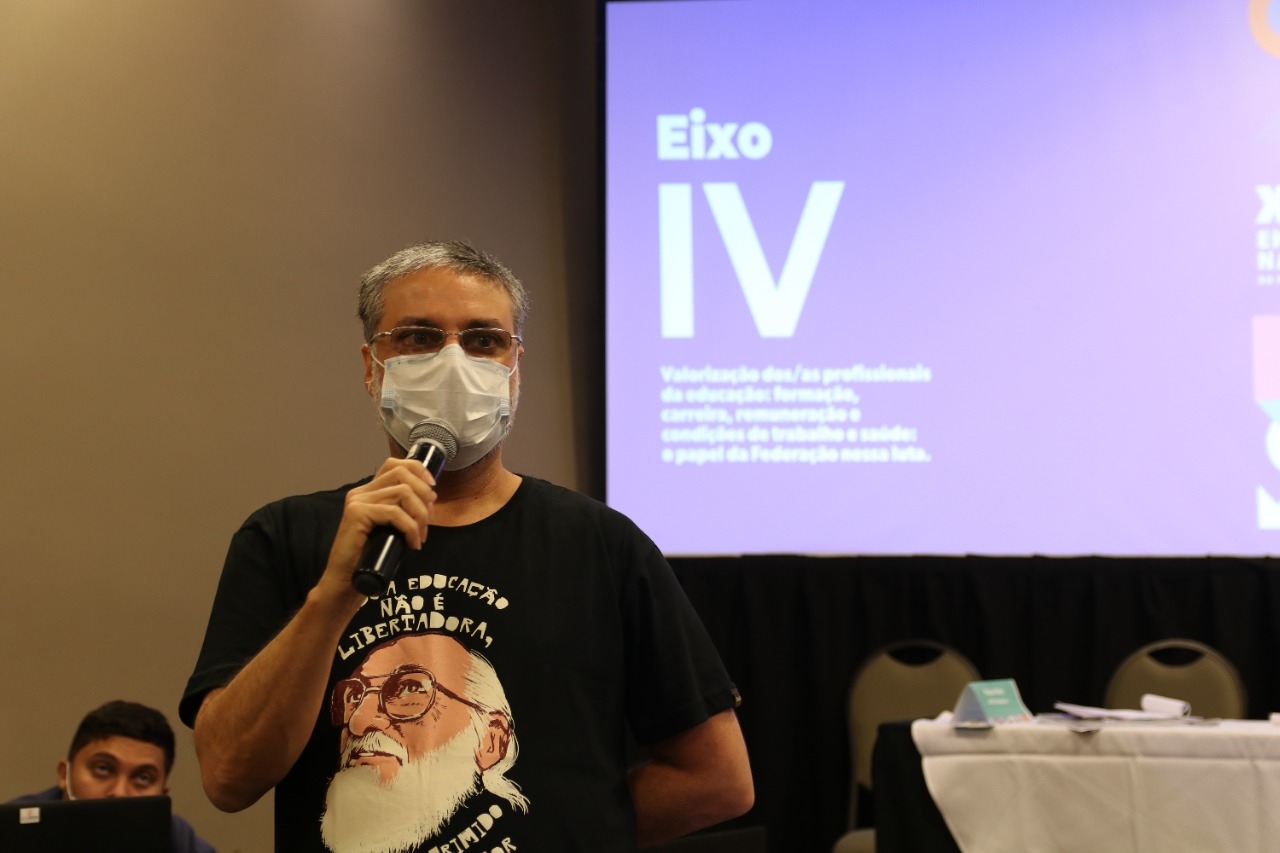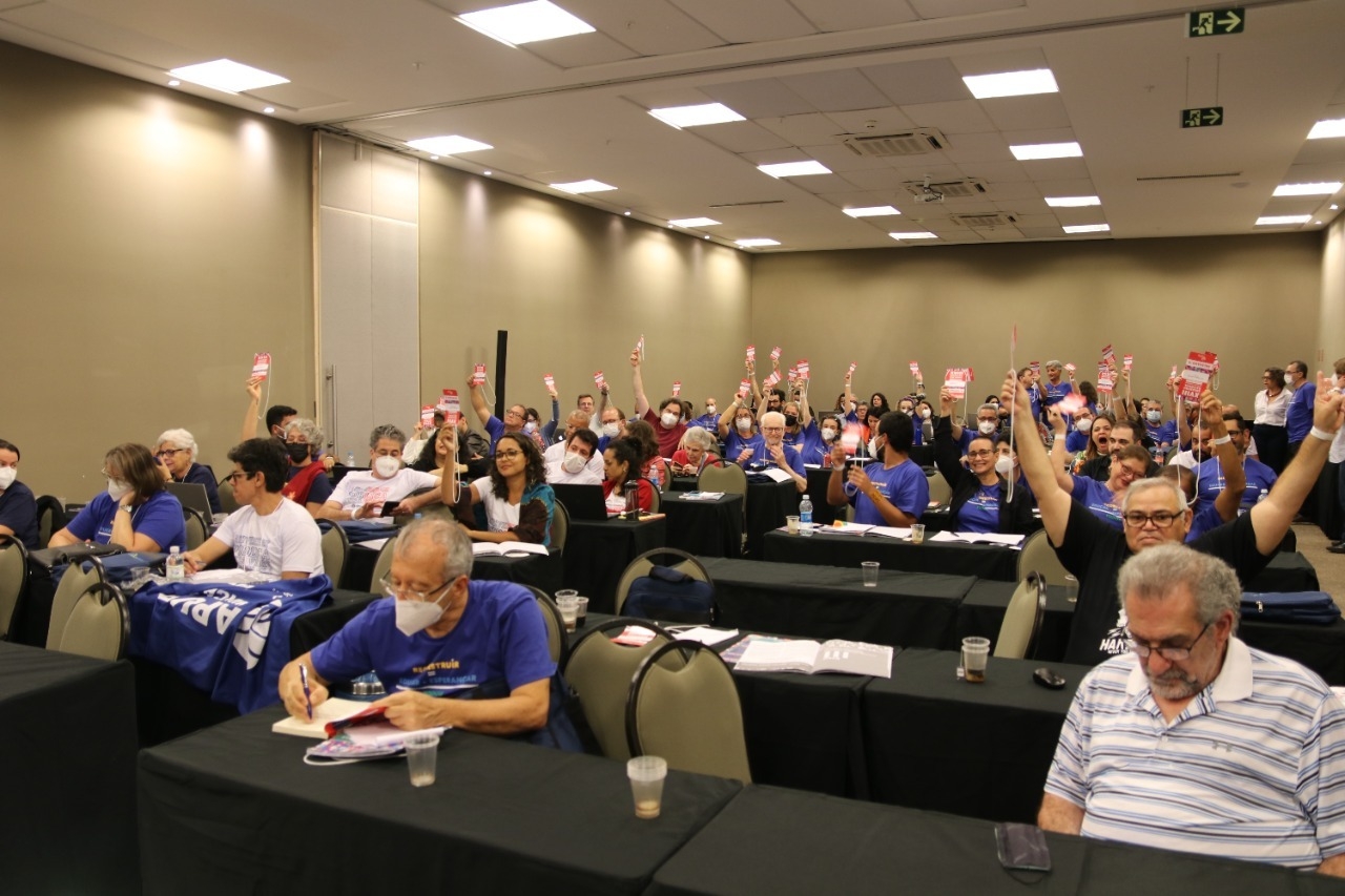 Após a mesa de discussões que abriu os trabalhos do dia reunindo especialistas em educação para traçar um panorama do ensino na América Latina, os professores participaram do Eixo I de debates intitulado “A crise na sociedade brasileira, seu aprofundamento em 2022 e os reflexos das IFES”.