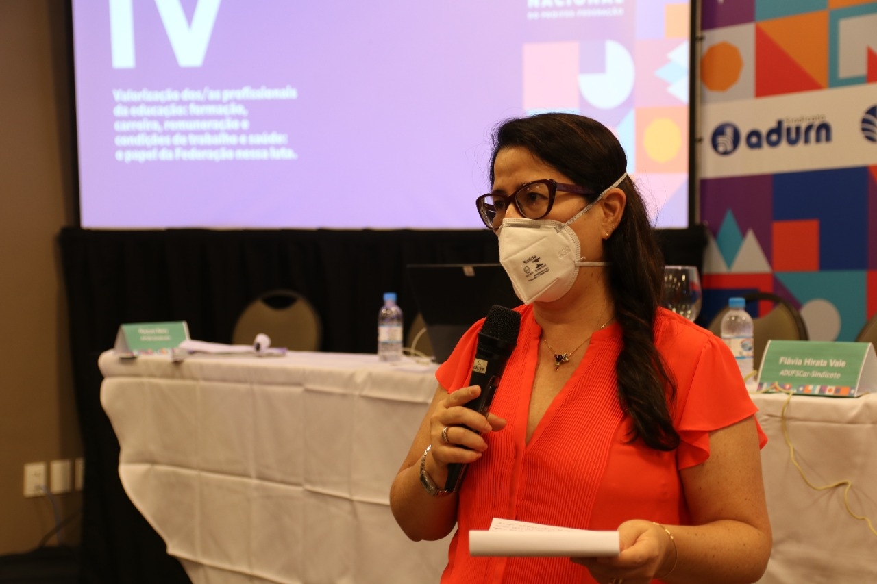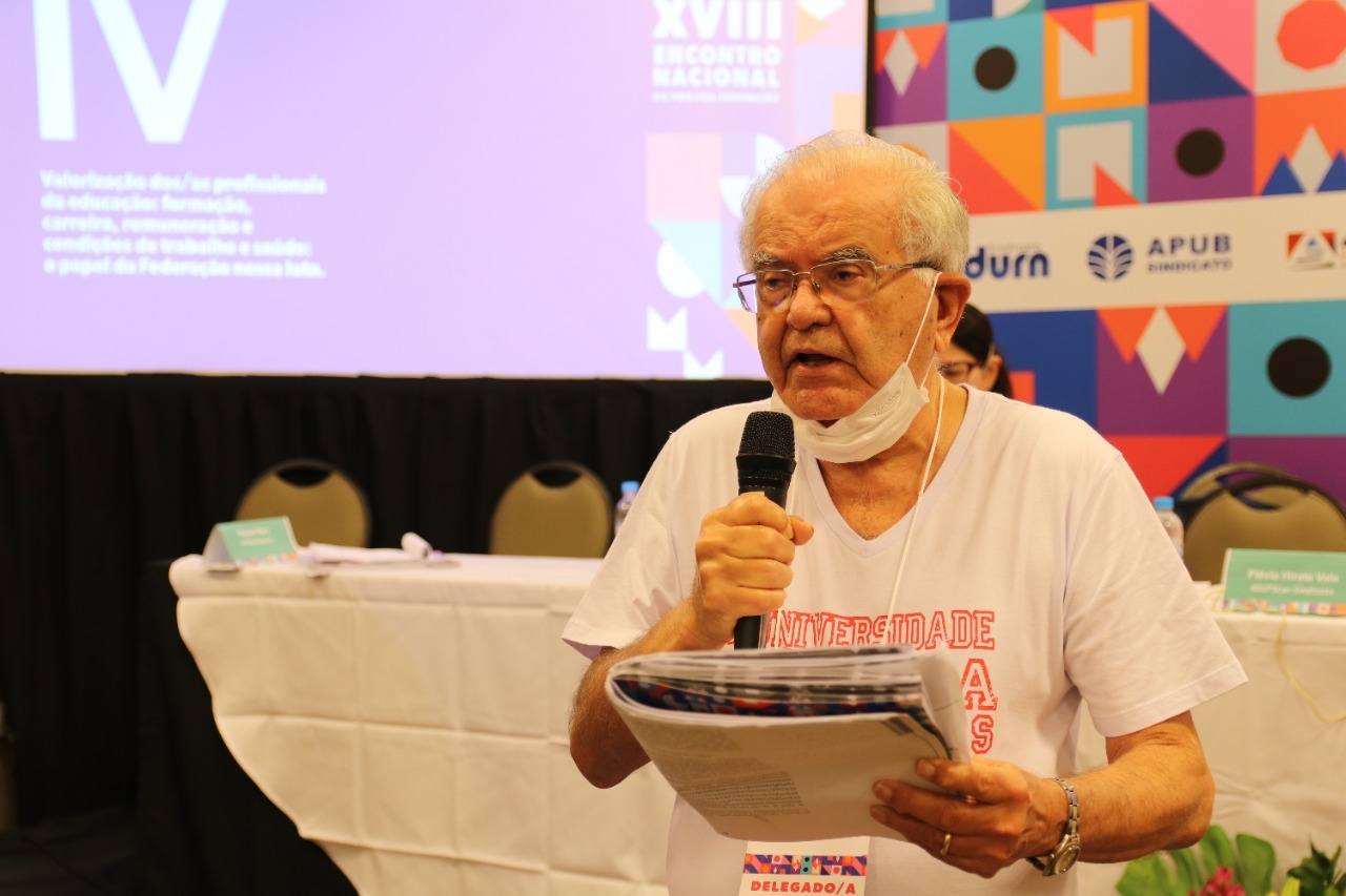 Eixo IV reforça a luta pela recomposição das perdas salariais e a valorização dos profissionais de Educação. Agenda dos aposentados foi colocada lado a lado das discussões sobre carreira dos docentes da ativa. O terceiro e último dia de atividades do nosso Encontro aberto com as discussões sobre “Valorização dos/as profissionais da educação: formação, carreira, remuneração e condições de trabalho e saúde. O papel da Federação nessa luta”. A mesa foi coordenada pelos professores Flávia Vale (ADUFSCar-Sindicato) e Flávio Alves (ADUFG-Sindicato).