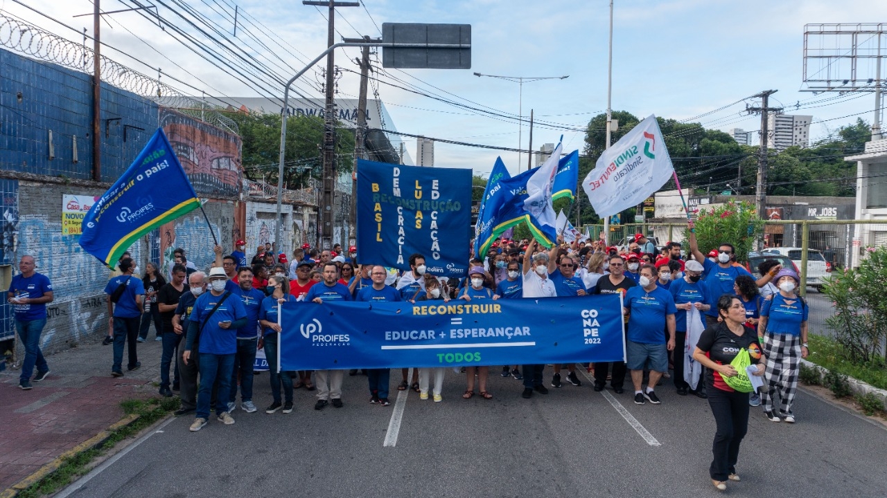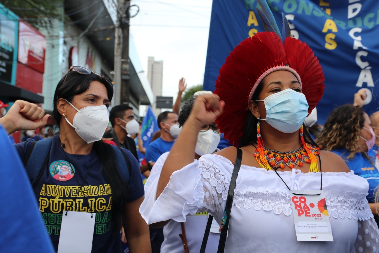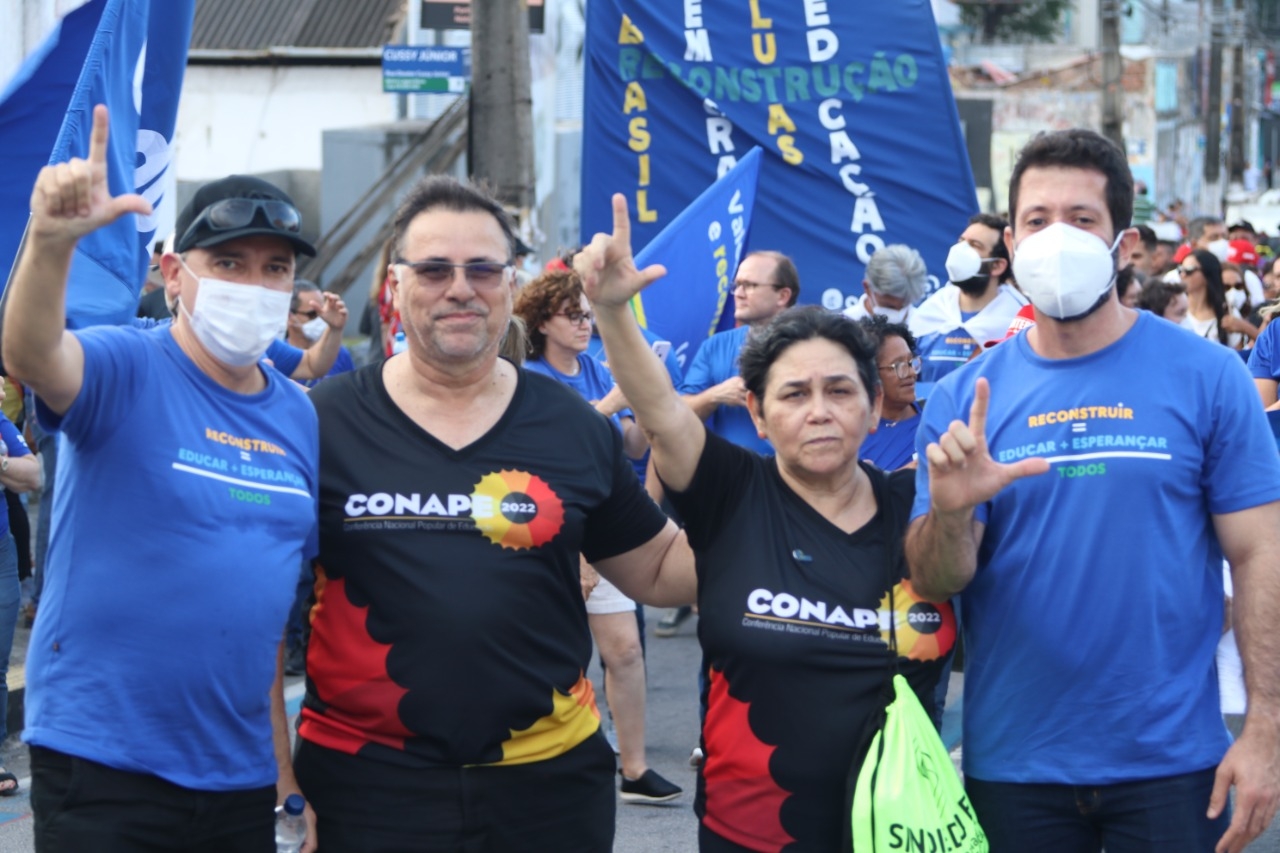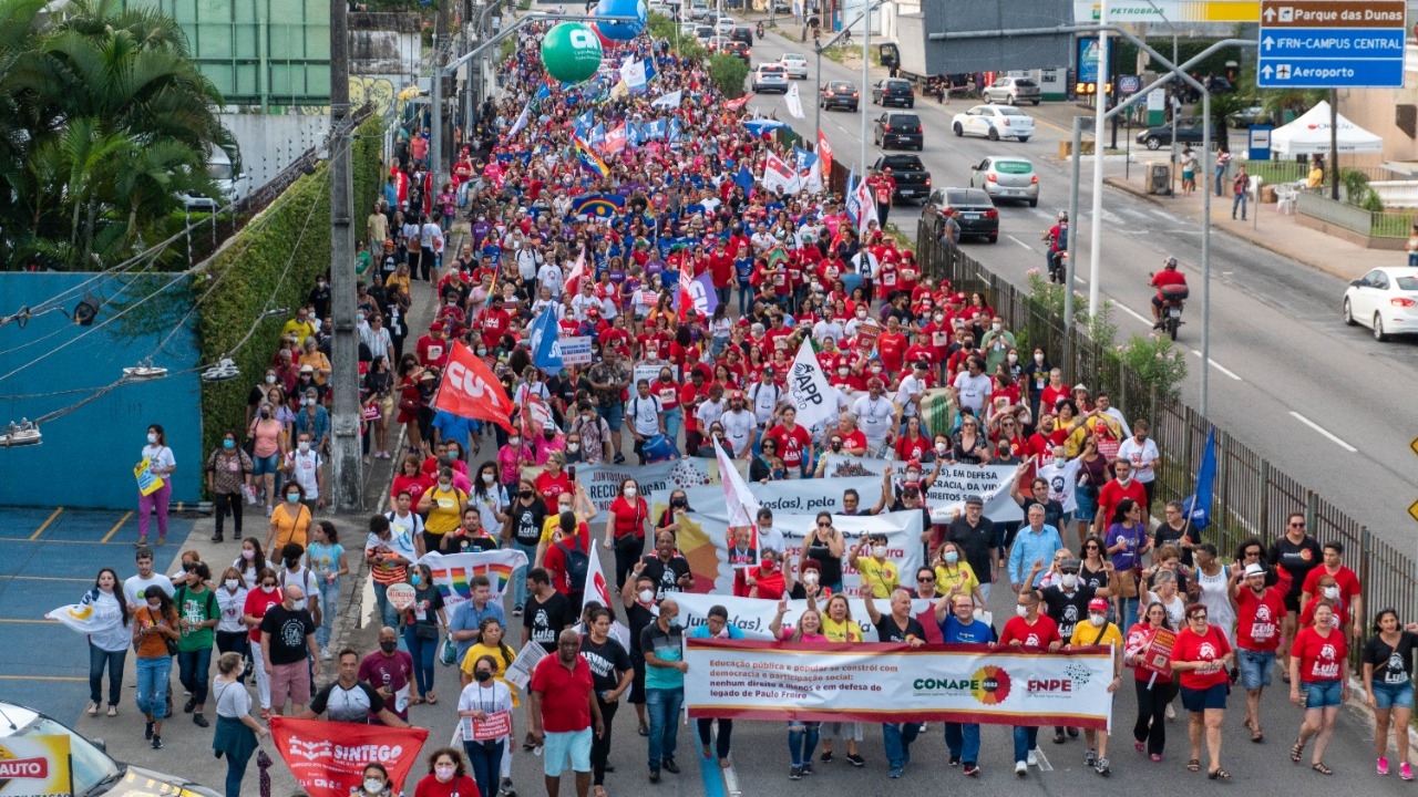 “Tira a arma da mão e investe mais na Educação”, foi entoando essa e outras frases de luta que mais de 5 mil trabalhadores e trabalhadoras da Educação de todo o país ocuparam as ruas de Natal/RN na tarde desta sexta-feira (15), no ato político-cultural de abertura da segunda edição da Conferência Nacional Popular de Educação (CONAPE 2022).