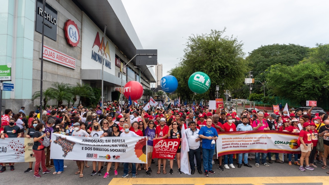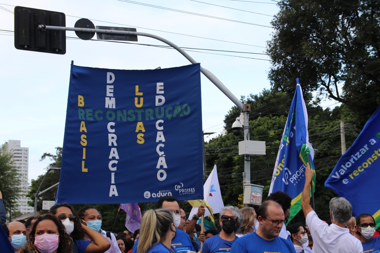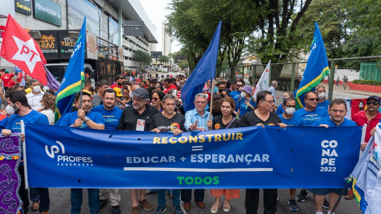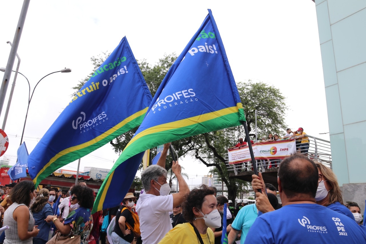 “Tira a arma da mão e investe mais na Educação”, foi entoando essa e outras frases de luta que mais de 5 mil trabalhadores e trabalhadoras da Educação de todo o país ocuparam as ruas de Natal/RN na tarde desta sexta-feira (15), no ato político-cultural de abertura da segunda edição da Conferência Nacional Popular de Educação (CONAPE 2022).