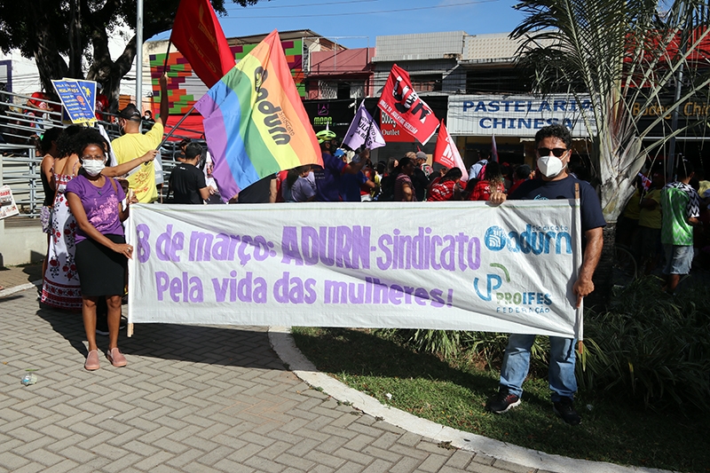 A maré feminista tomou conta das ruas de Natal nesta terça-feira (08). Milhares de mulheres e homens participaram do ato que marcou o Dia Internacional da Mulher na capital potiguar. Estiveram presentes organizações feministas, partidos, parlamentares, movimentos sociais sem-teto e sem-terra e sindicatos, entre eles o ADURN-Sindicato.