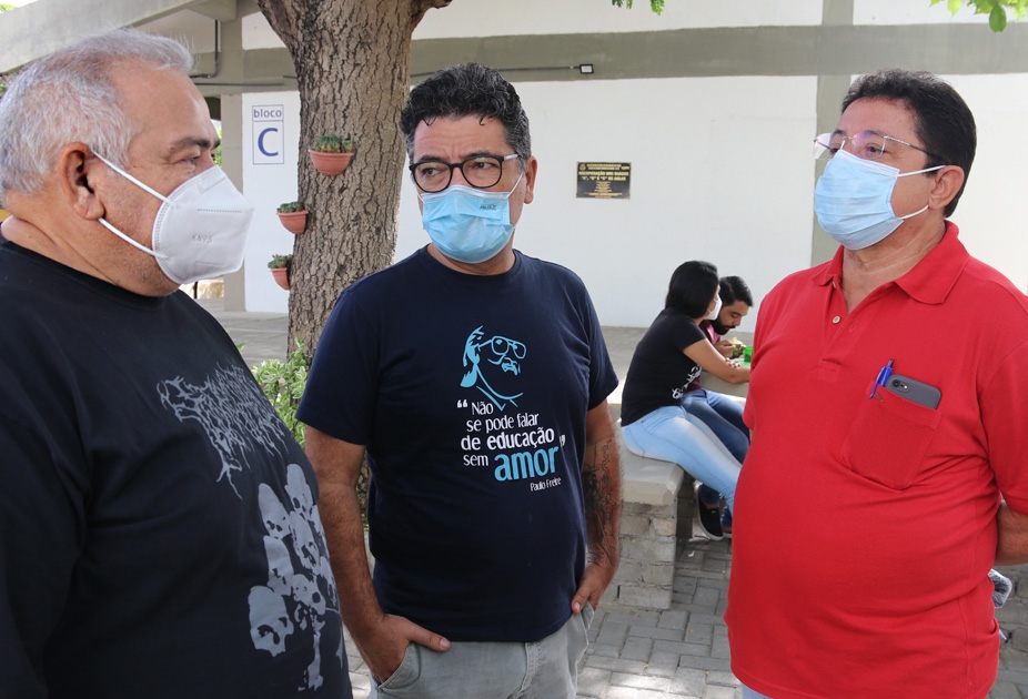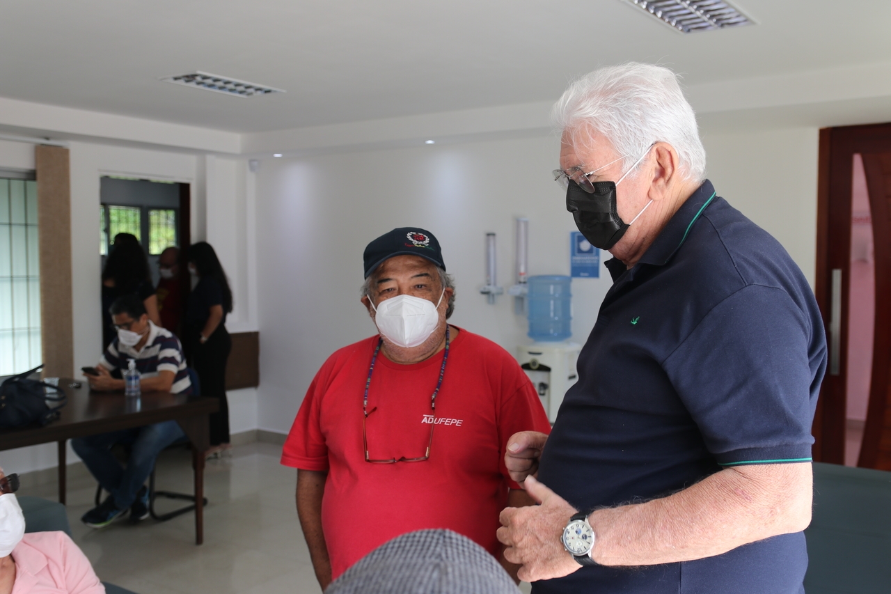 Dando continuidade ao ciclo de encontros: “Experiências Compartilhadas”, na última sexta-feira (8) a diretoria do ADURN-Sindicato recebeu a visita de dirigentes da Associação dos Docentes da Universidade Federal de Pernambuco (ADUFEPE). Na ocasião, os diretores da entidade pernambucana conheceram a sede do sindicato potiguar e conversaram a respeito do plano e projetos de comunicação das duas entidades. Para o presidente do ADURN-Sindicato, Oswaldo Negrão, os encontros com a diretoria da ADUFEPE, que acontecem desde o mês de janeiro, têm sido importantes na construção de estratégias de luta em defesa da categoria docente. Esta foi a primeira vez que a atividade aconteceu de forma presencial.