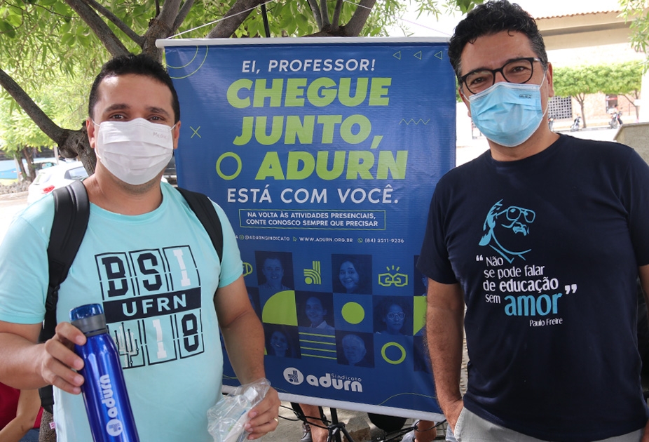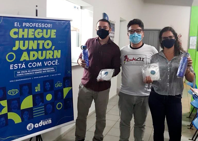 Nos dias 5 e 6 de abril de 2022, a diretoria do ADURN-Sindicato visitou os docentes dos Campi de Currais Novos e Caicó. Na oportunidade, além de conversar com os professores e professoras, foram entregues o brinde 2022 do sindicato e o kit retorno seguro, contendo máscaras KN95 e álcool gel.