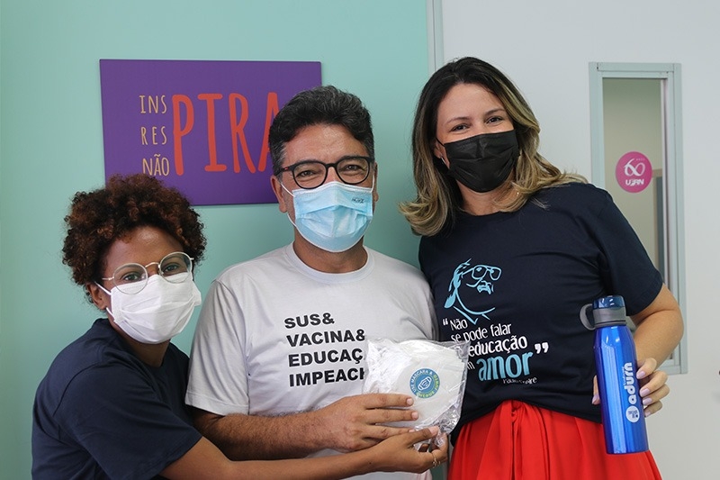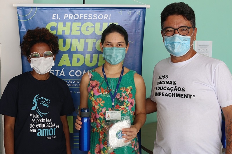 No dia 20 de abril de 2022, a diretoria do ADURN-Sindicato visitou os docentes do Campus da Faculdade de Ciências da Saúde do Trairi, em Santa Cruz. Na ocasião, além de conversar com os professores e professoras, foram entregues o brinde 2022 do sindicato e o kit retorno seguro, contendo máscaras KN95 e álcool gel. O presidente do ADURN-Sindicato, Oswaldo Negrão, e a diretora, Mercês Santos, também se reuniram com a diretora da unidade, Joana Cristina.