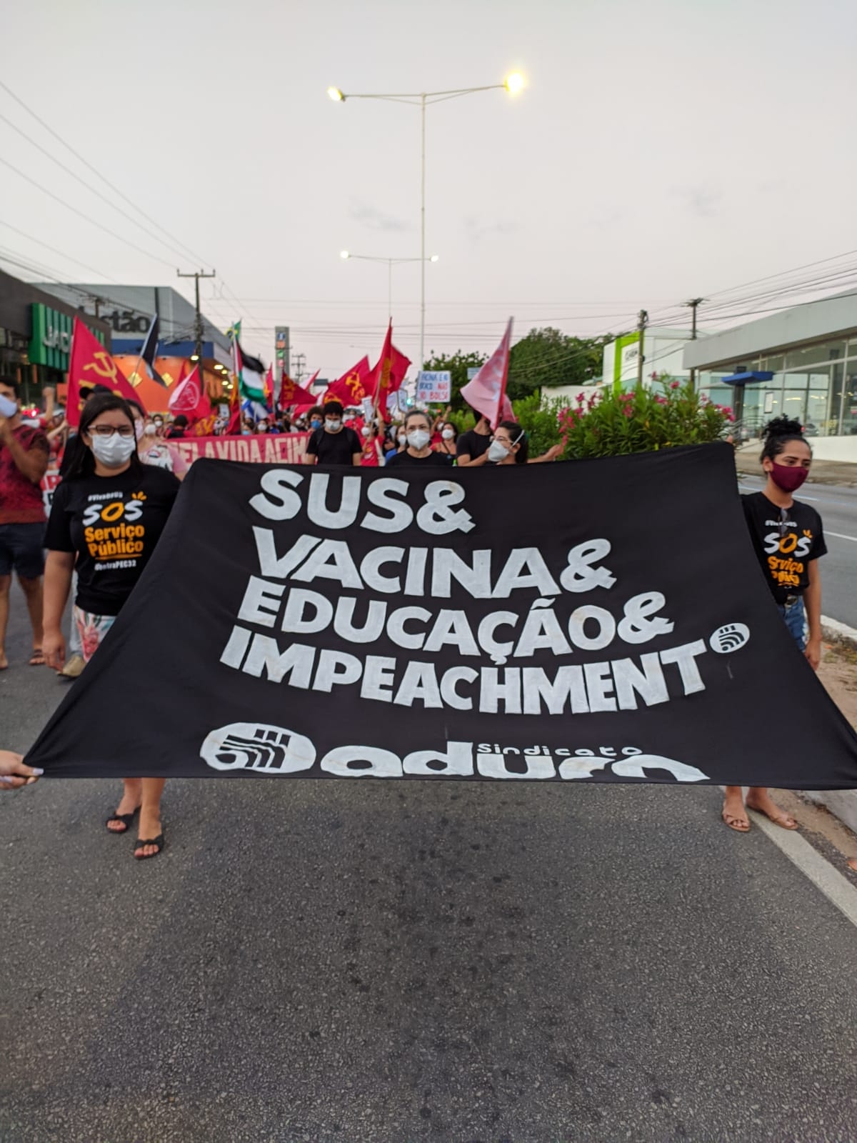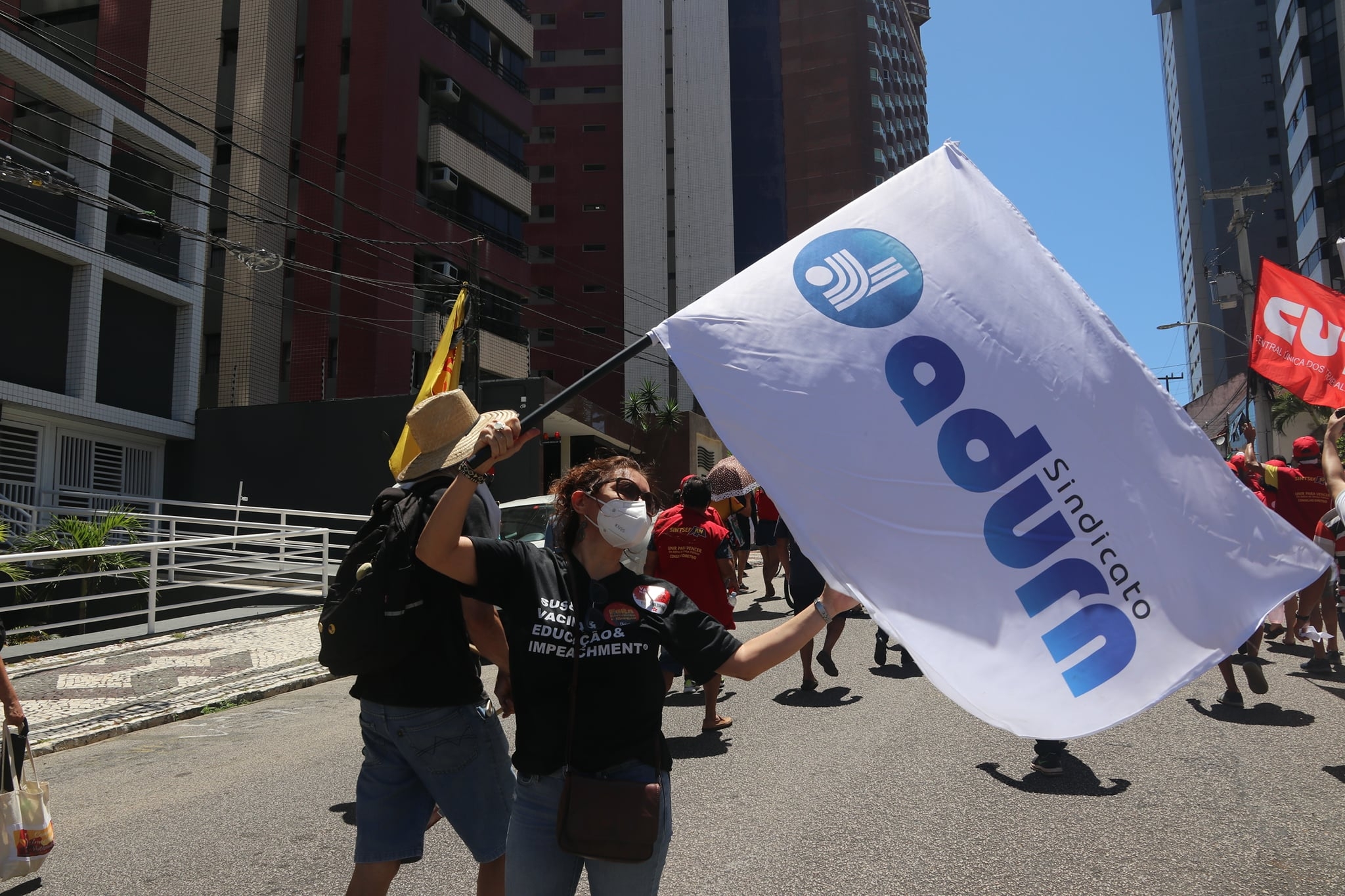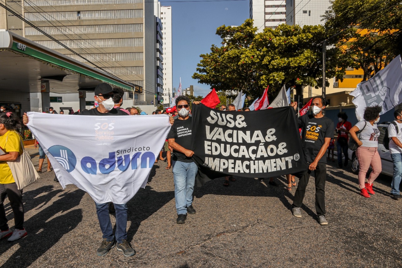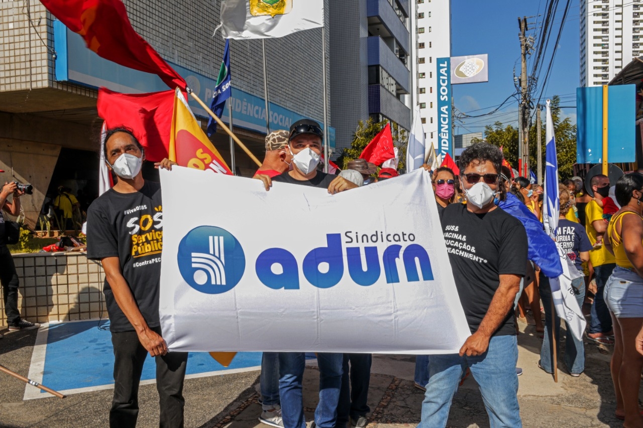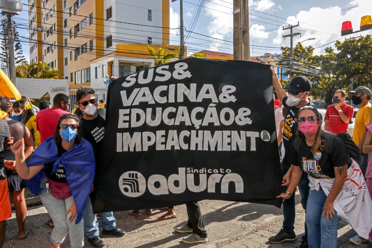 No sábado, 3 de julho, o ADURN-Sindicato se somou às milhares de pessoas que ocuparam a ruas de Natal em defesa do impeachment, da vacinação, de um auxílio emergencial digno e contra a Reforma Administrativa e os cortes na Saúde e Educação. Mais de 300 atos foram registrados pelo Brasil e por diversas cidades do mundo, frente aos escândalos acumulados pelo Presidente da República envolvendo a postergação e o superfaturamento de compra de vacinas.