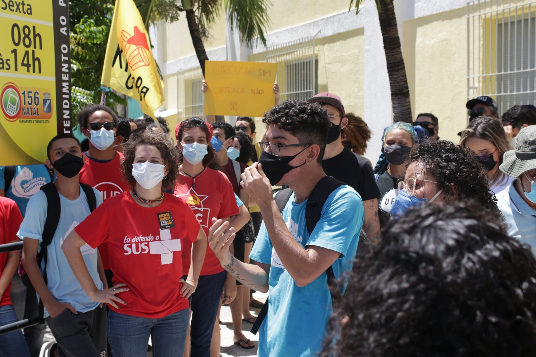 Nesta quinta-feira, 02 de dezembro, o ADURN-Sindicato se somou aos estudantes, técnicos-administrativos, parlamentares municipais e estaduais no ato realizado na Secretaria Municipal de Mobilidade Urbana de Natal (STTU) pela retomada da gratuidade no transporte Circular, que garante o acesso da comunidade acadêmica ao Campus da UFRN. O presidente do ADURN-Sindicato, Oswaldo Negrão, esteve presente na atividade e reforçou a necessidade de manter o circular gratuito já que o mesmo exerce um papel de inclusão, principalmente junto aos estudantes de menor renda. O dirigente cobrou explicações e atitudes coerentes dos responsáveis pela pasta.