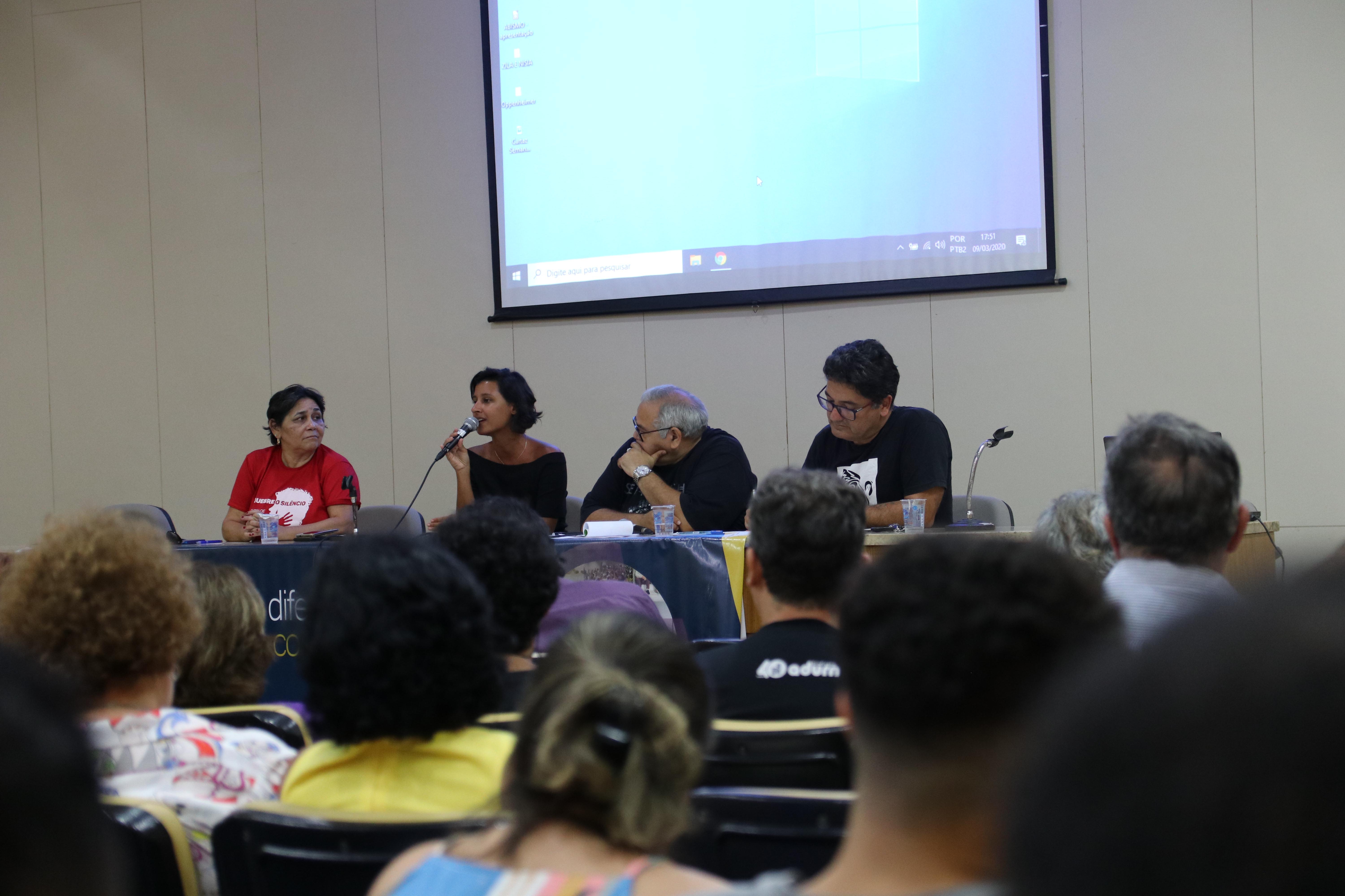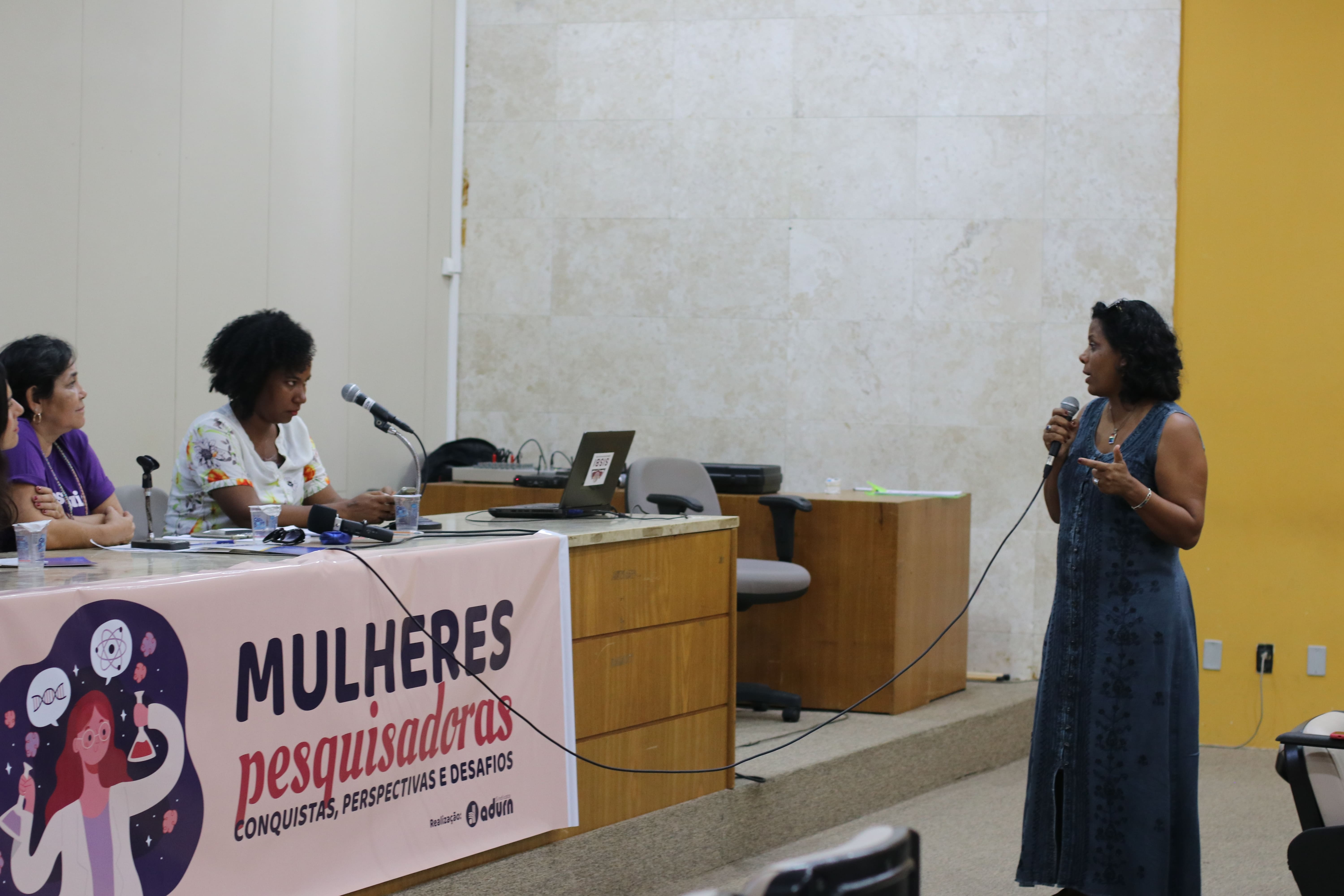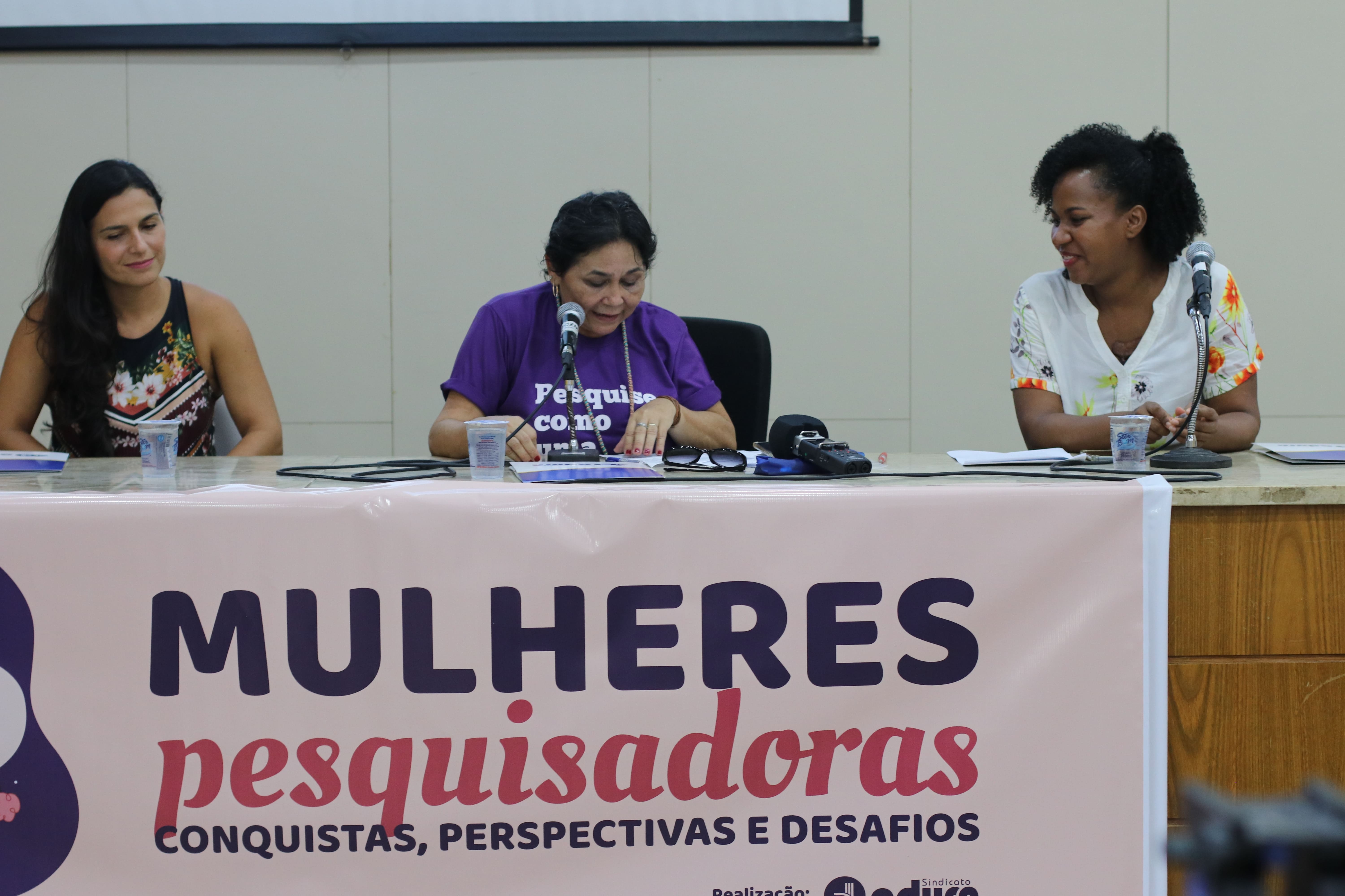 O Adurn-Sindicato realizou sua primeira atividade para o mês da mulher nesse dia 04. Com o tema “Mulheres pesquisadoras: conquistas, perspectivas e desafios”, discutiu o caminho a ser percorrido para garantir a presença feminina nos mais altos postos, entre os pesquisadores com níveis mais altos do CNPQ, nos conselhos superiores das universidades e nas agências de fomento à pesquisa. Na mesa de debates, a professora Gilka Pimentel, mestre em Educação, mediou a discussão da presença feminina na ciência que foi feita pela cientista social e pesquisadora negra do Departamento de Comunicação Social da UFRN, Denise Carvalho, e pela psiquiatra e neurocientista, Natália Mota.