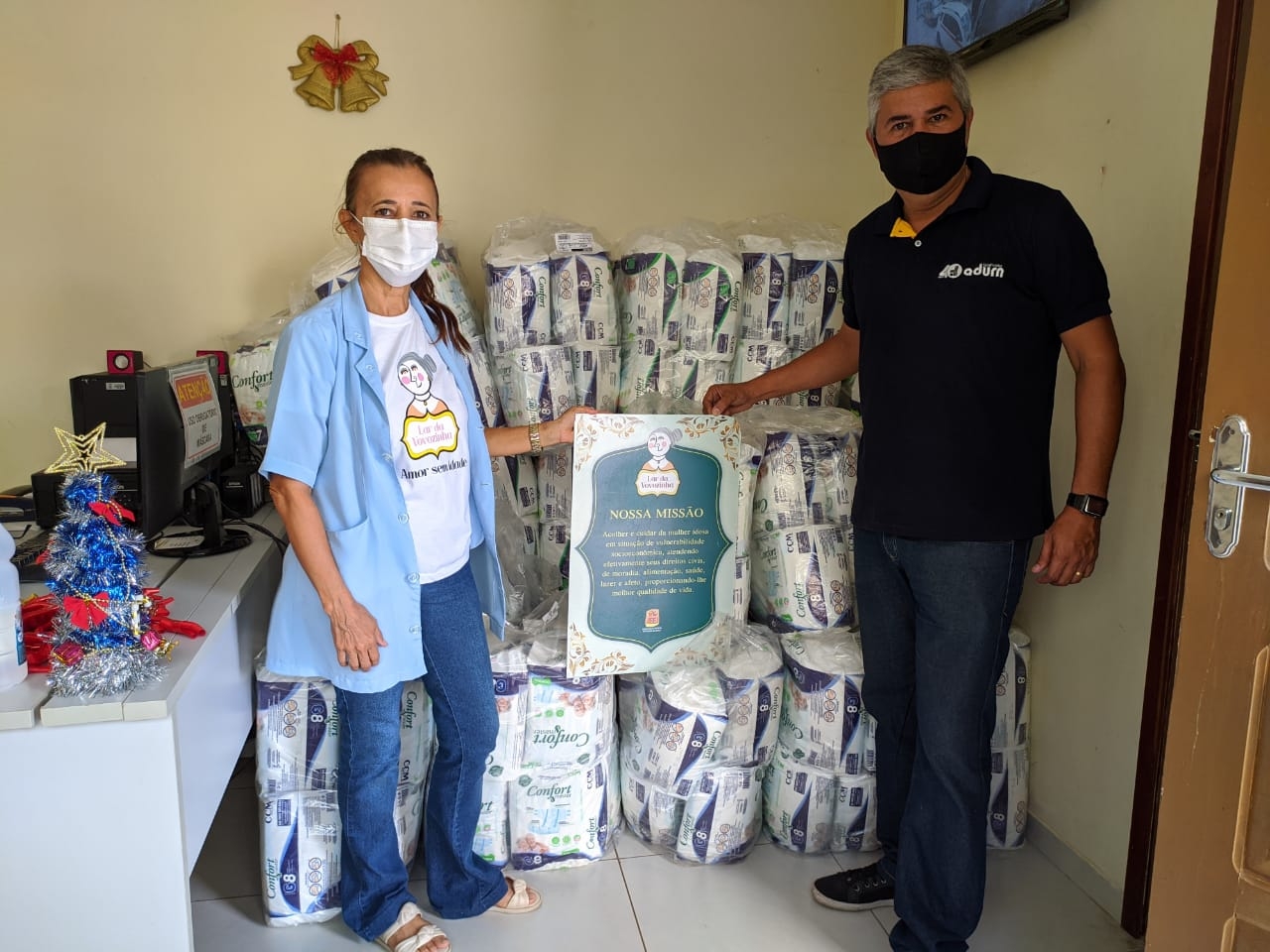 Iniciativa da diretoria do ADURN-Sindicato, que beneficiou quatro instituições de caridade, que cuidam de idosos: Lar da Vovozinha, Lar do Ancião Evangélico, Espaço Solidário Mãe Luiza e Casa de Idosos Jesus Misericordioso. Foram doados mais de mil itens, entre fraldas geriátricas, leite desnatado e itens de higiene pessoal.