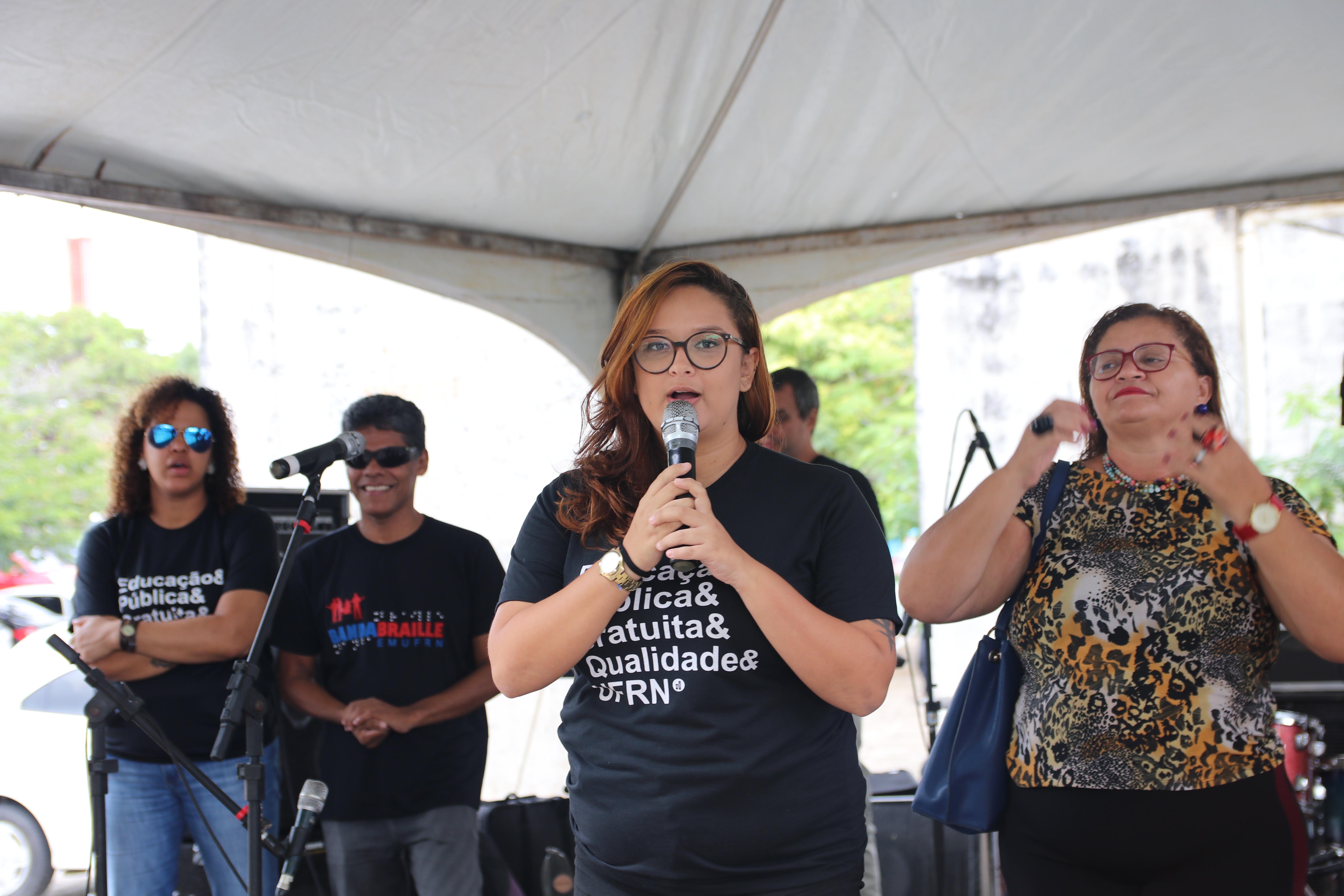 Paralisação no dia 2 de outubro. Professores, servidores, estudantes e profissionais ligados à área da educação seguem agenda nacional que pretende mobilizar o Brasil em defesa das Instituições Federais de Ensino e da Educação Pública, ameaçadas pelo corte de 30% do orçamento. Em Natal, pela manhã, o ADURN-Sindicato, ATENS-UFRN, Sintest e DCE realizaram um ato político-cultural, a partir das 9h, no estacionamento do Centro de Convivência da UFRN.