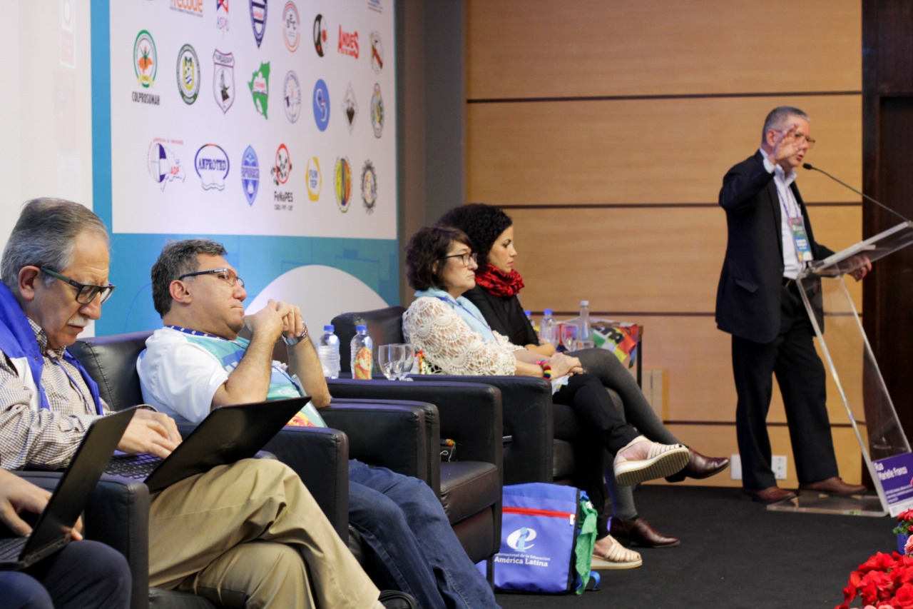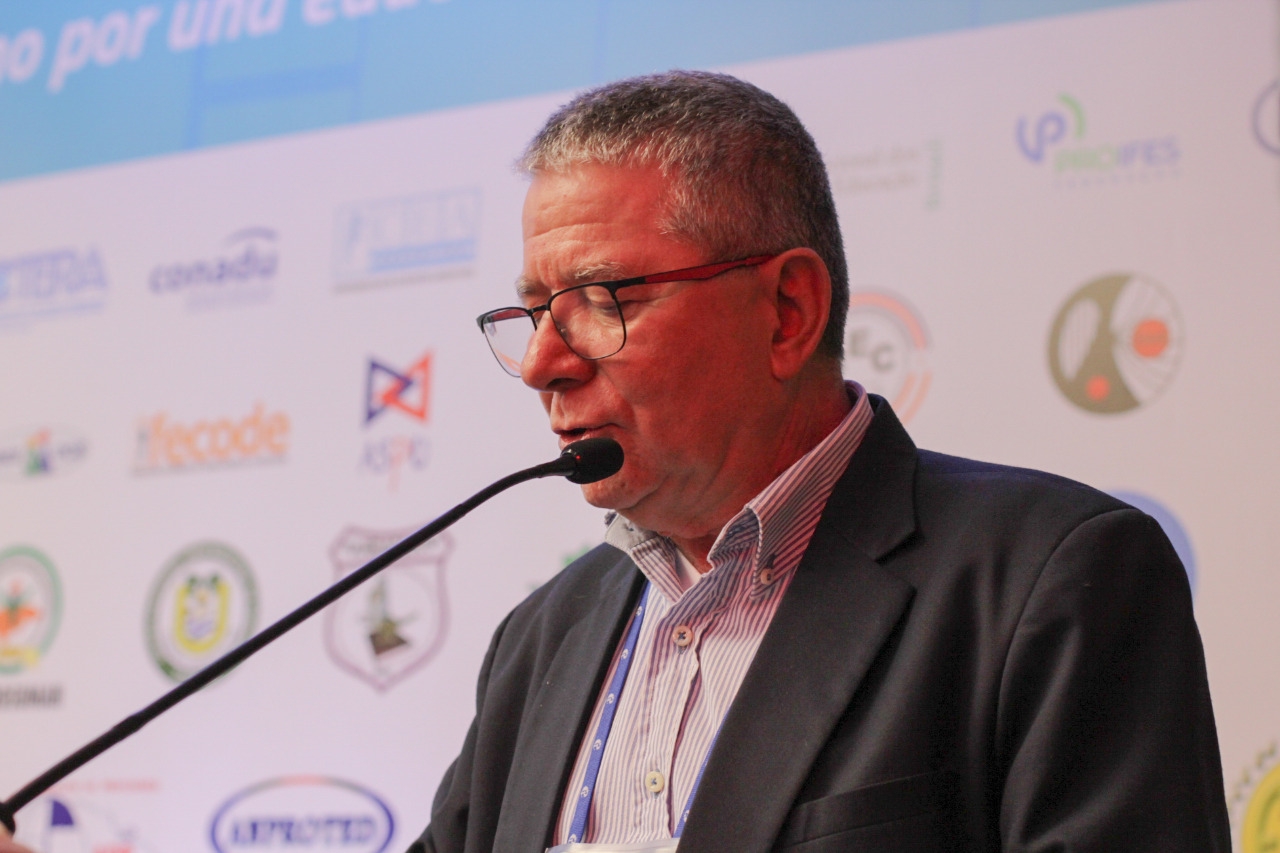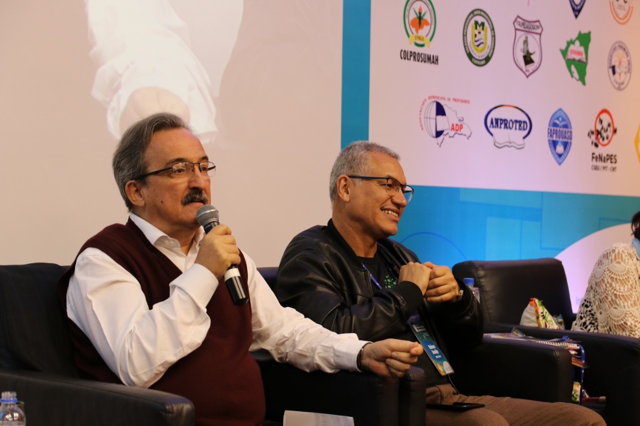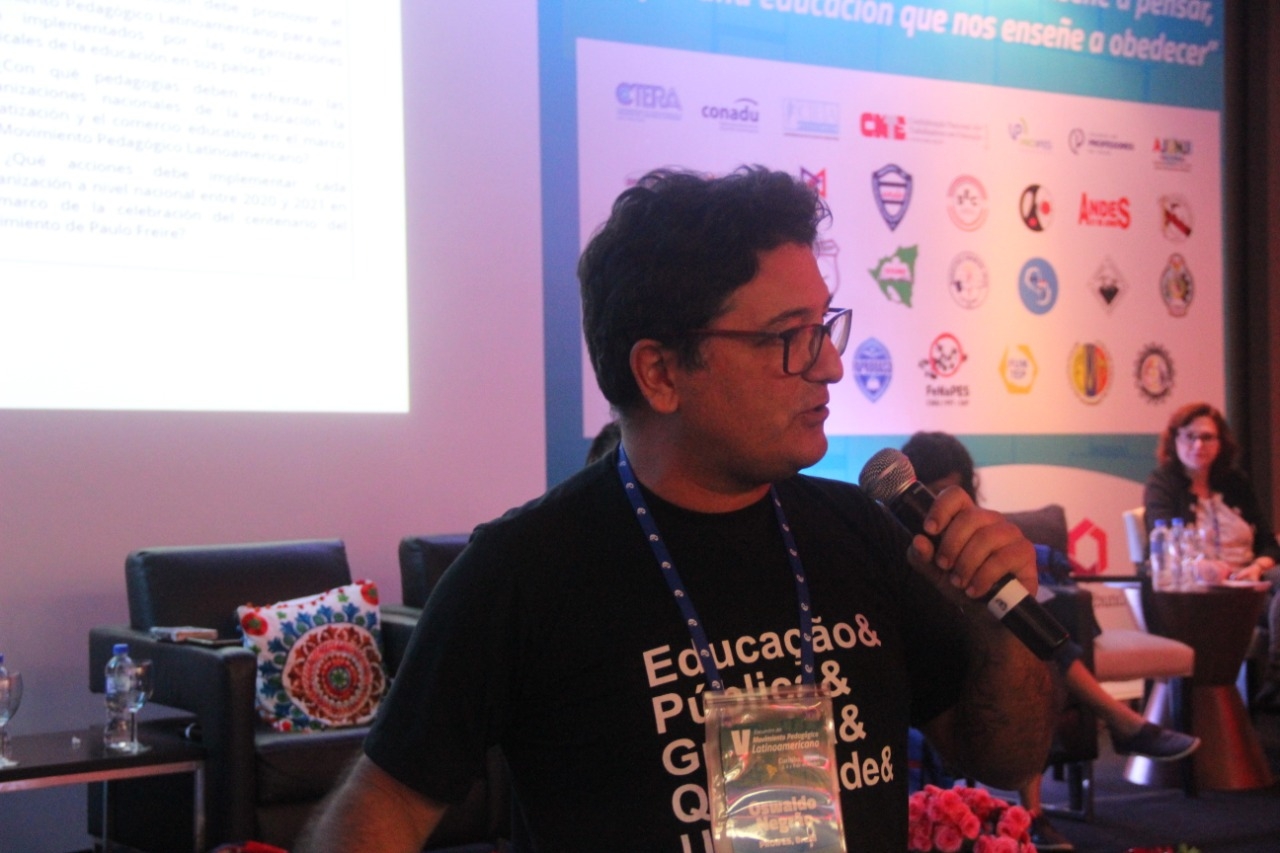Com uma delegação composta por 47 docentes, o PROIFES-Federação acompanha as discussões do V Encontro do Movimento Pedagógico Latino-americano, que aconteceu nos dias 3, 4 e 5 de dezembro, na cidade de Curitiba/PR. O diretor do ADURN-Sindicato, Oswaldo Negrão, e a vice-presidente da entidade, Gilka Pimentel, participam do encontro representando os docentes da Universidade Federal do Rio Grande do Norte. O evento reúne educadores e educadoras de mais de 10 países da América Latina para discutir a conjuntura política educativa, com o objetivo de traçar estratégias de enfrentamento às ameaças que a educação vem sofrendo em todo o continente.