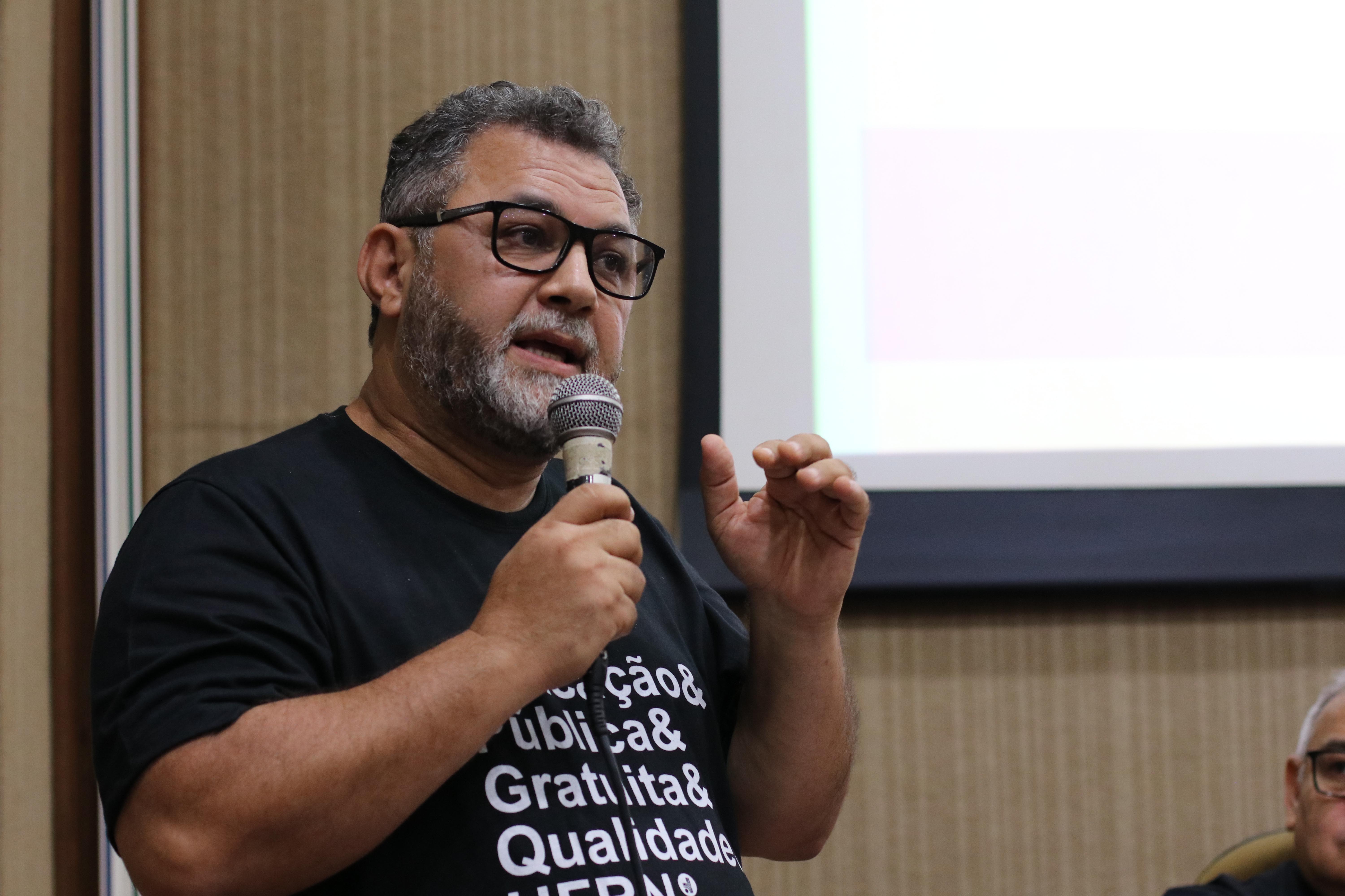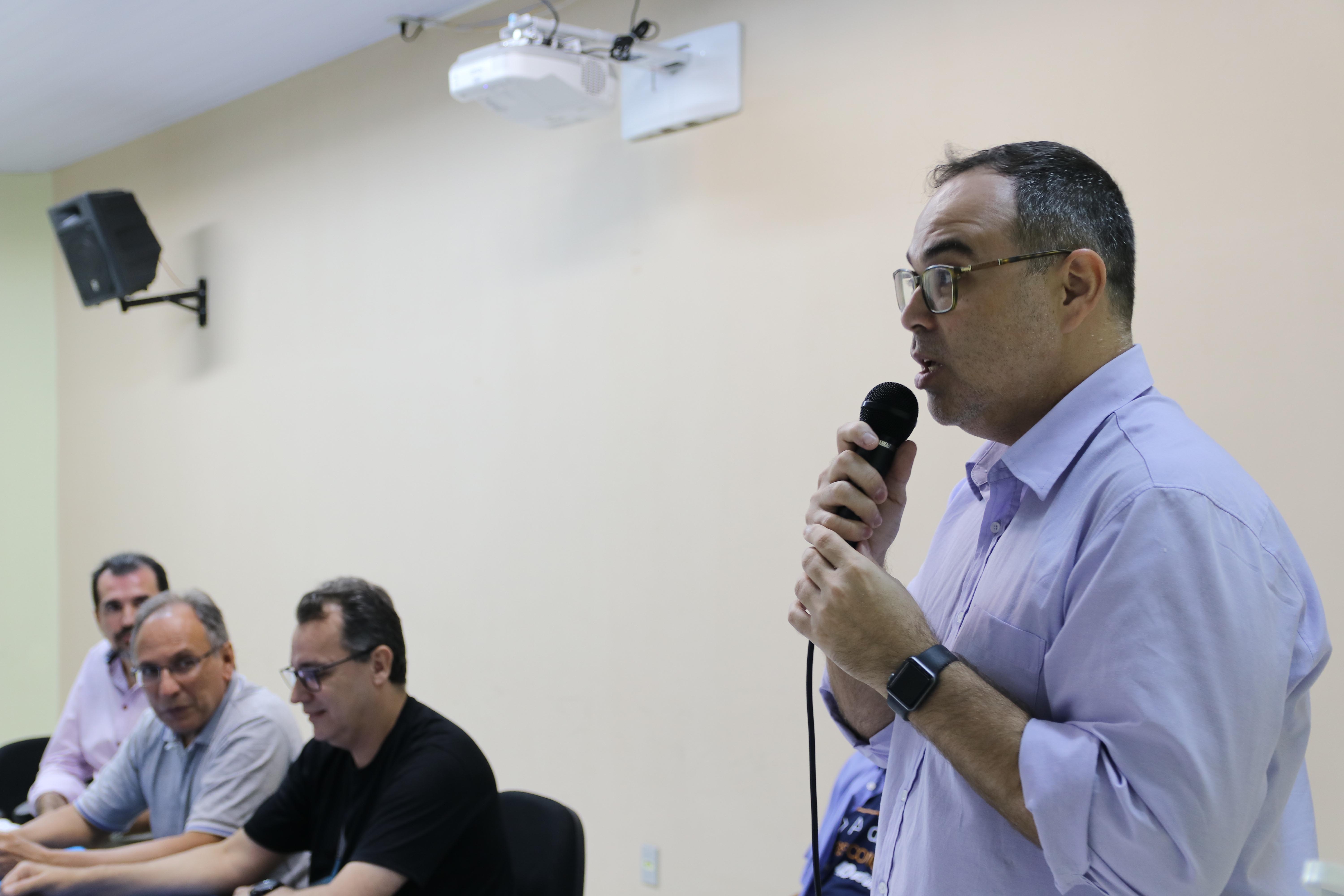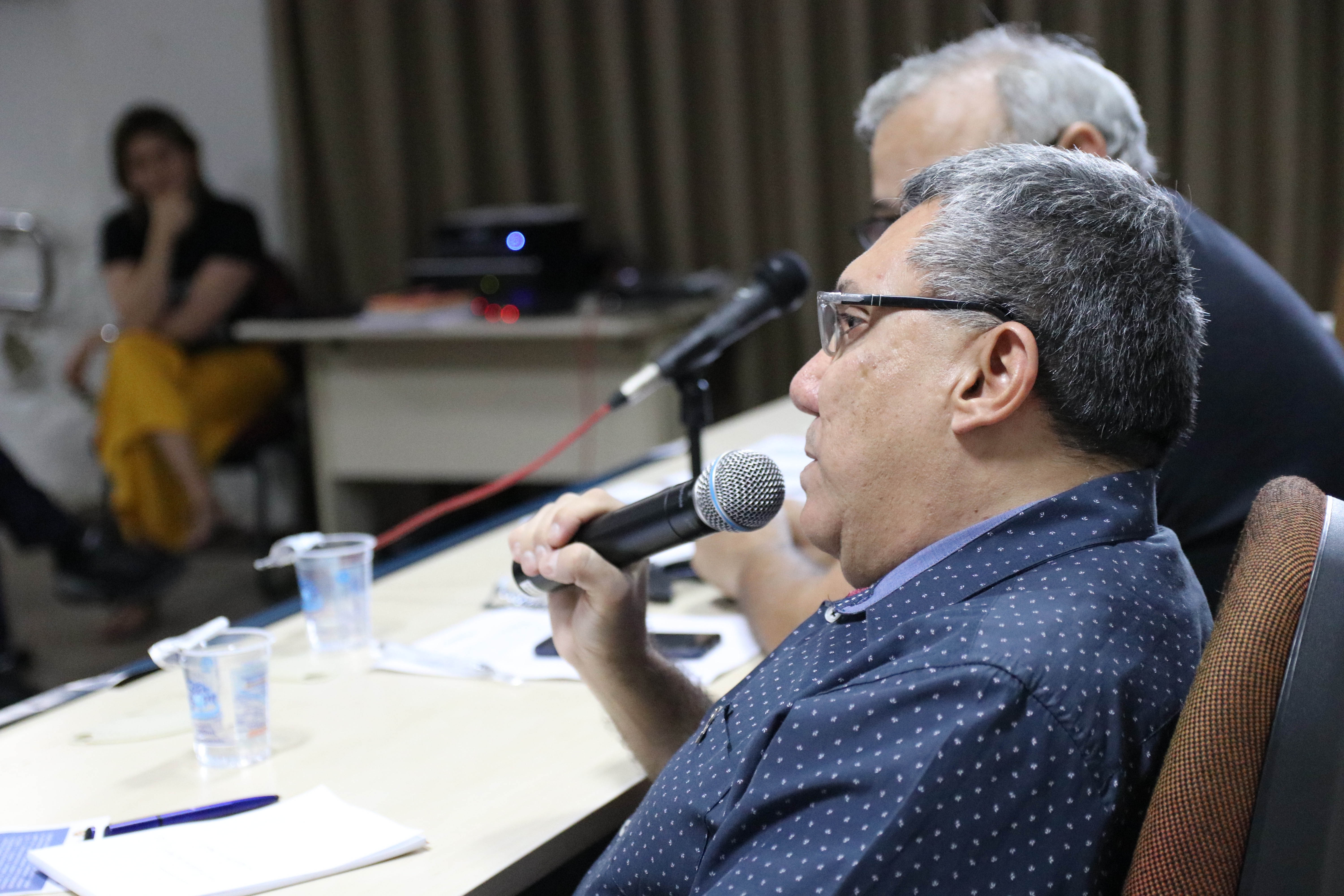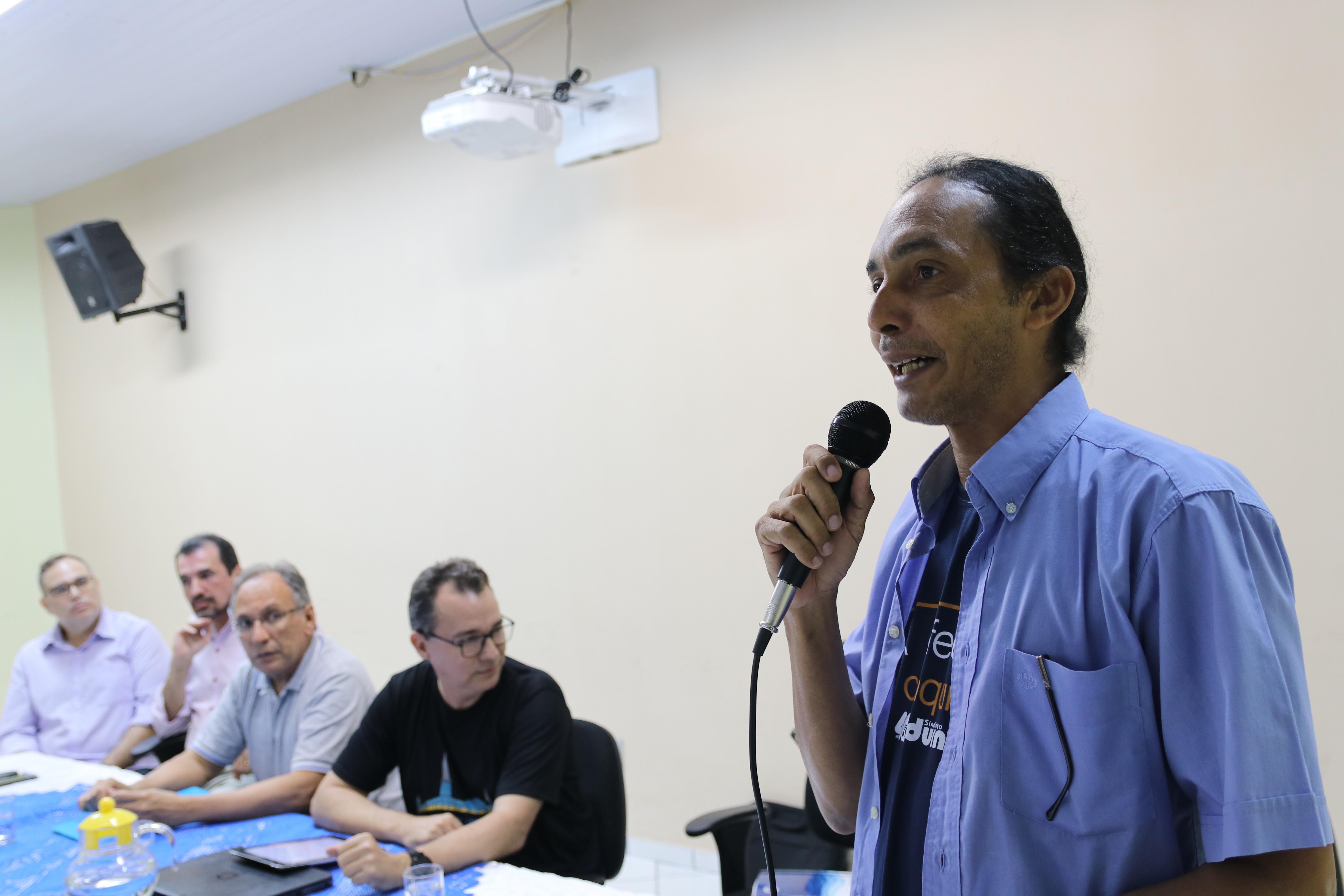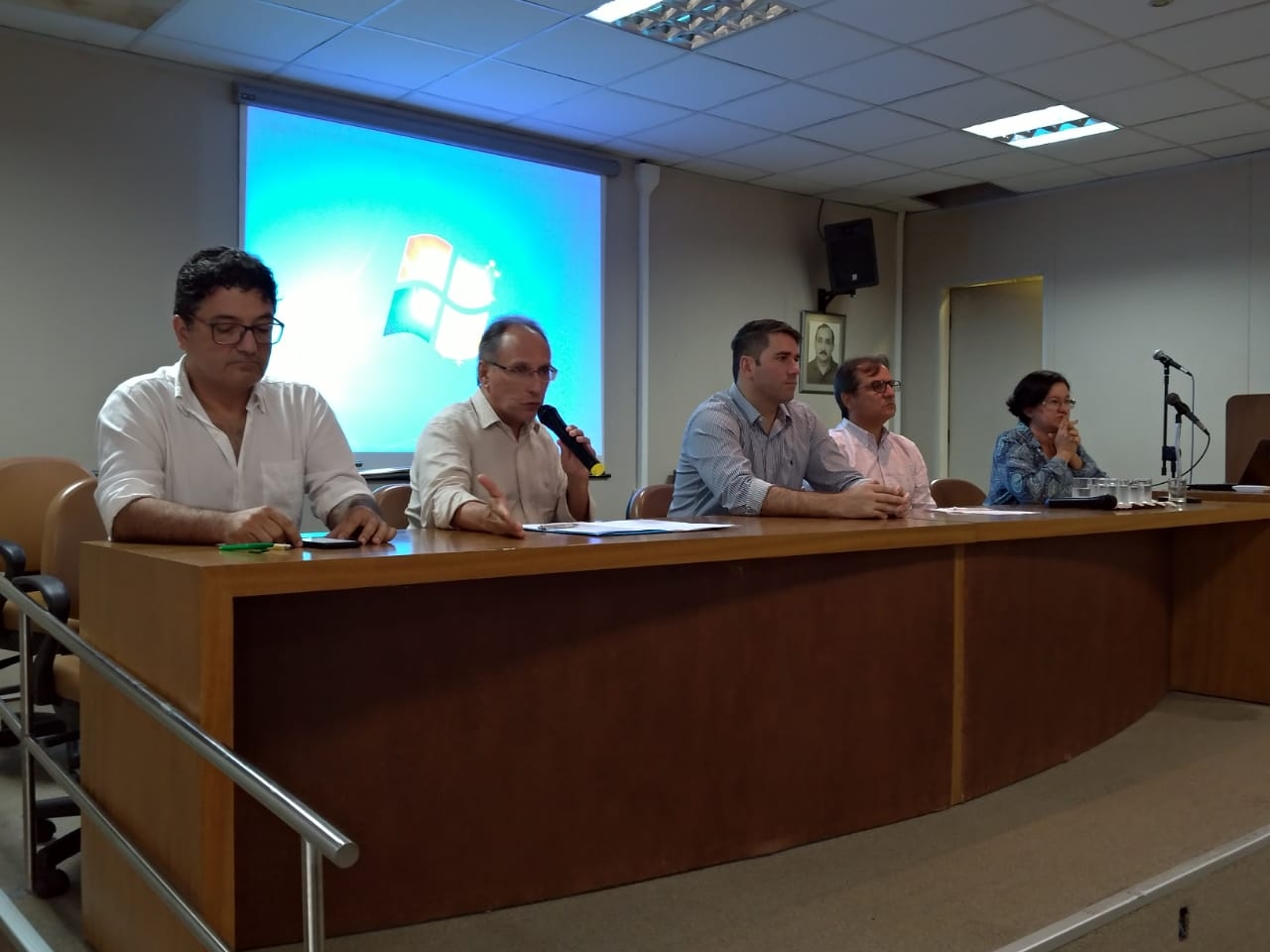 A 7ª Sessão Ordinária do Centro de Ciências da Saúde da UFRN (CCS) teve como principal ponto de pauta o debate sobre a minuta do projeto FUTURE-SE. O diretor do ADURN-Sindicato e do PROIFES-Federação, Oswaldo Negrão, participa da discussão ao lado do ex-pró-reitor de planejamento, João Emanuel Evangelista, da pró-reitora de gestão de pessoas, Mirian Dantas, e do diretor do CCS, Costinha.