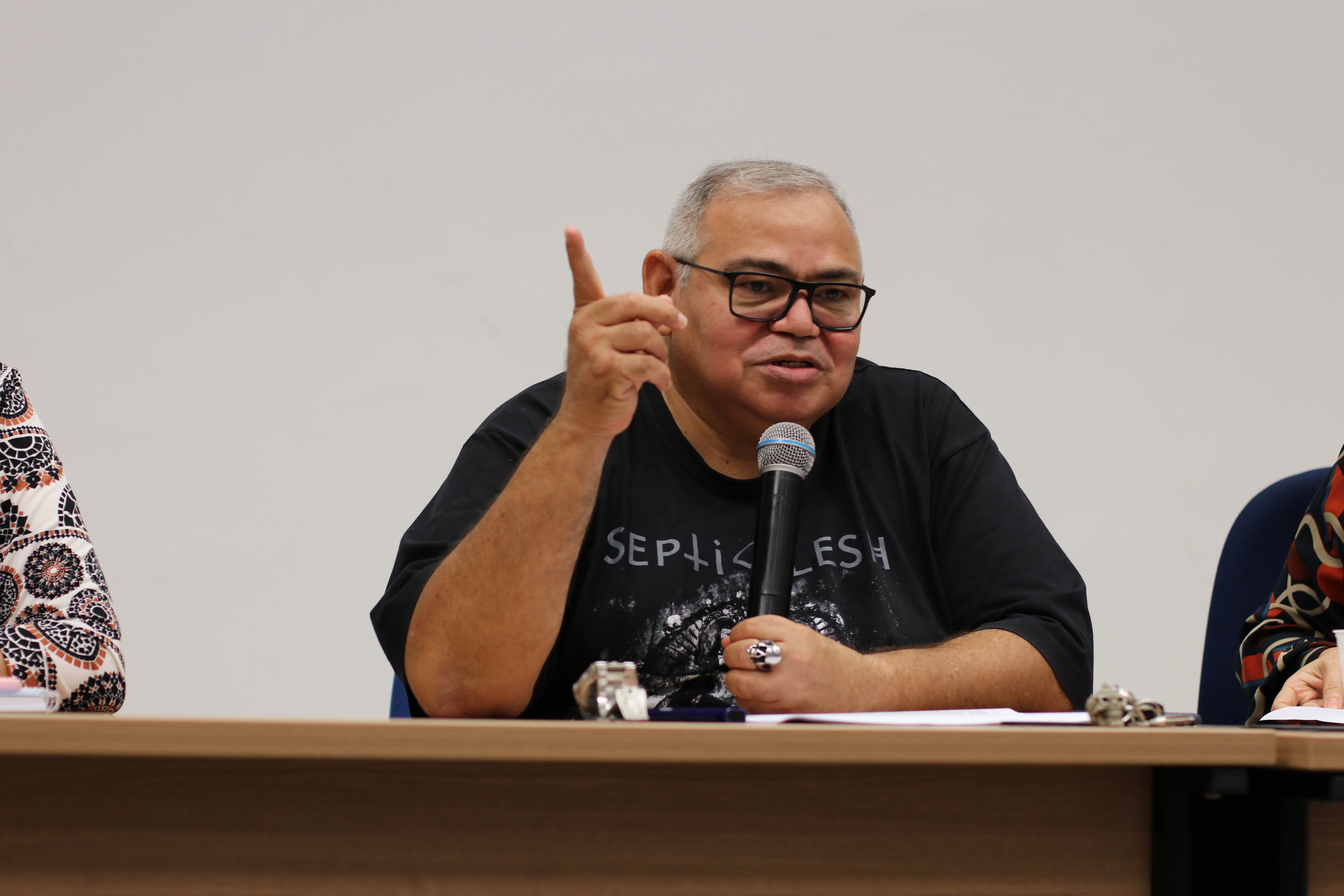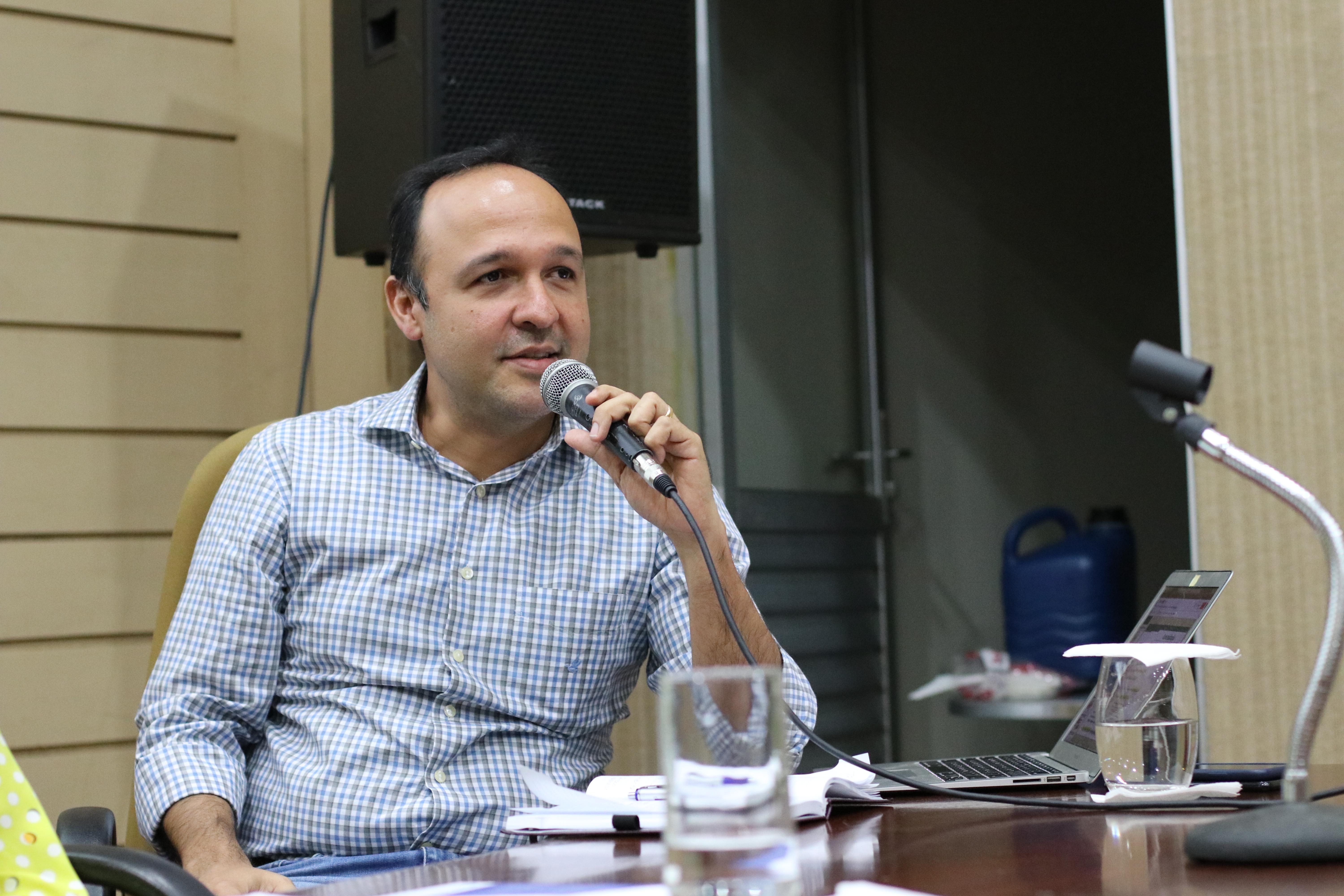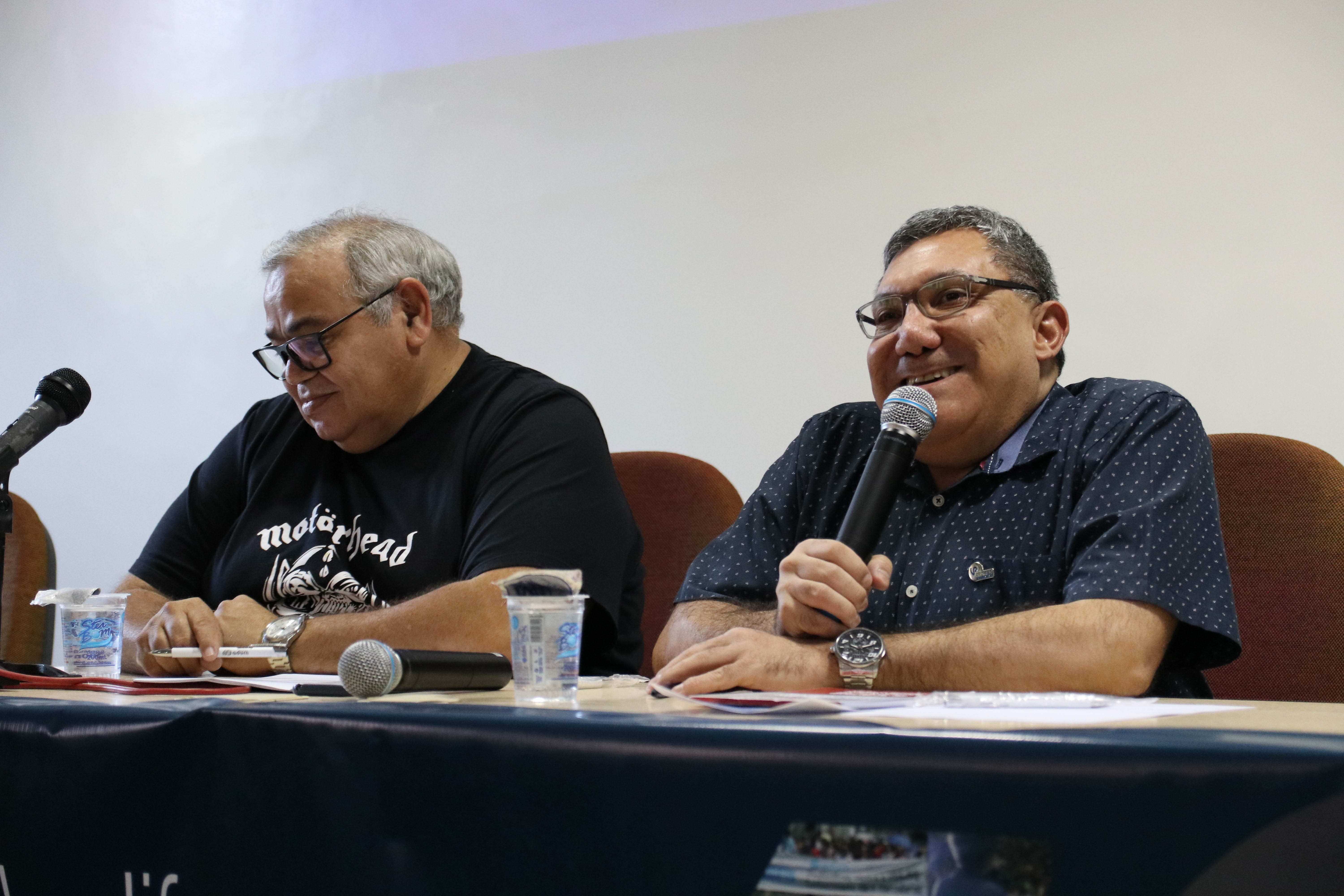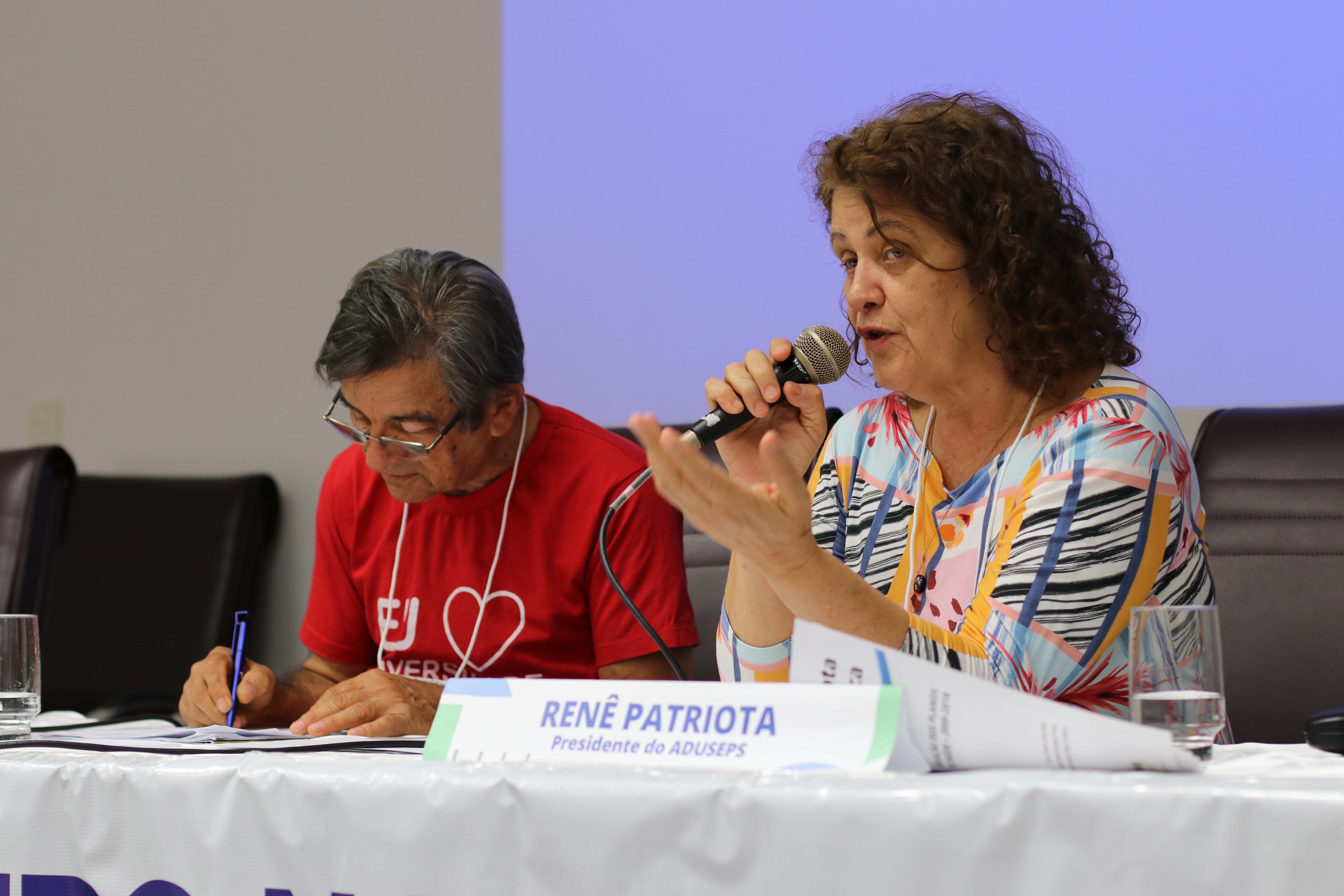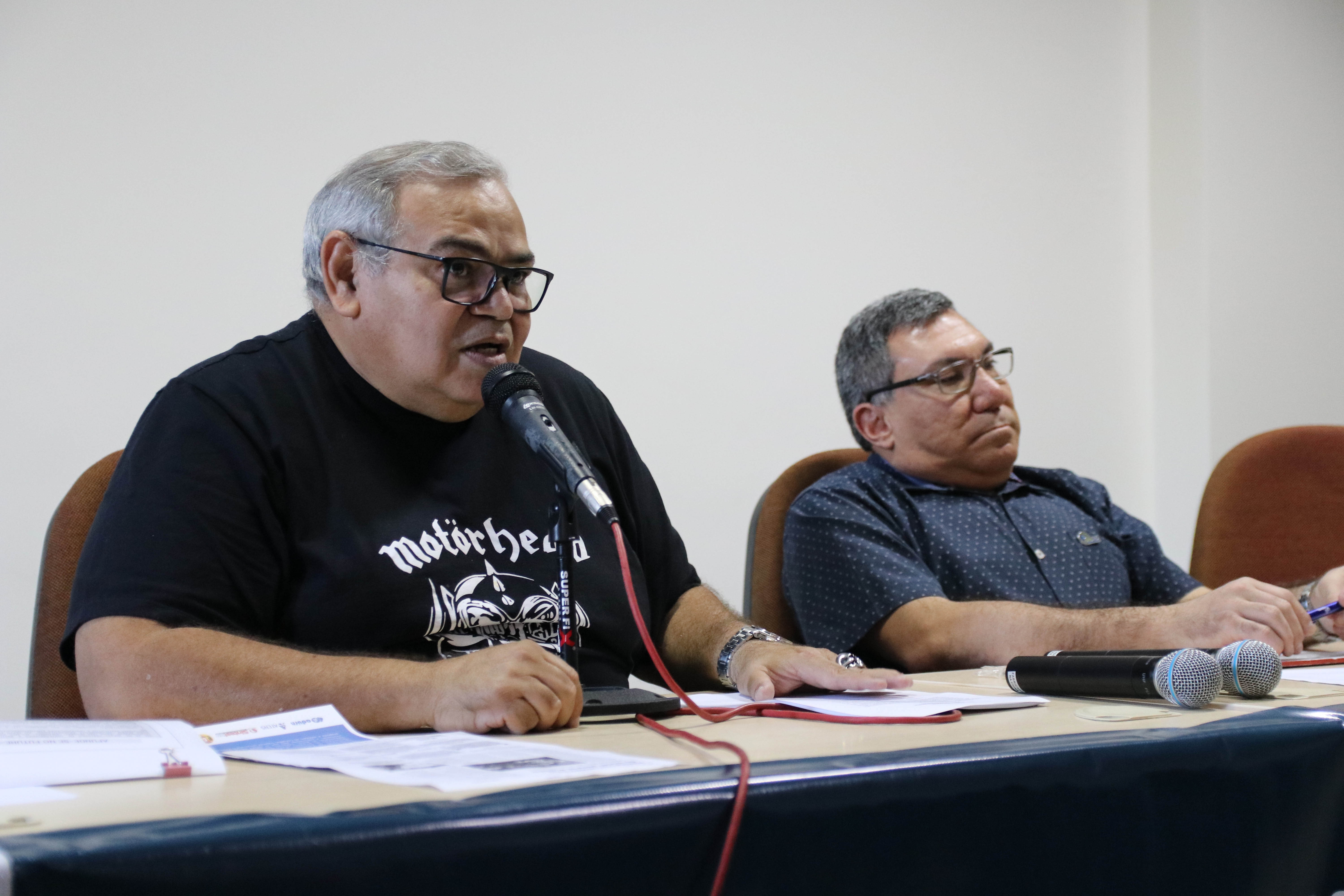 A 7ª Sessão Ordinária do Centro de Ciências da Saúde da UFRN (CCS) teve como principal ponto de pauta o debate sobre a minuta do projeto FUTURE-SE. O diretor do ADURN-Sindicato e do PROIFES-Federação, Oswaldo Negrão, participa da discussão ao lado do ex-pró-reitor de planejamento, João Emanuel Evangelista, da pró-reitora de gestão de pessoas, Mirian Dantas, e do diretor do CCS, Costinha.