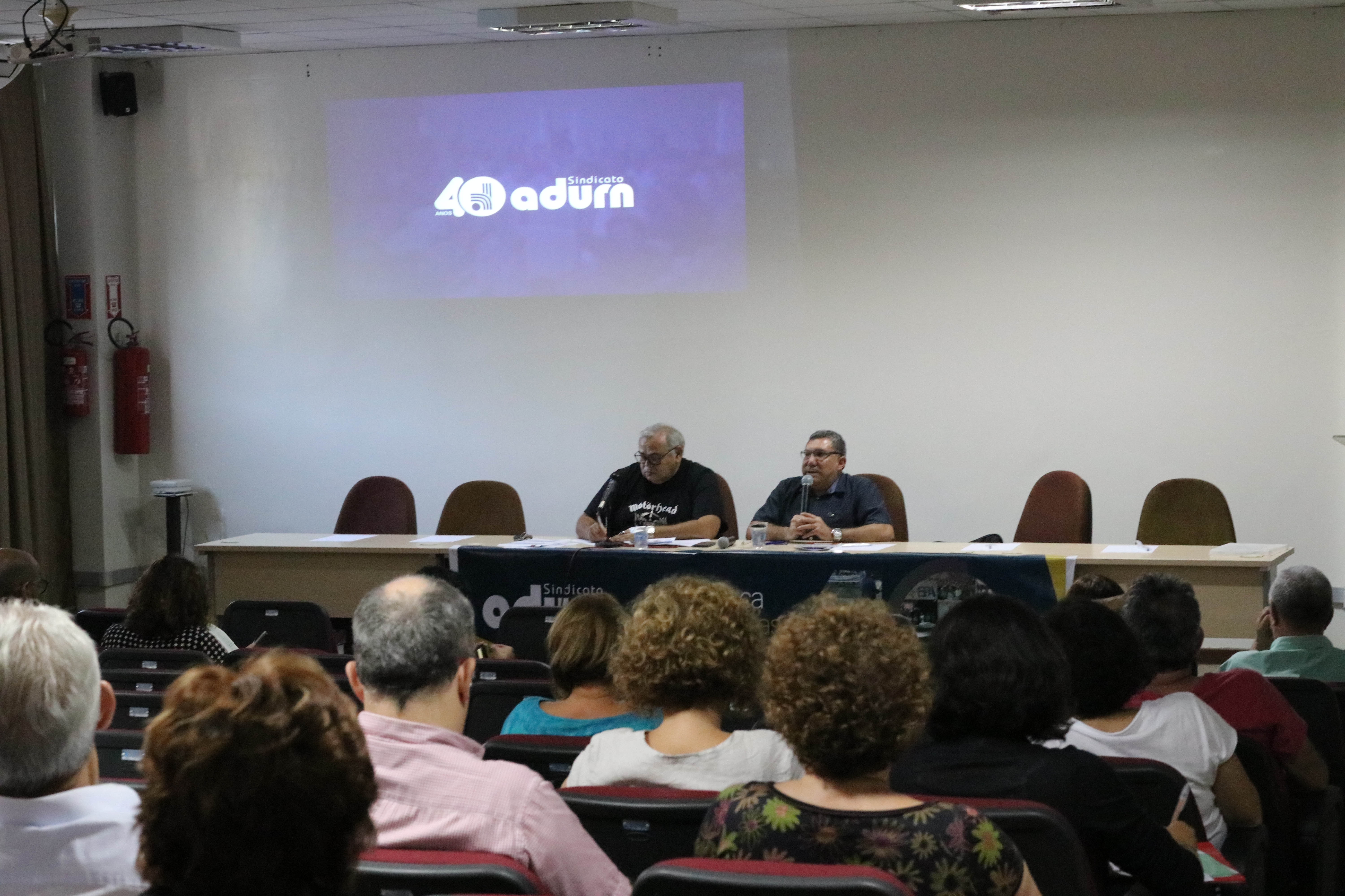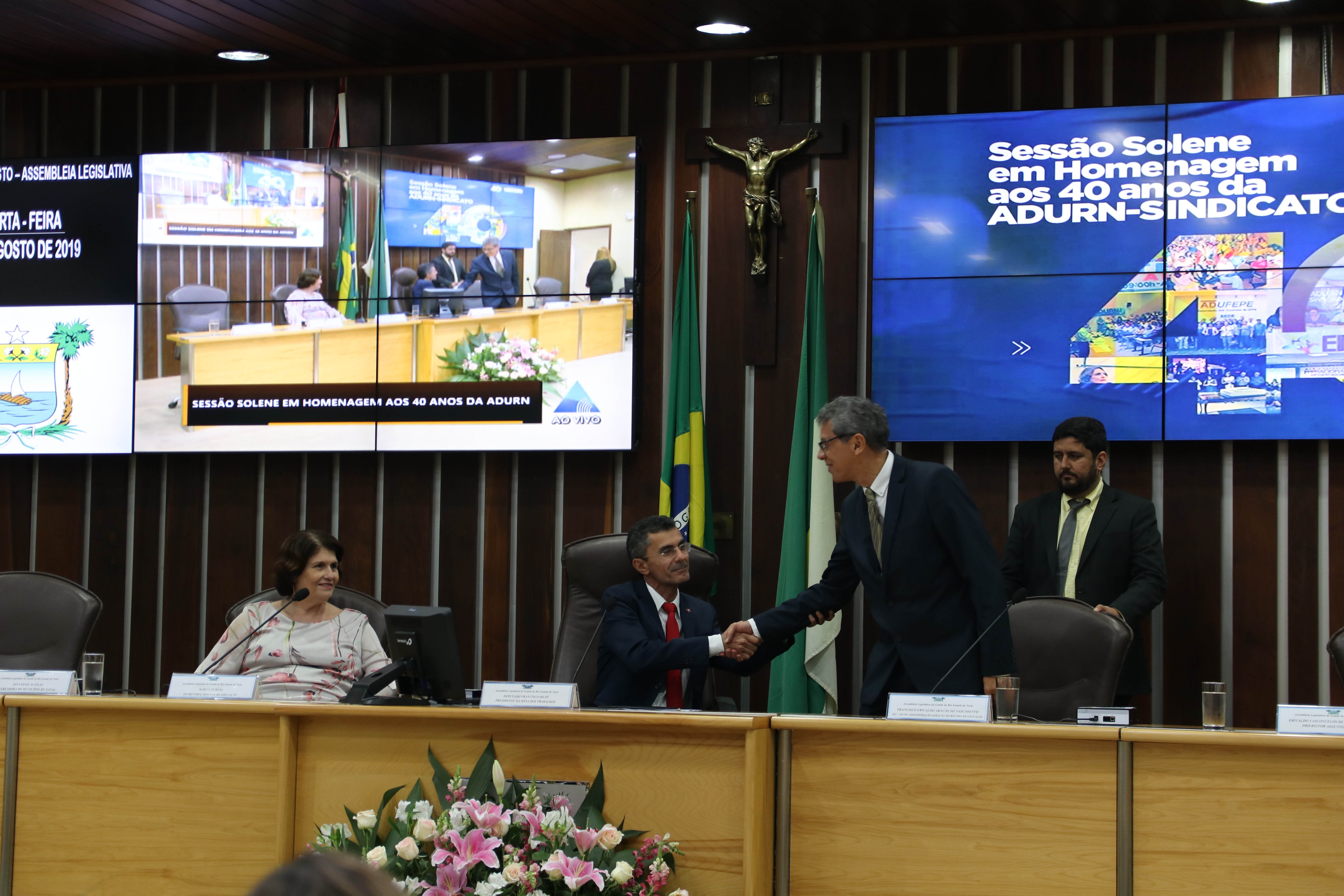 No momento em que o governo federal elege a Educação e os movimentos sociais e sindicais como inimigos, o legislativo potiguar faz homenagem aos 40 anos do ADURN-Sindicato, entidade representativa dos docentes da Universidade Federal do Rio Grande do Norte. Proposta pelo deputado estadual Francisco do PT, a sessão solene aconteceu nesta quarta-feira, 28, e foi um momento de reconhecer, também, o papel dos dirigentes que estiveram à frente das 21 gestões que conduziram política e administrativamente a entidade.