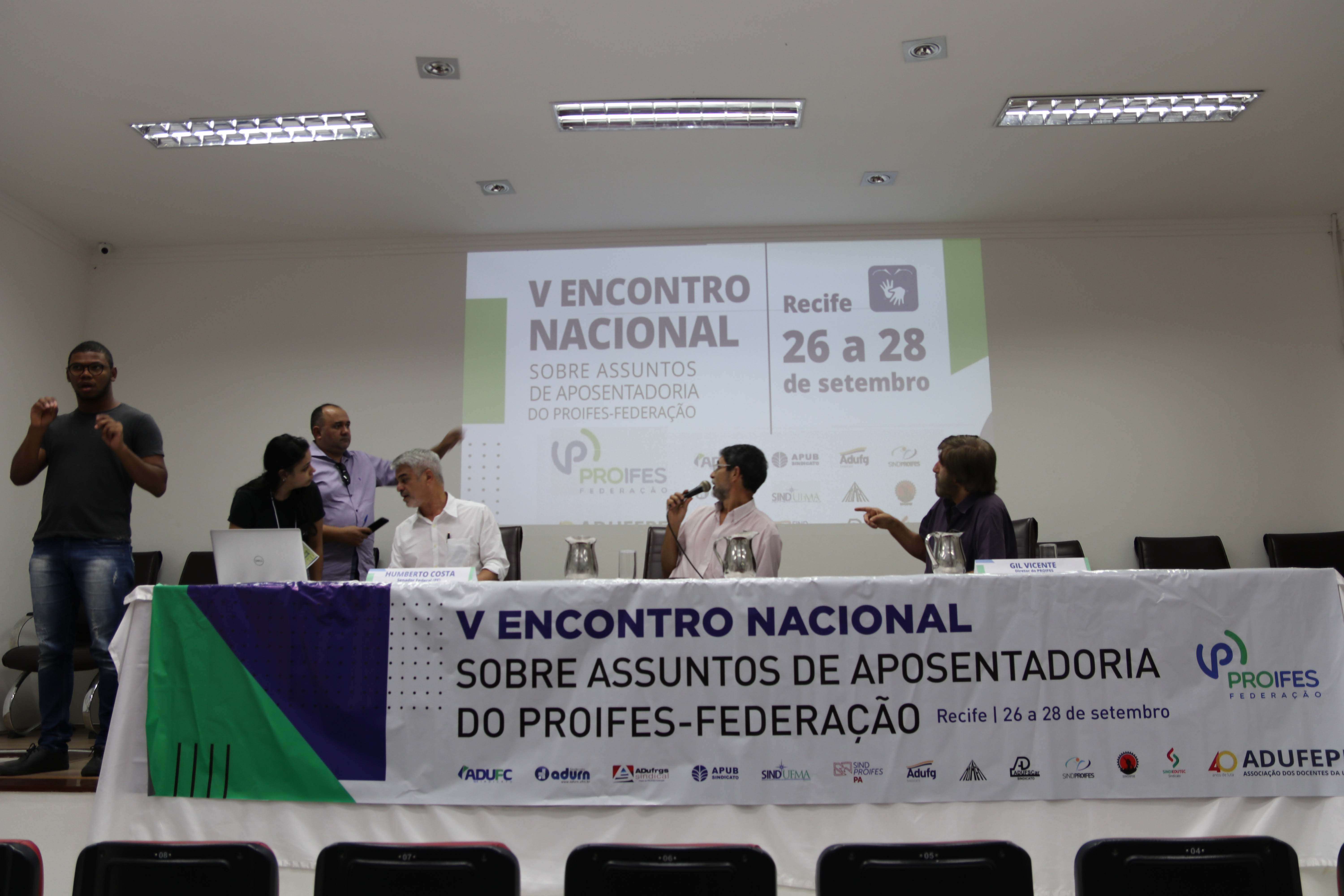 V Encontro Nacional de Assuntos de Aposentadoria do PROIFES-Federação, realizado em Recife, capital pernambucana, de 26 a 28, em parceria com a ADUFEPE-Sindicato. Com o debate focado nos direitos dos aposentados, planos de saúde, e atuais ameaças à Previdência Social, representadas pela Proposta de Emenda à Constituição (PEC) 6 de 2019, mais conhecida como Reforma da Previdência.