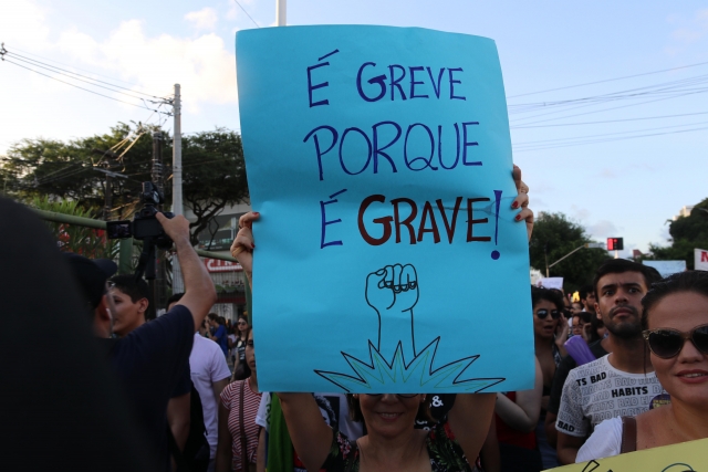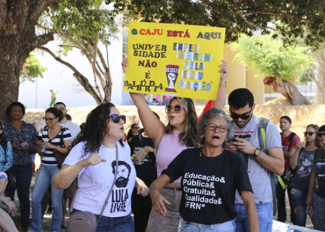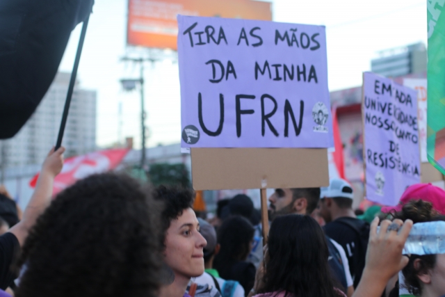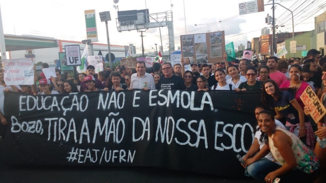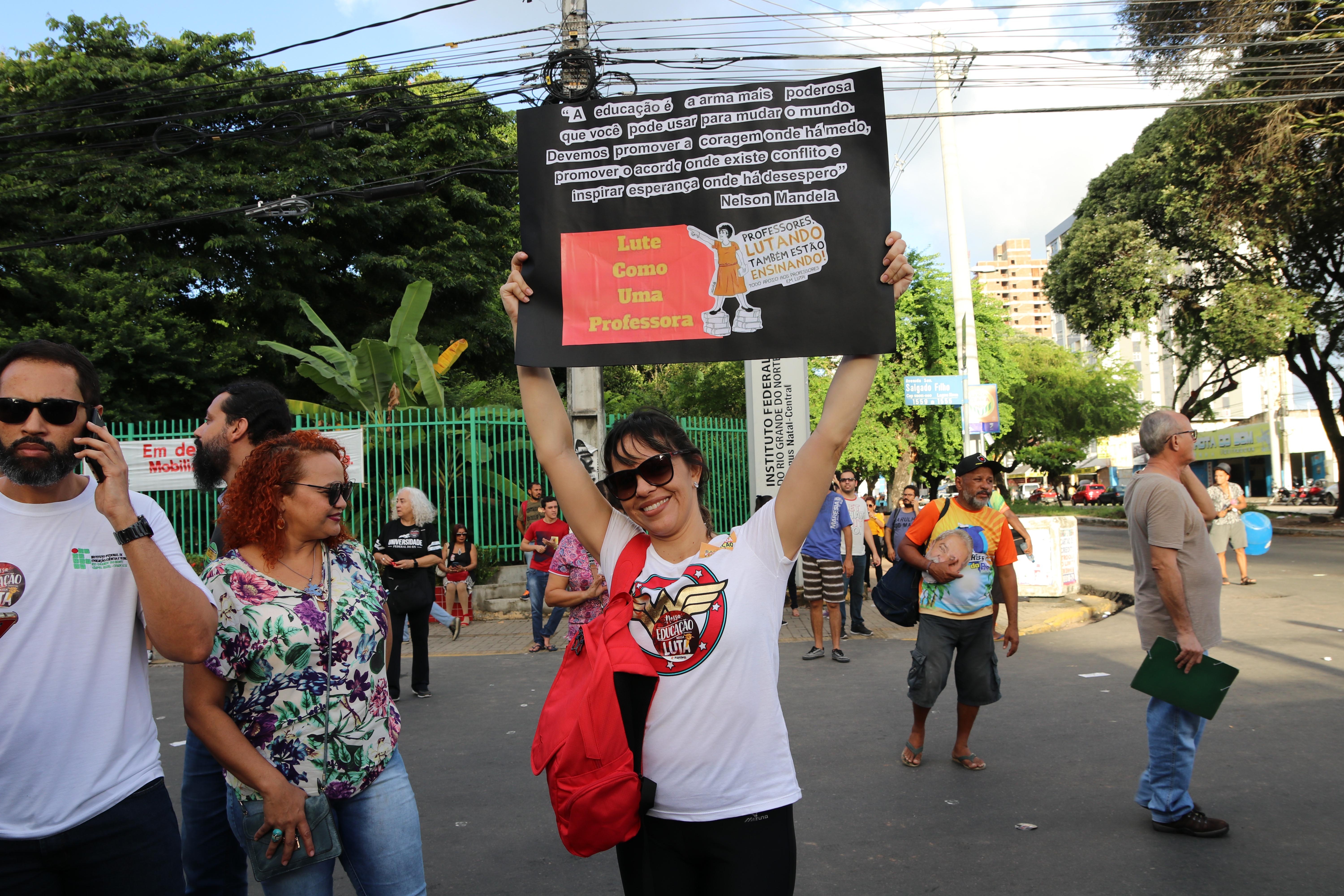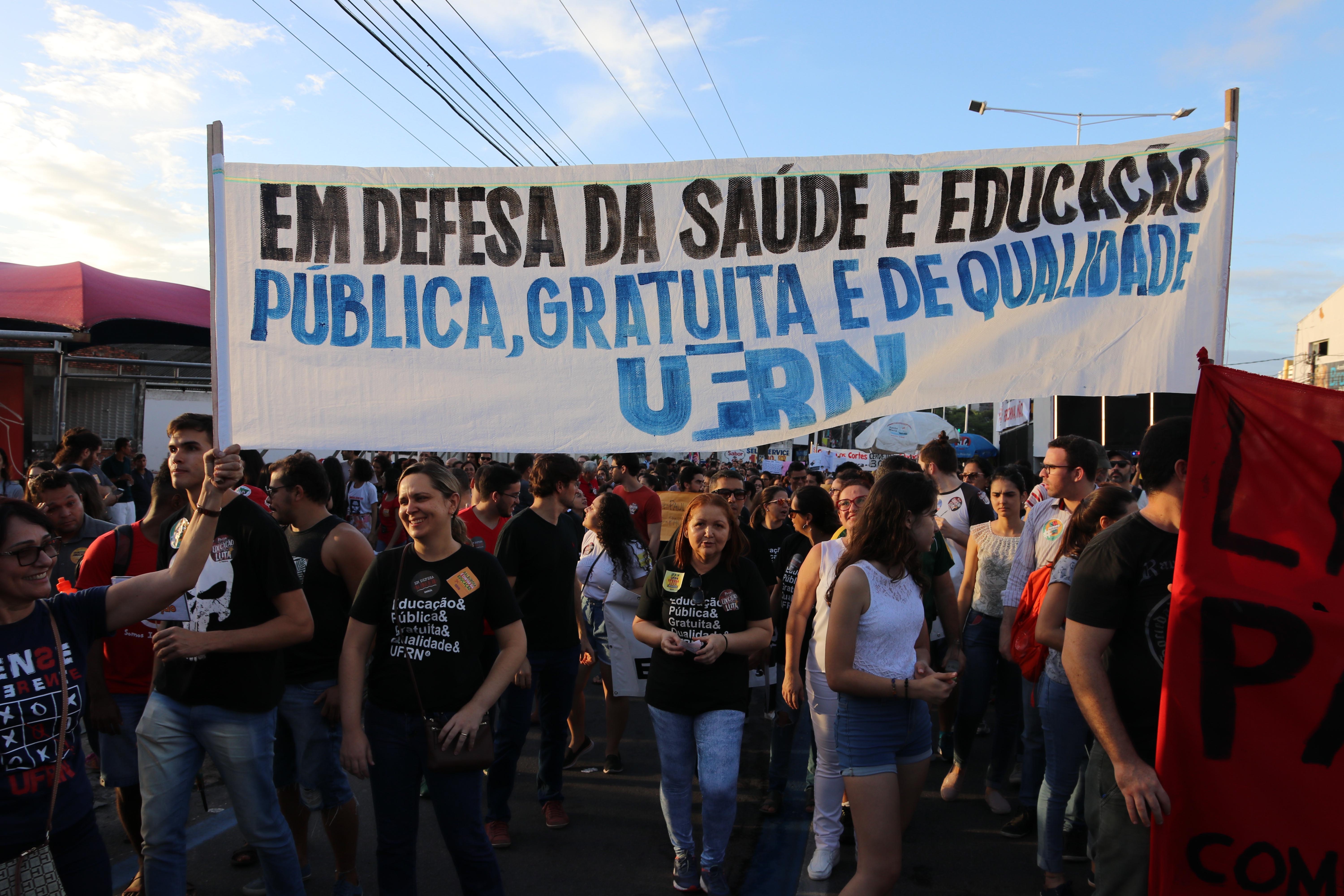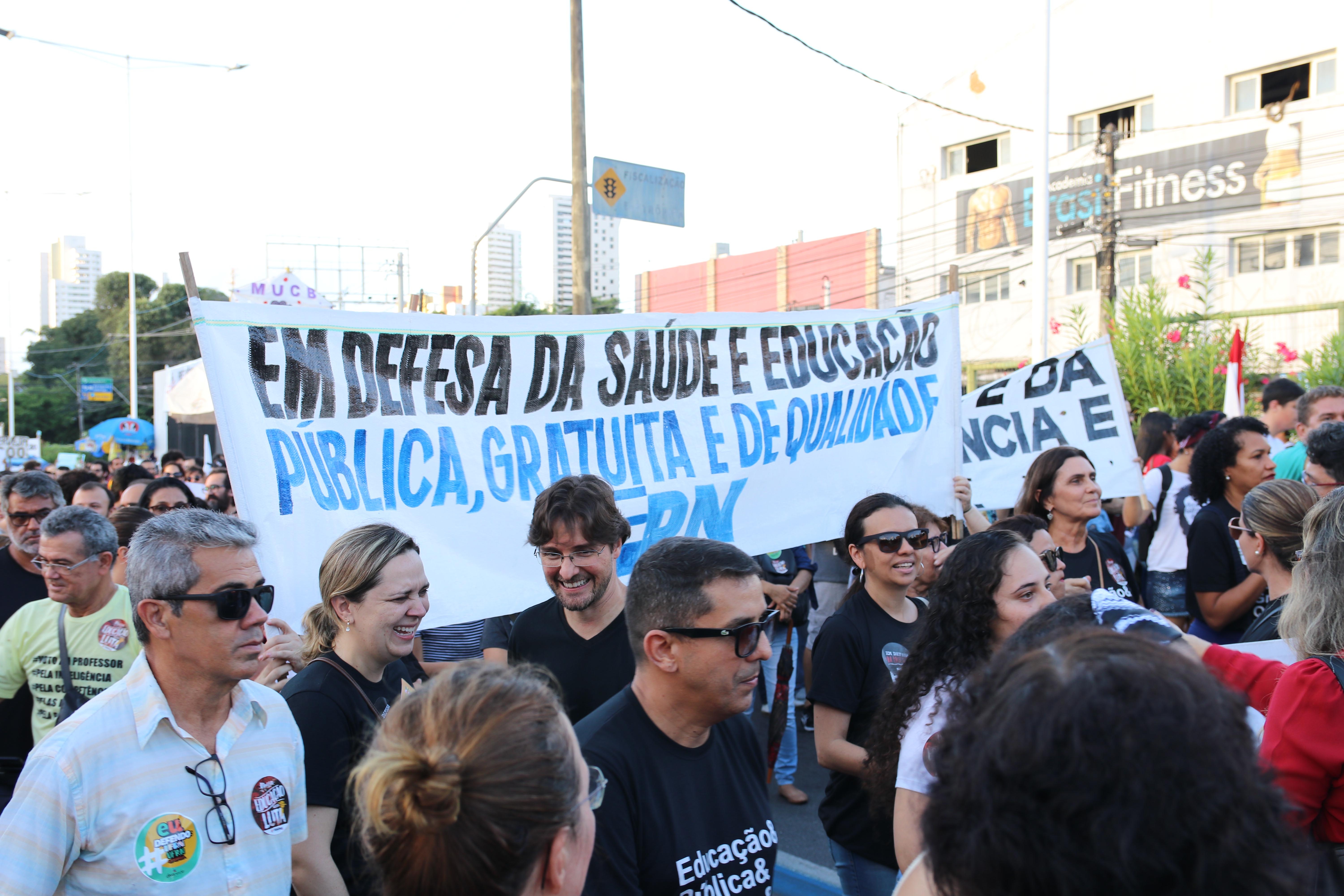 Com a marca da diversificada expressão crítica da juventude potiguar, a defesa da Educação pública, gratuita e de qualidade unificou nesta quinta-feira, 30 de maio, as diferentes categorias de trabalhadores, estudantes, artistas e lideranças políticas, dos movimentos sociais, sindicais, de mulheres e da juventude. Em Natal, milhares voltaram às ruas contra a guerra deflagrada pelo MEC às Instituições Federais de Ensino e anunciaram que o próximo passo dos movimentos sindicais, sociais e estudantis é ampliar a mobilização para a greve geral contra a proposta de nova Previdência, marcada para 14 de junho.