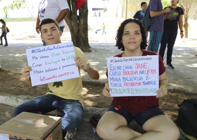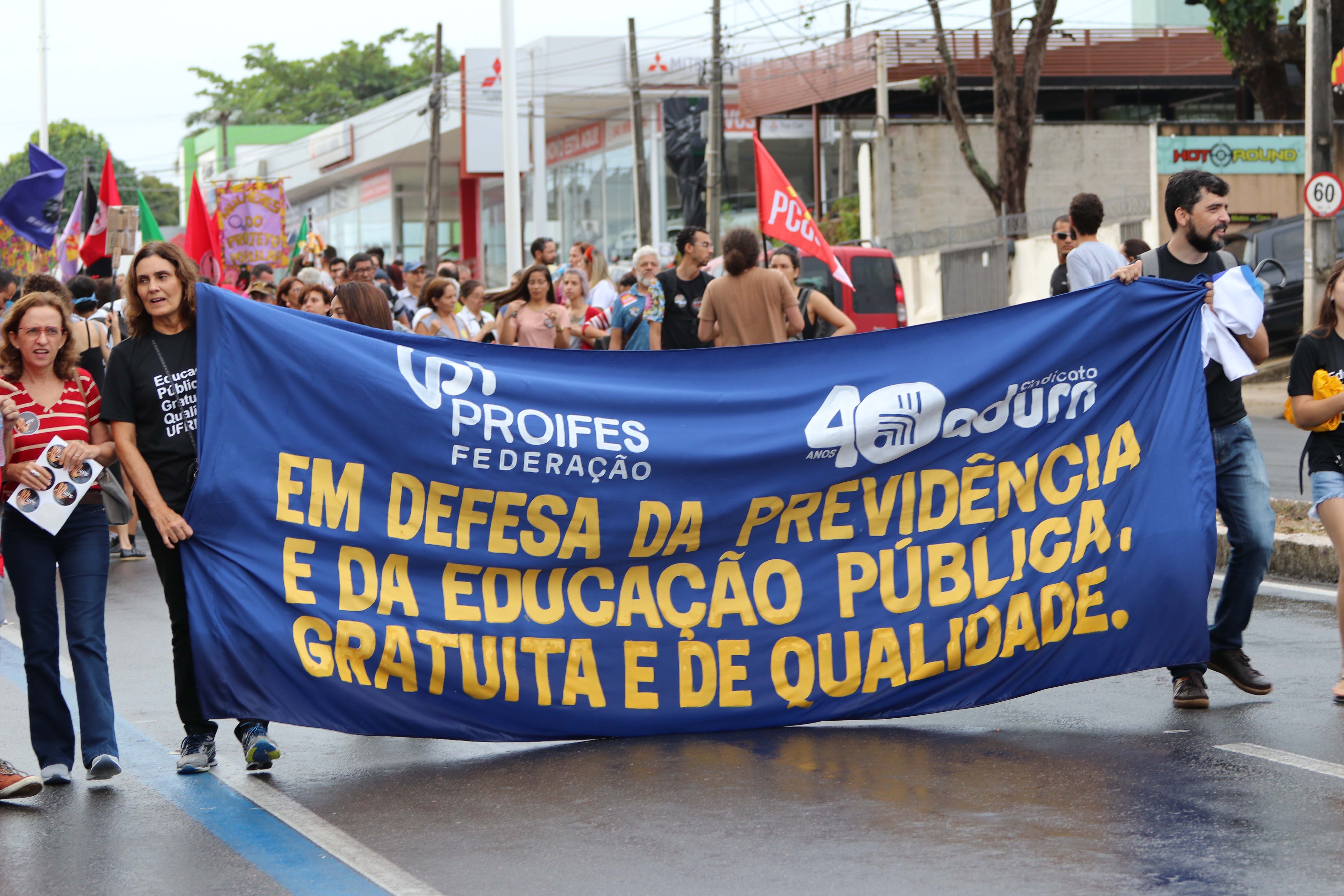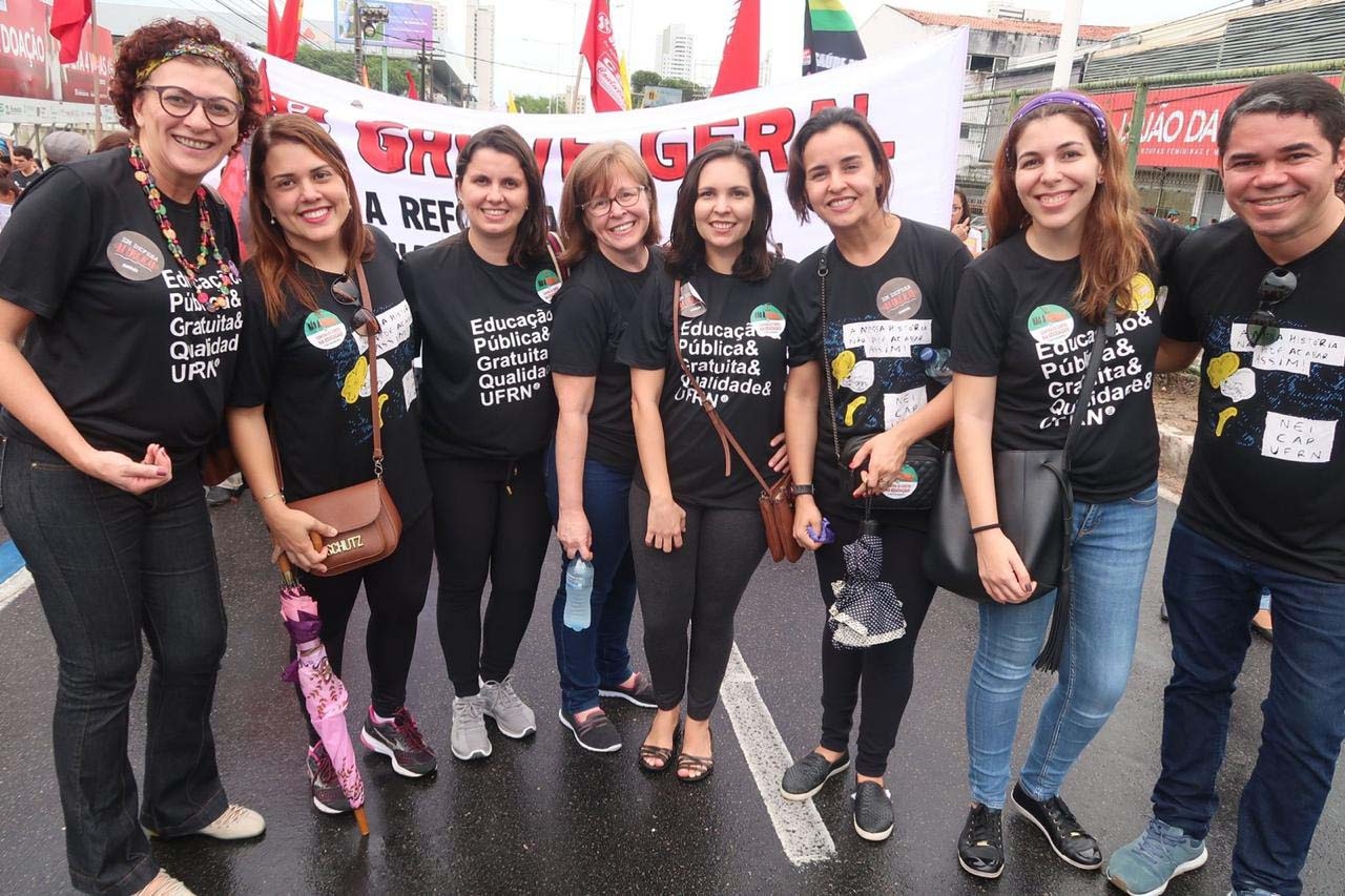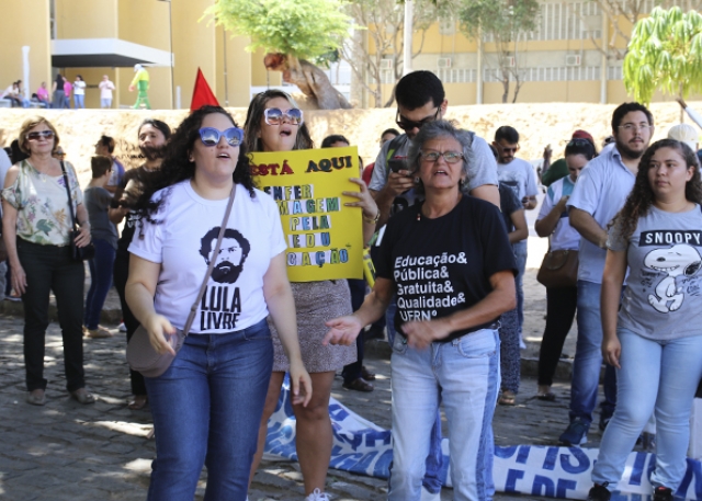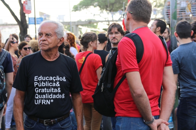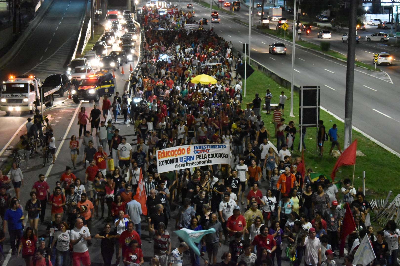 Professores, estudantes e servidores da UFRN levantaram a bandeira do acesso público à Educação nas ruas de Natal.