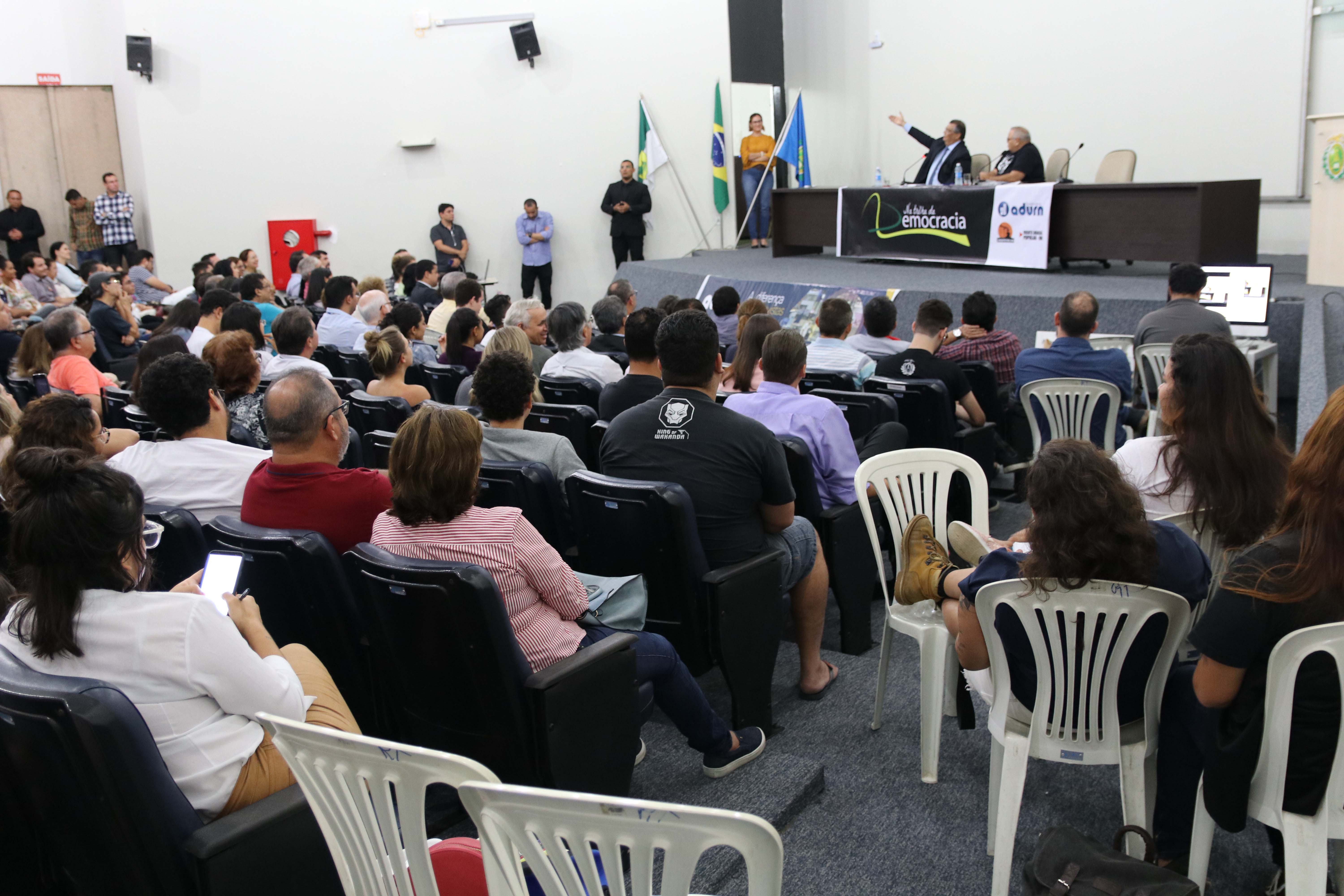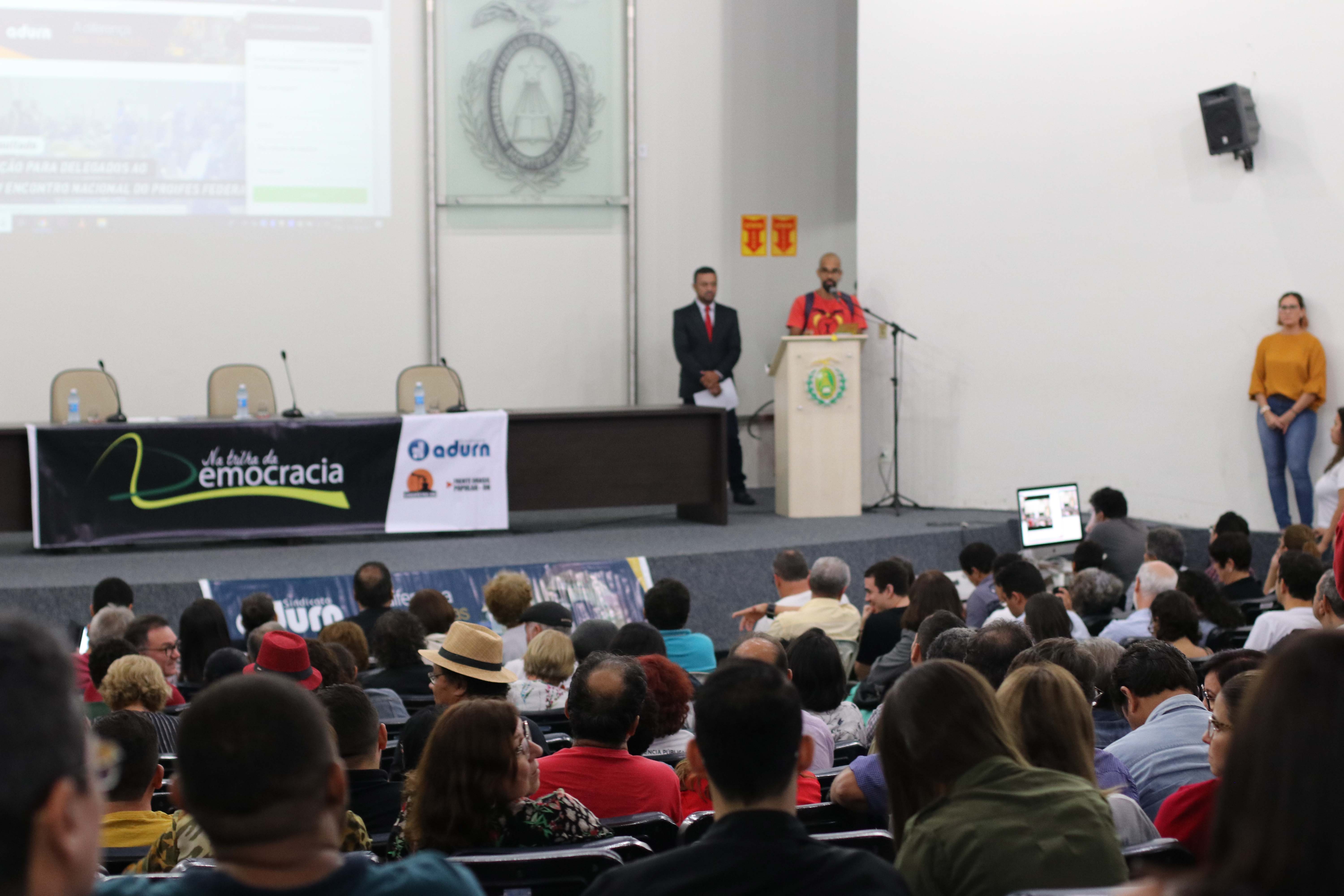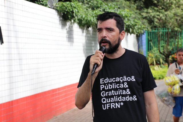 Participando de audiência na Câmara de Vereadores de Natal, presidente do ADURN-Sindicato, Wellington Duarte, fala sobre os impactos dos cortes nas Instituições Federais de Ensino para a economia do Rio Grande do Norte e entrega a “Carta aberta à Sociedade Potiguar”, publicada pelo Sindicato nesta segunda, aos vereadores e parlamentares presentes à discussão. Documento apresenta um panorama sobre os cortes orçamentários para os municípios que compõem o Estado do RN.