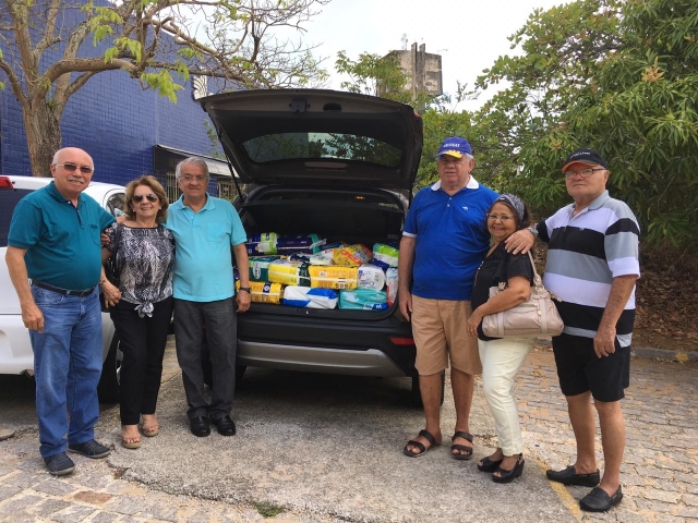 Na manhã desta sexta-feira, 21 de dezembro, a Comissão de Assuntos de Aposentadoria do ADURN-Sindicato realizou a primeira entrega das doações arrecadadas durante a confraternização dos professores aposentados. Desta vez, a instituição escolhida foi o Lar do Ancião Evangélico, localizado no conjunto Pirangi. A entidade atua desde 1984 e atende 35 idosos, entre homens e mulheres.