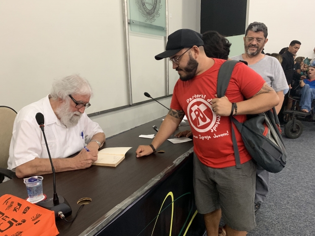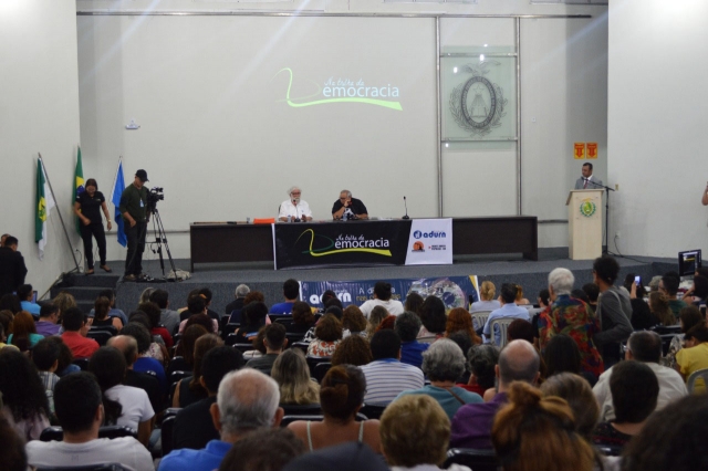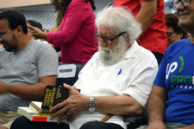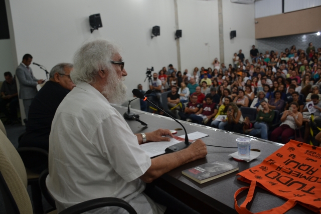 Em tempo de ruptura com a normalidade democrática, a relação entre “Democracia e Direitos Humanos” foi tema da palestra do escritor e teólogo Leonardo Boff na 10ª edição do projeto Na Trilha da Democracia. O evento aconteceu no auditório Otto Brito de Guerra e integra o ciclo de discussões que o ADURN-Sindicato, o SINDIPETRO-RN e a Frente Brasil Popular têm promovido desde o ano de 2016.