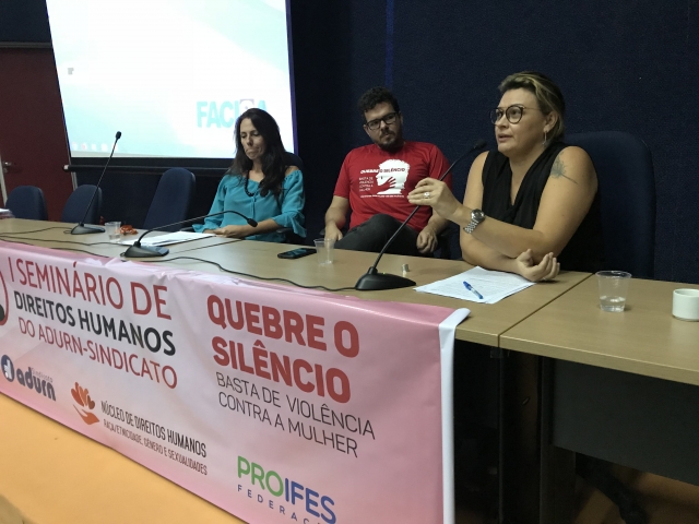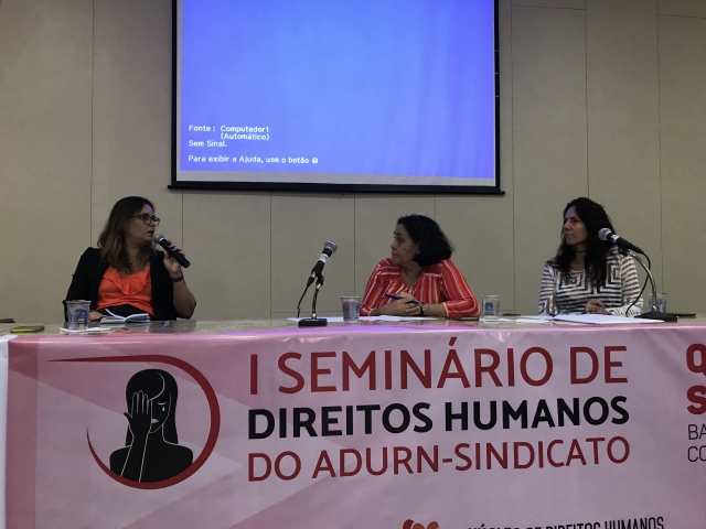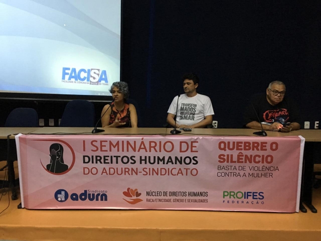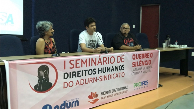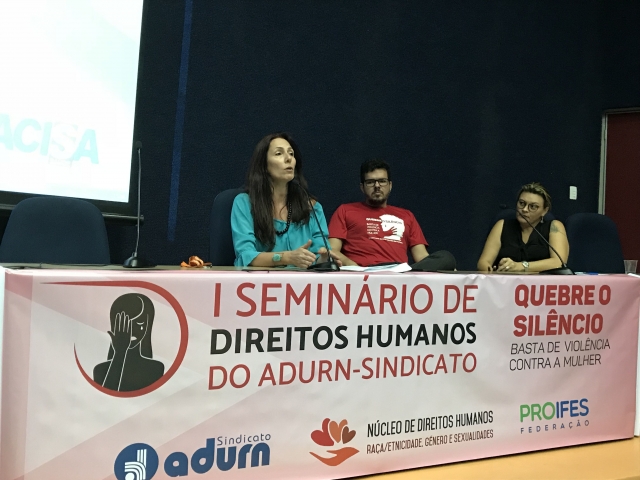 Proporcionar um espaço de discussão e reflexão acerca da temática da violência contra a mulher a partir de interlocuções entre docentes, pesquisadores e ativistas dos Direitos Humanos, foi partindo dessa premissa que nos dias 19 e 20 de novembro o Núcleo de Direitos Humanos do ADURN-Sindicato realizou o seu primeiro seminário.