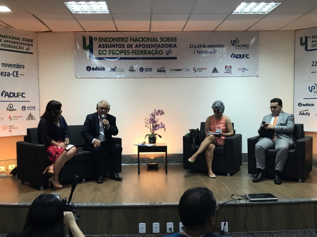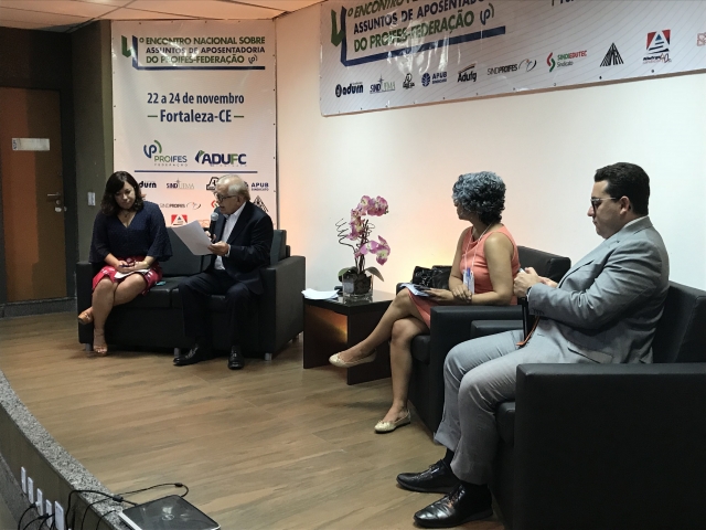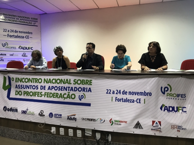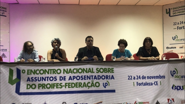 O 4º Encontro Nacional sobre Assuntos de Aposentadoria do PROIFES-Federação aconteceu nos dias 22 a 24 de novembro. O evento ocorreu na sede do ADUFC-Sindicato, na capital cearense. Professores de instituições federais de ensino debateram assuntos jurídicos, carreira e estratégias para manter direitos conquistados pela categoria nos últimos anos, em um contexto de Reforma da Previdência, ataques à educação pública e ao serviço público em geral.