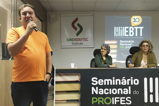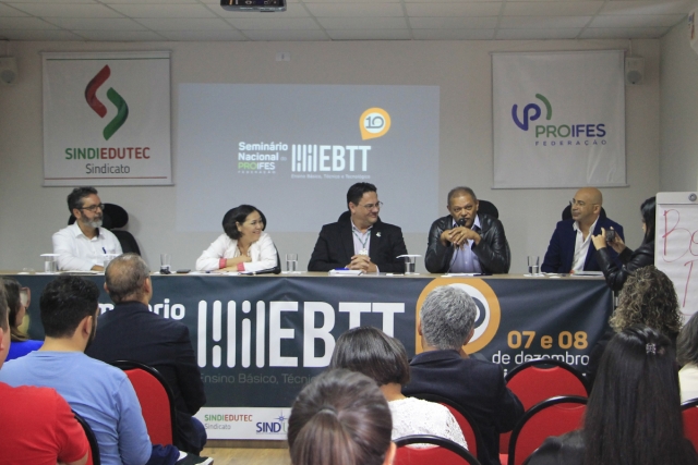 Realizado nos dias 7 e 8 de dezembro, o 1º Seminário Nacional do Ensino Básico, Técnico e Tecnológico, do PROIFES-Federação, aconteceu na cidade de Curitiba/PR, em alusão aos 10 anos da carreira do EBTT e contou com a participação de uma delegação do ADURN-Sindicato.
