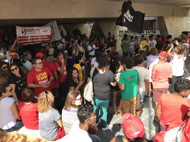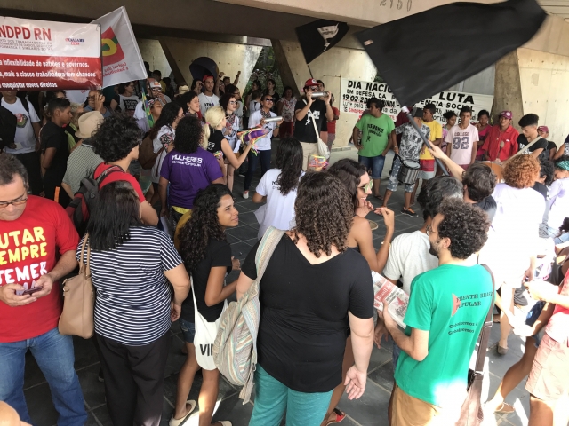 O evento reuniu docentes, estudantes, lideranças dos movimentos sociais e sindicais e a sociedade civil, no auditório do Núcleo de Práticas Jurídicas do Campus Central da UFRN.
