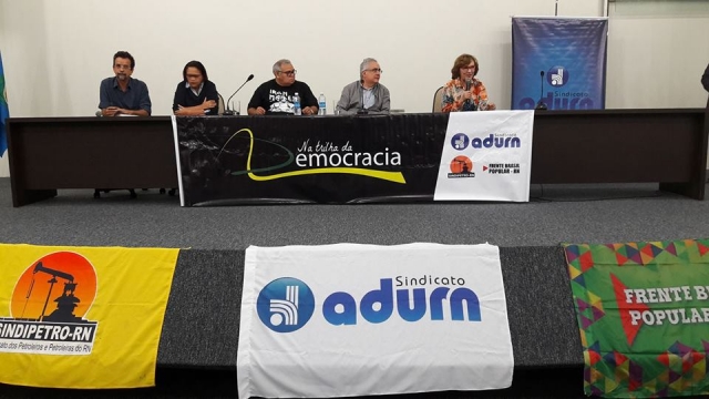 Com assertiva de que o país vive um estado de exceção, o jornalista Luis Nassif foi o palestrante da sétima edição do projeto Na Trilha da Democracia, uma realização do ADURN-Sindicato, SINDIPETRO-RN e Frente Brasil Popular.