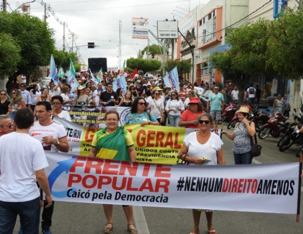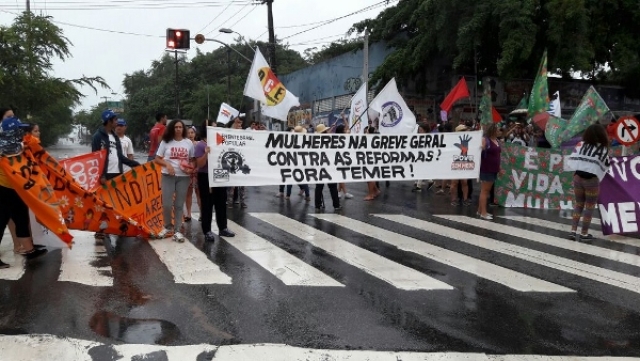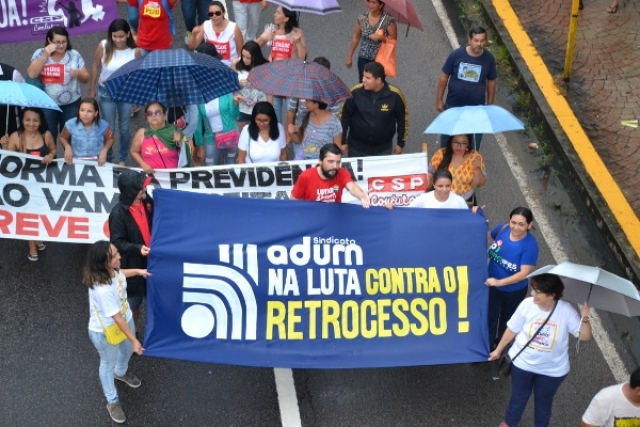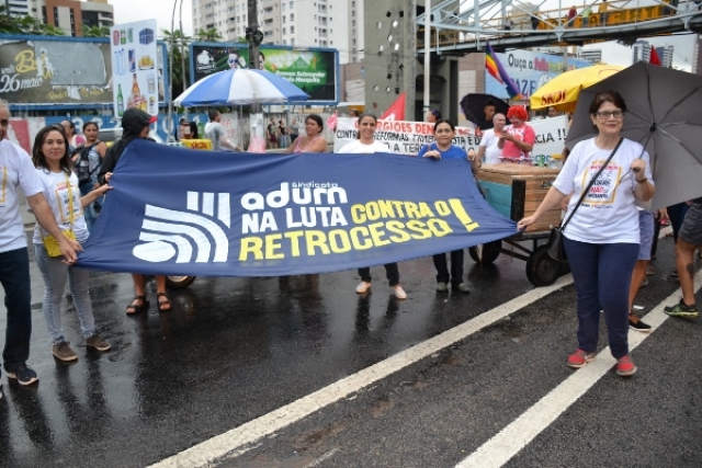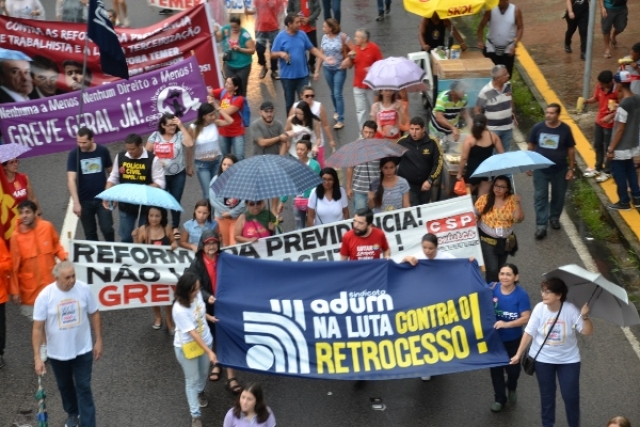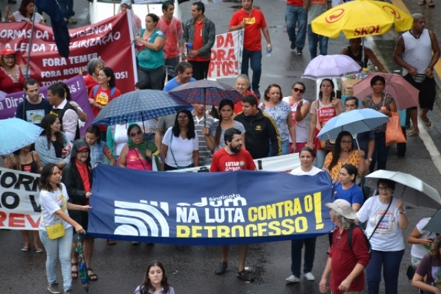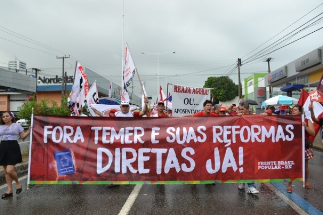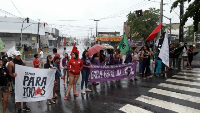 Em Dia Nacional de Paralisação, 10 mil protagonizam #GrevePorDireitos na capital potiguar e, mesmo sob chuva, ecoam disposição em barrar as reformas previdenciária, trabalhista e a terceirização.