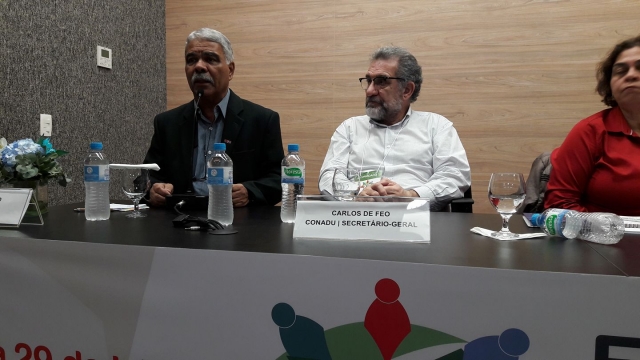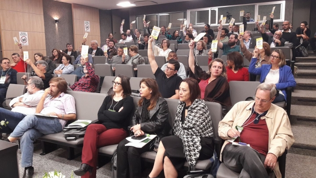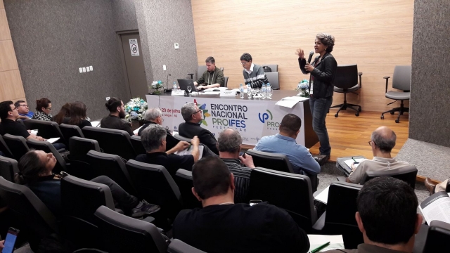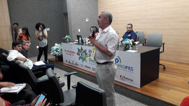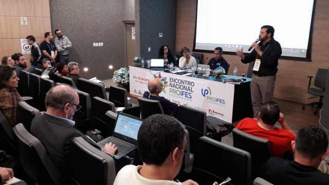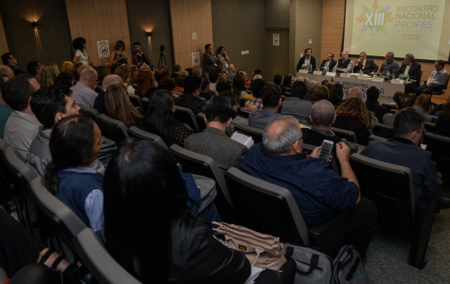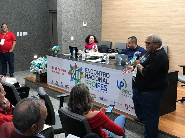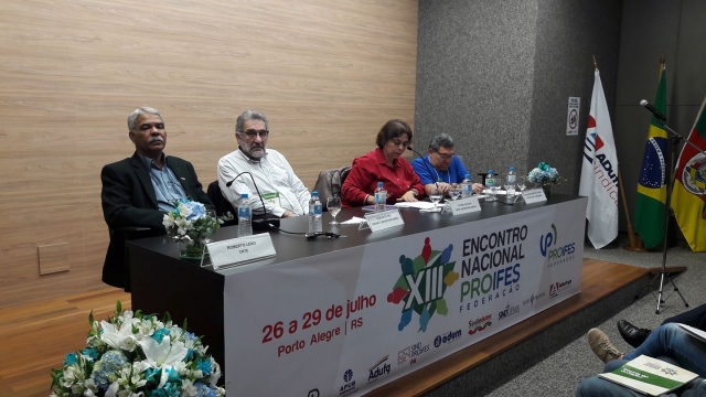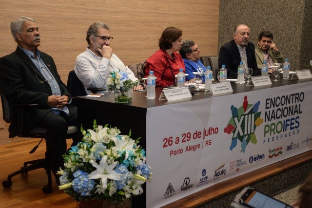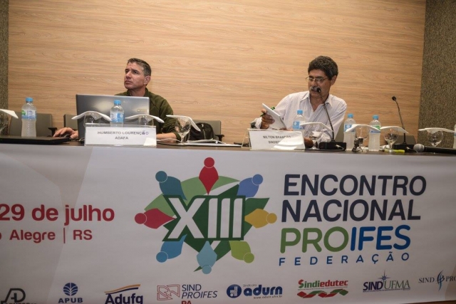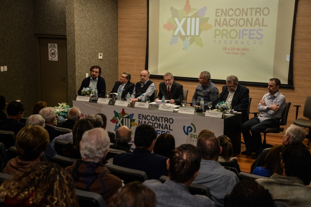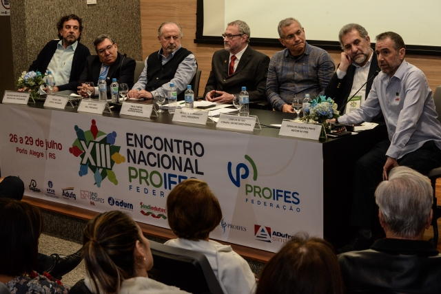 Na quarta-feira (26/07), o auditório da ADUFRGS-Sindical recebeu mais de uma centena de delegados, observadores, convidados do Brasil e do exterior, docentes, estudantes e representantes de movimentos sociais, para a abertura da 13ª edição do Encontro Nacional do PROIFES-Federação.