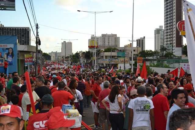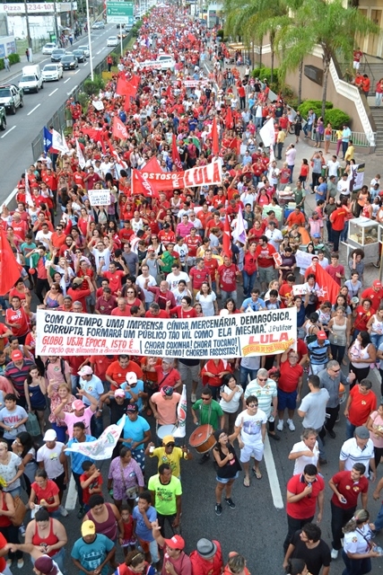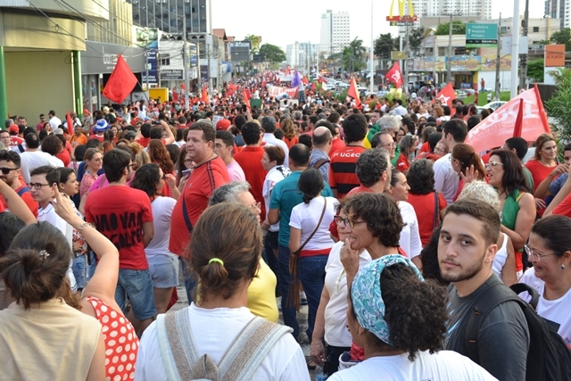 Mais de 30 mil pessoas participaram na última sexta-feira, 18, do ato convocado pela Frente Brasil Popular em defesa da Democracia e contra o golpe. O evento teve concentração em frente ao shopping Midway, de onde saiu em caminhada por 3 km até a Praça da Árvore de Mirassol.