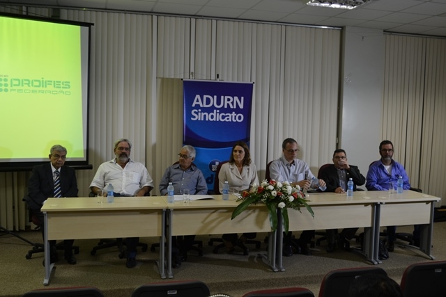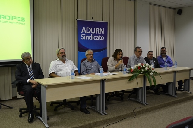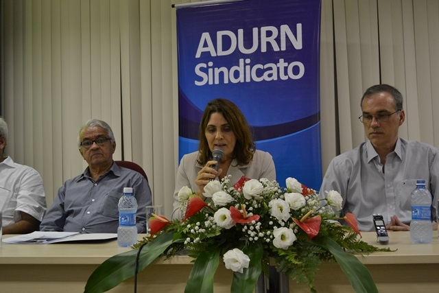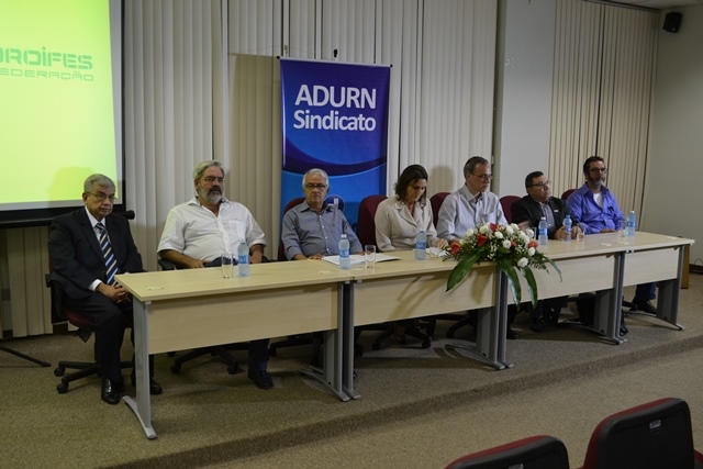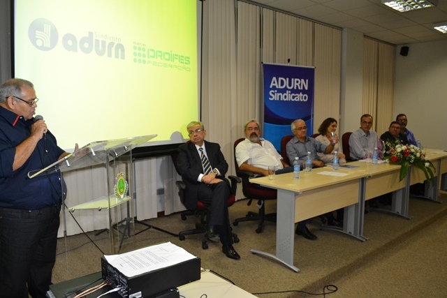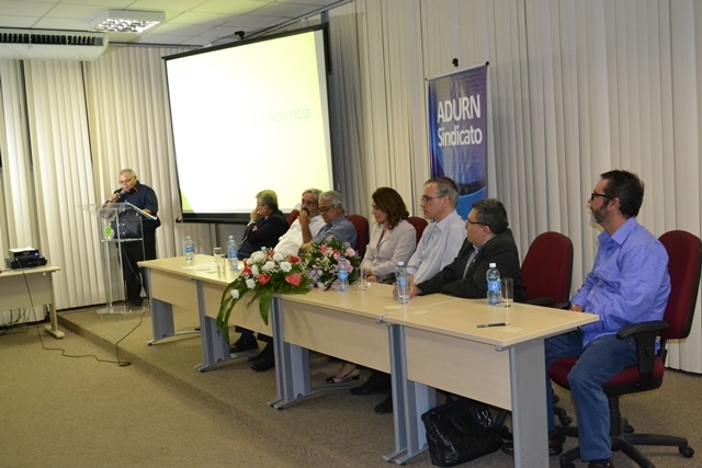 A cerimônia de posse da nova diretoria do ADURN-Sindicato, realizada no dia 11 de junho de 2015, no auditório do Centro de Educação da UFRN.