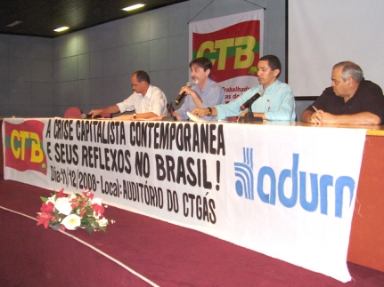 No dia 11/12 a Adurn promovou, em parceria com a CTB, debate com o professor da UNB Lécio Morais sobre Crise do Capitalismo.