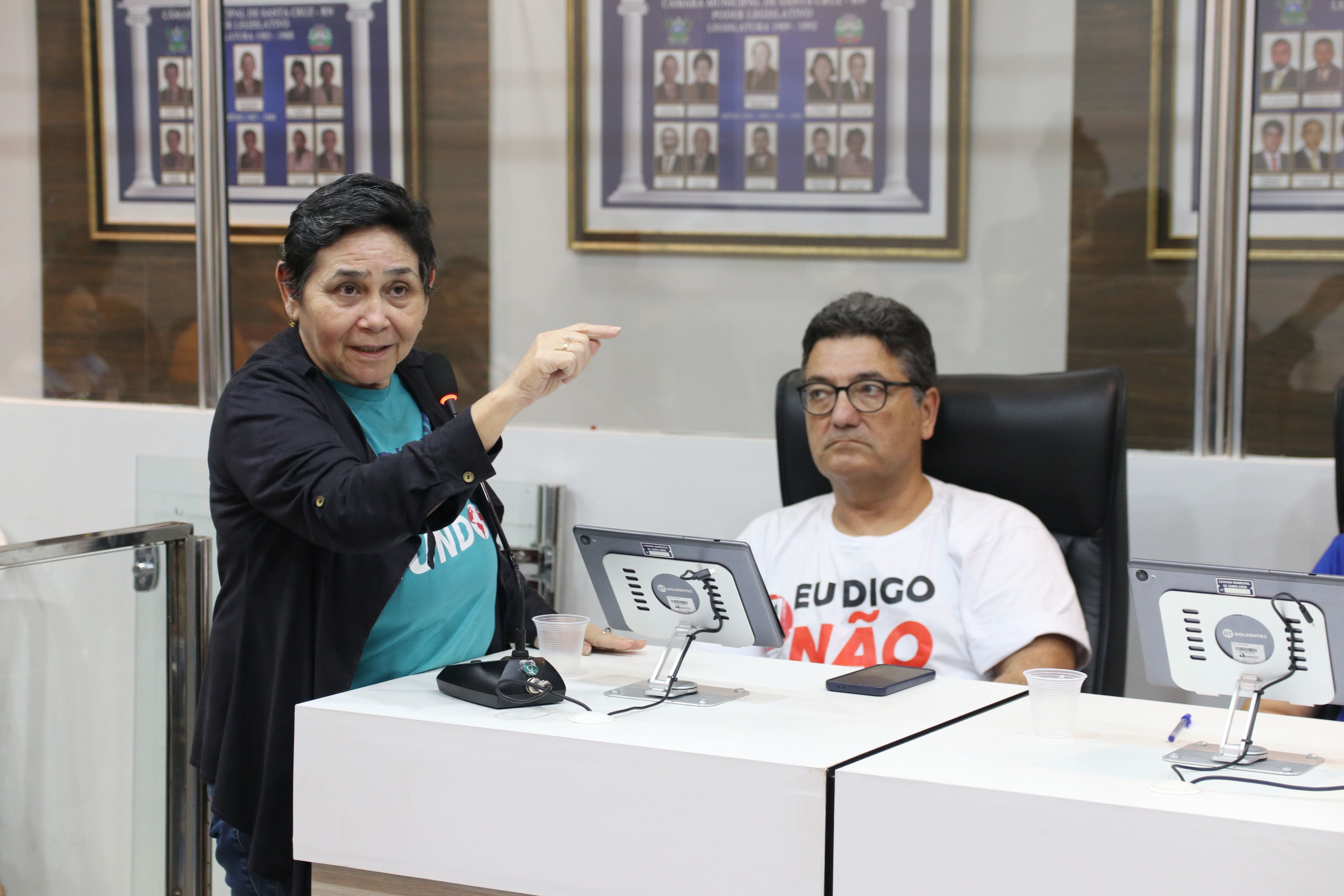 O momento foi articulado pelo sindicato com a direção do PCdoB da cidade, juntamente de entidades como CTB Potiguar, PT/RN, SINTE/RN, DCE/UFRN, ATENS/UFRN e Sindsaúde/RN. O vereador propositor do debate na casa foi Nelson Neto (PV). Além disso, o deputado federal Fernando Mineiro (PT) e a deputada estadual Divaneide Basílio (PT) presidiram a mesa junto ao presidente do PCdoB de Santa Cruz, Valdo Teodósio.