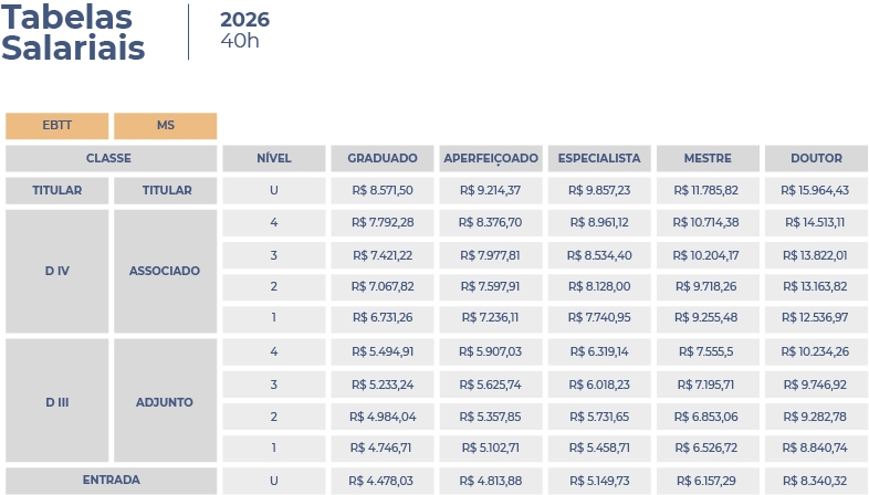 A ferramenta calcula como ficará o vencimento básico (VB) + retribuição por titulação (RT) do(a) professor(a) após o reajuste. Os resultados estão disponíveis tanto em reais, quanto em porcentagem. Não estão inclusos no cálculo valores correspondentes aos auxílios: Alimentação, Saúde e Creche, bem como outras rubricas que não são impactadas pelo reajuste. Para fazer o cálculo basta preencher as informações solicitadas, de acordo com sua carreira, classe, nível, titulação e regime de trabalho.